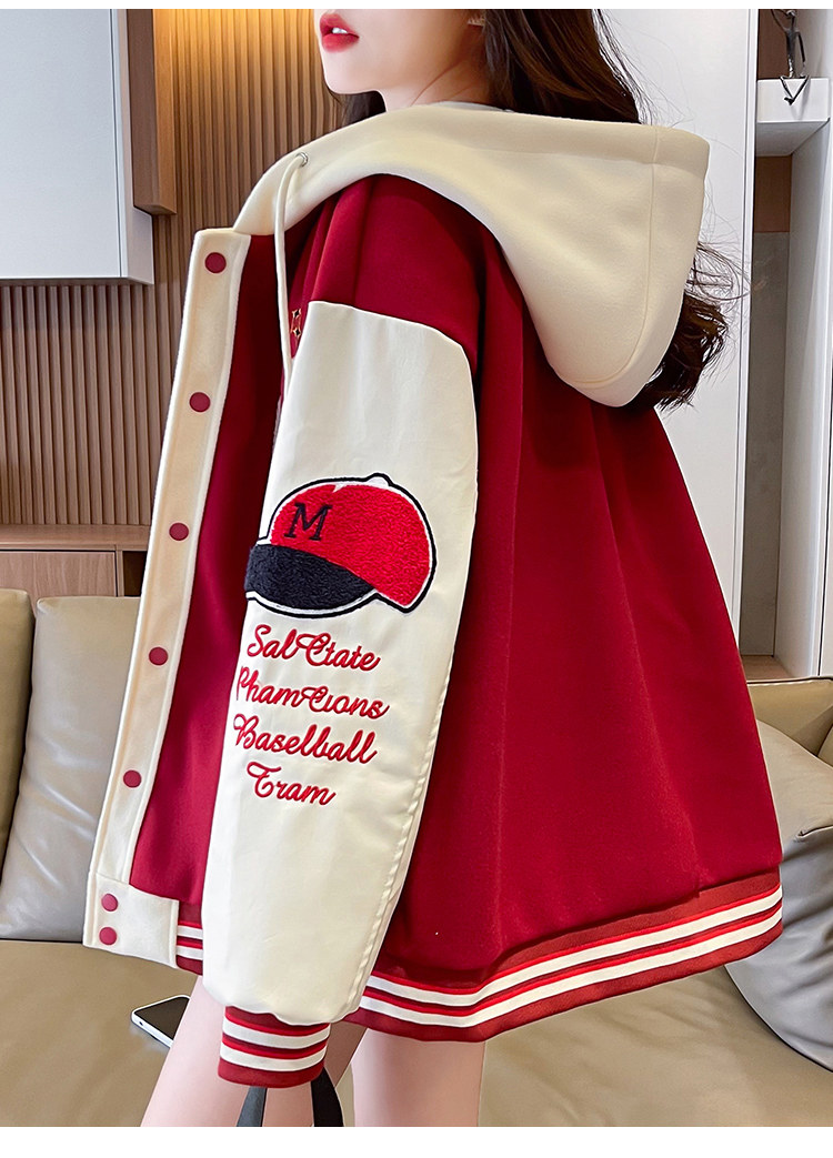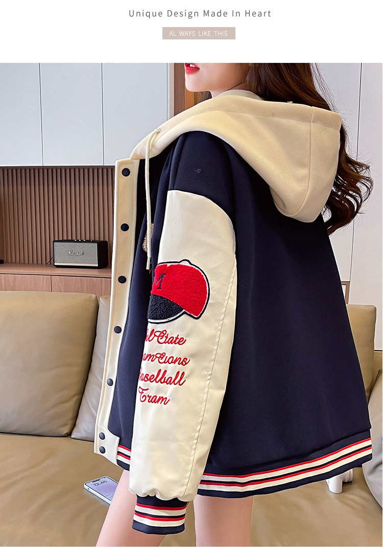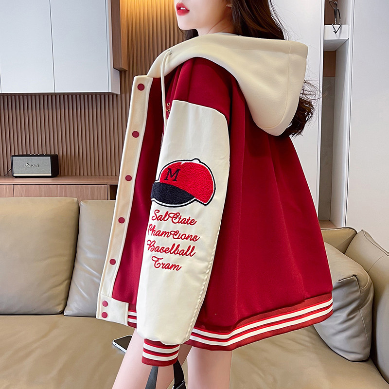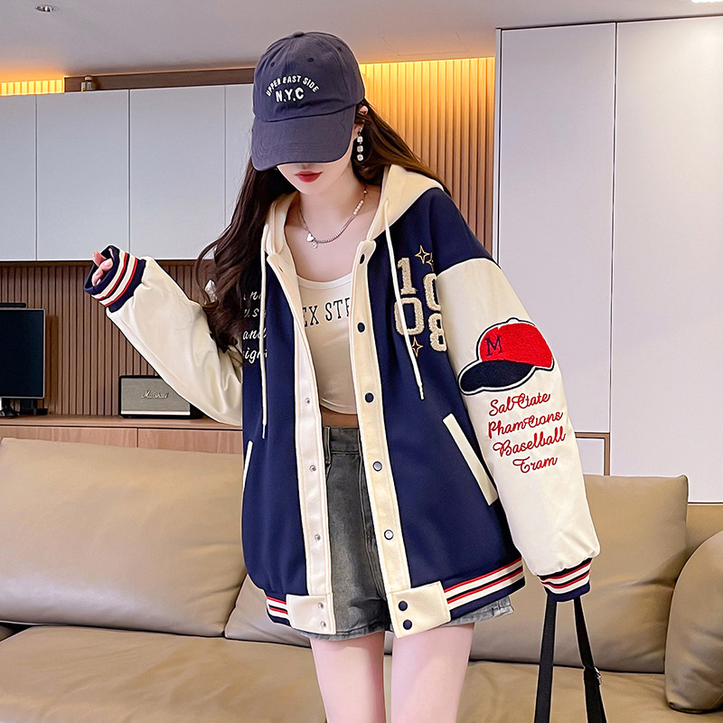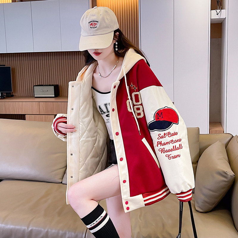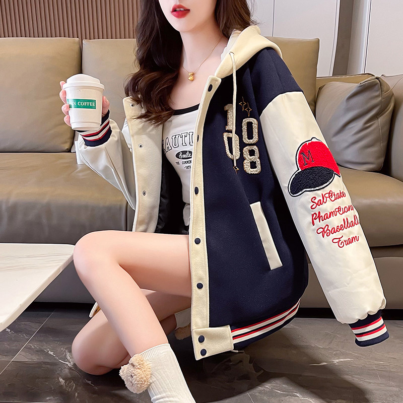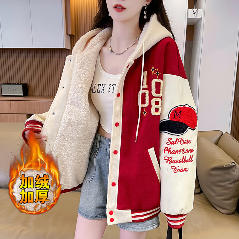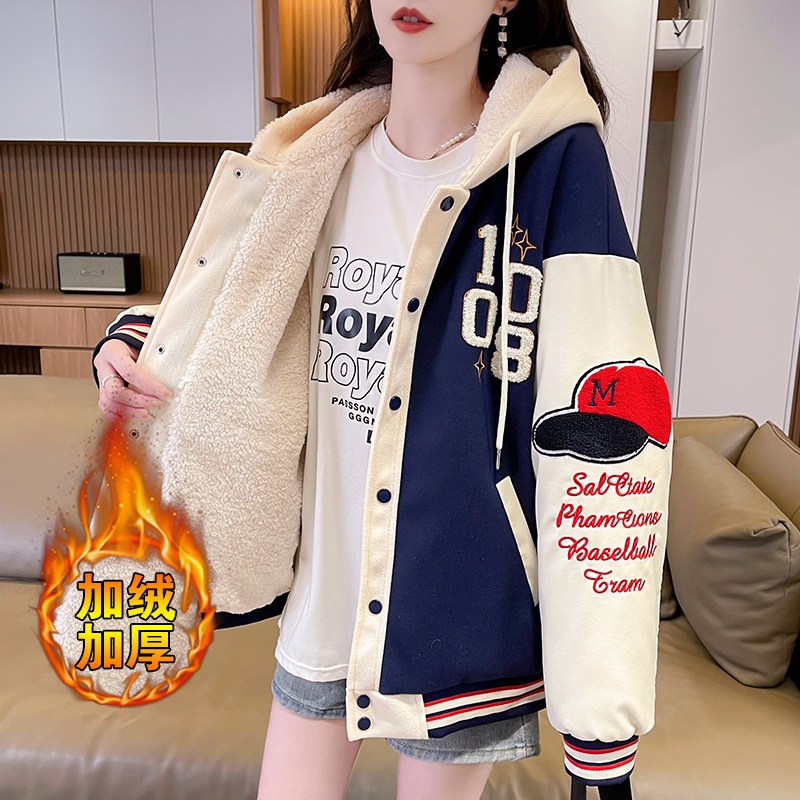 美式棒球服外套女秋冬季加絨加厚夾克2025新款初高中學生大童棉服