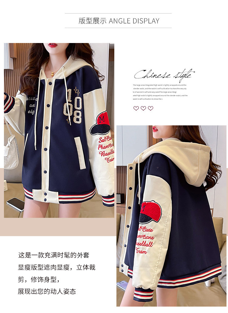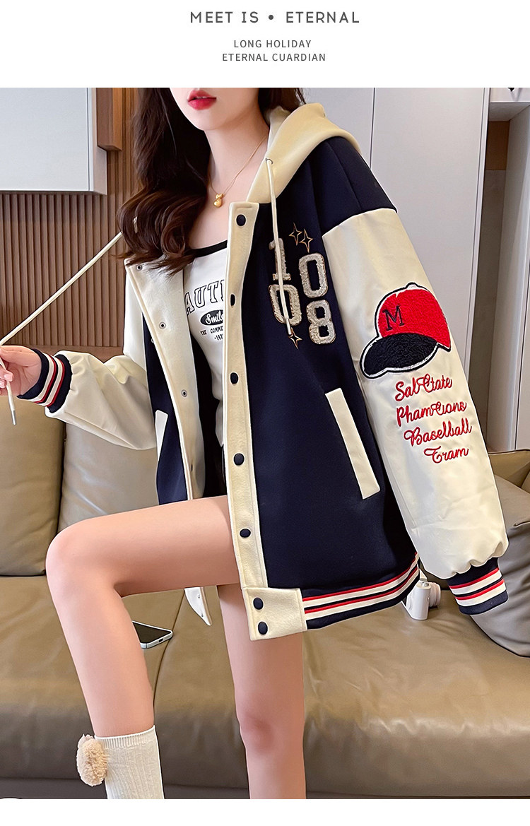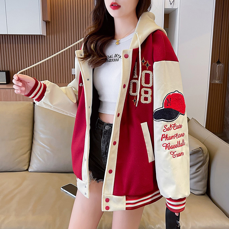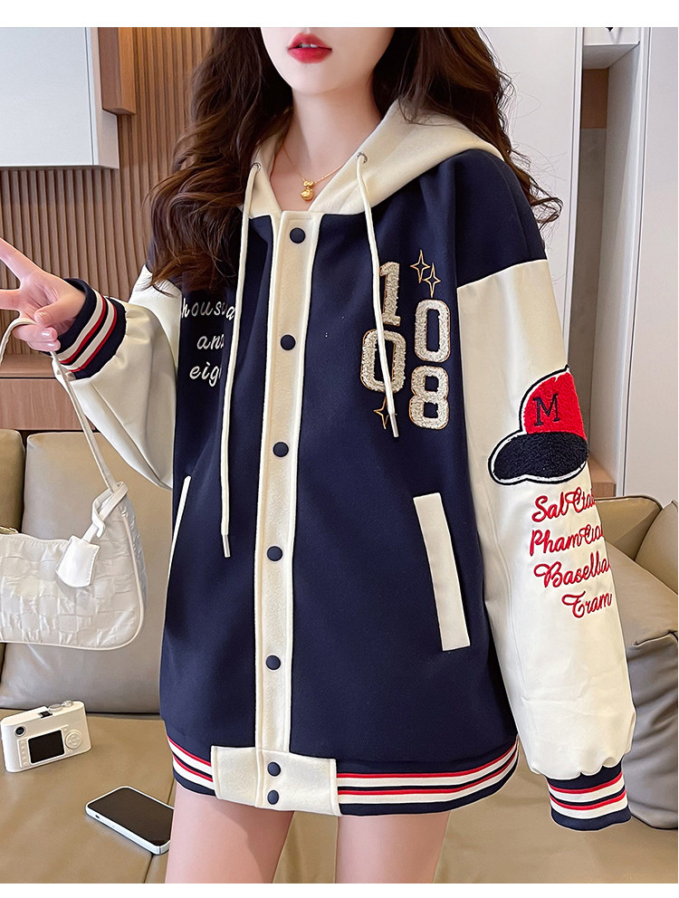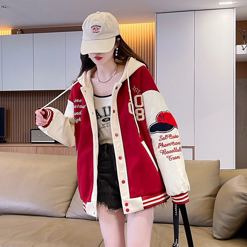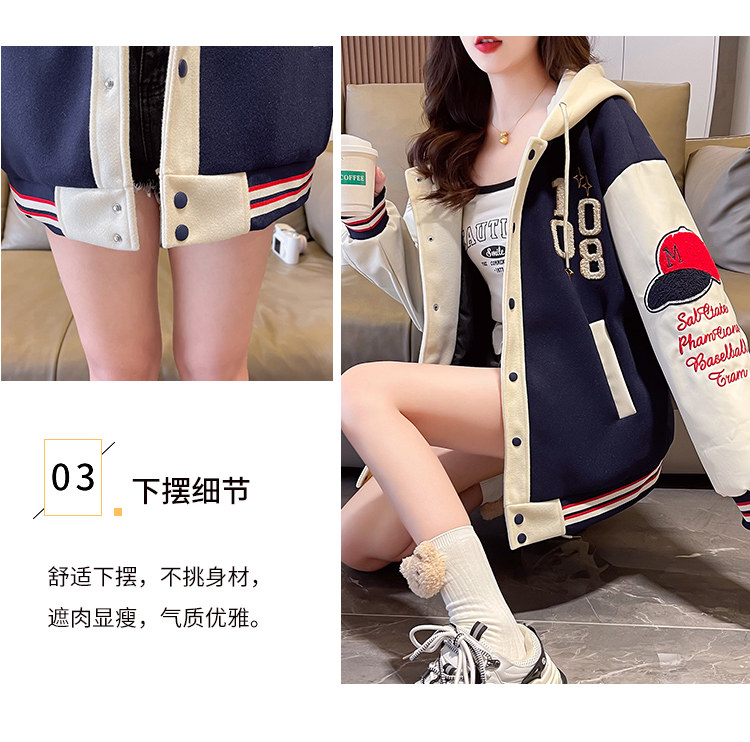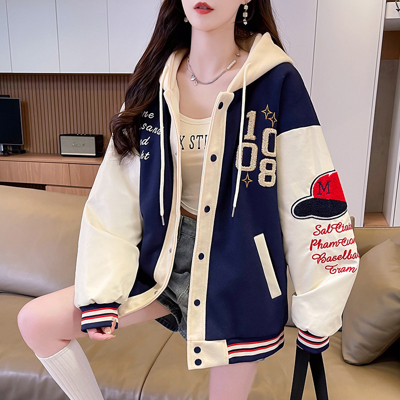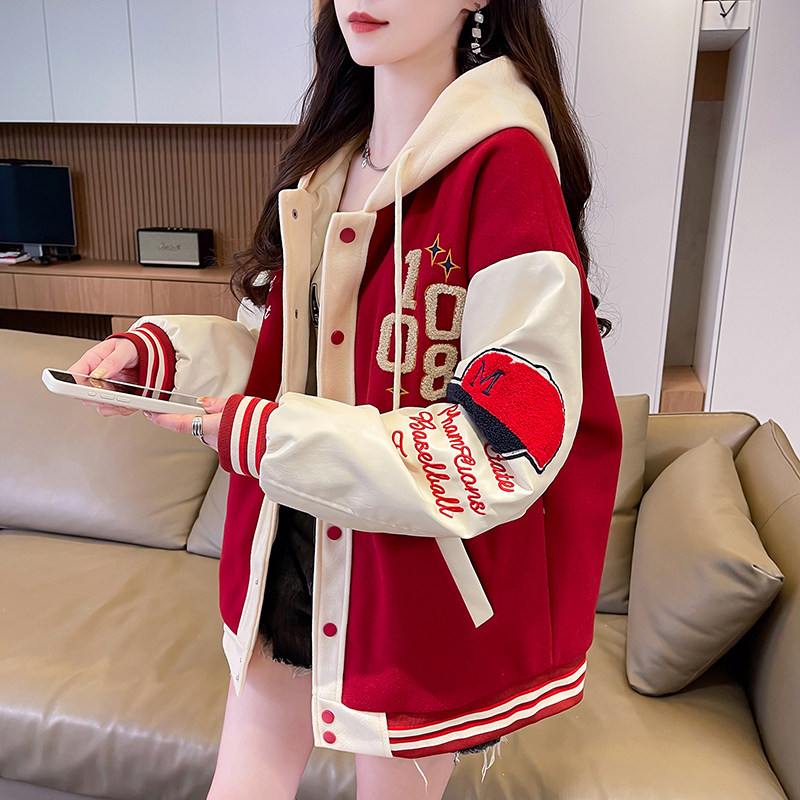 美式棒球服外套女秋冬季加絨加厚夾克2025新款初高中學生大童棉服