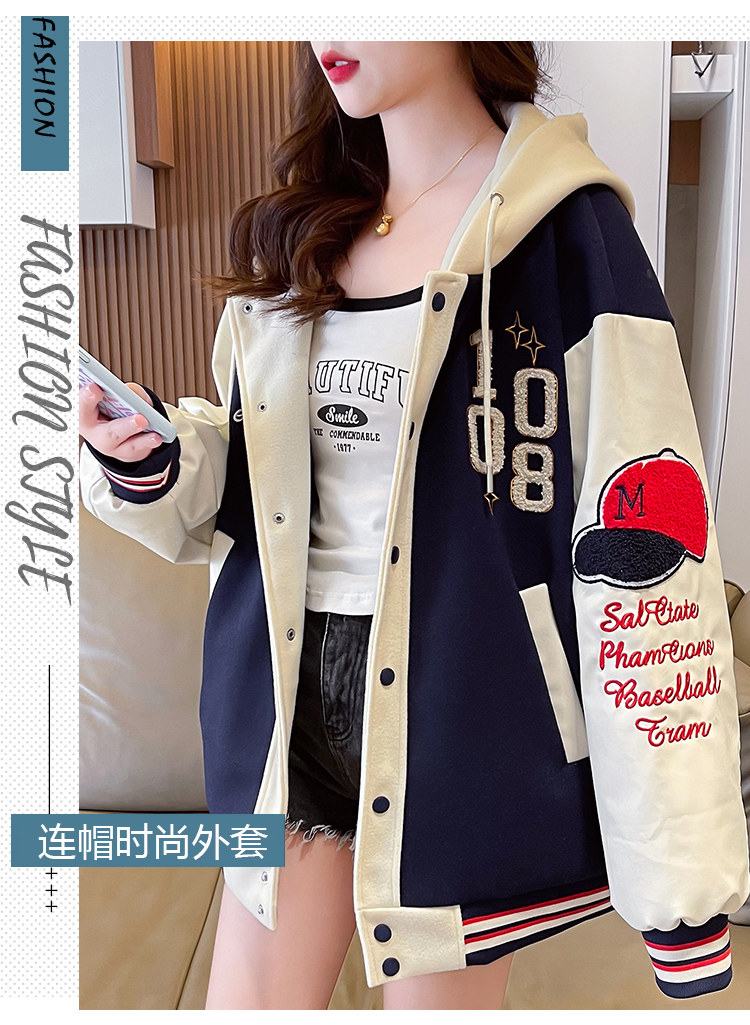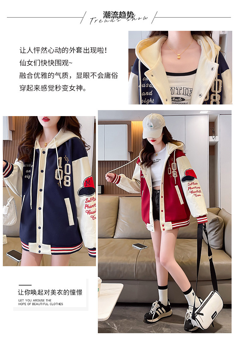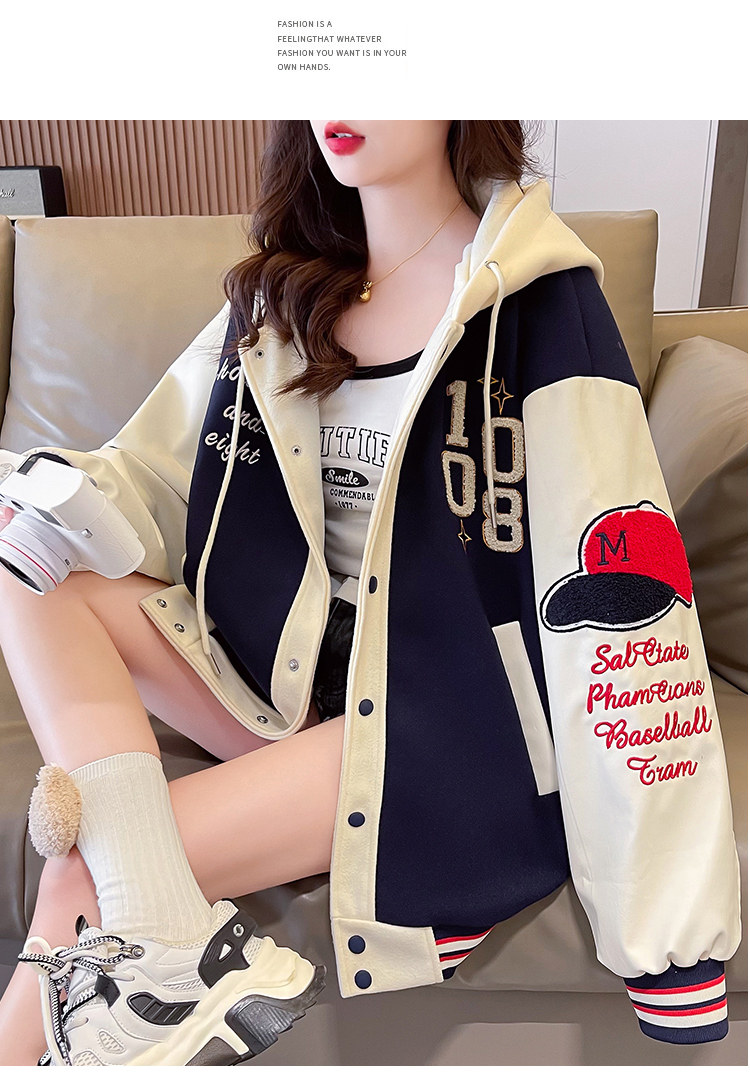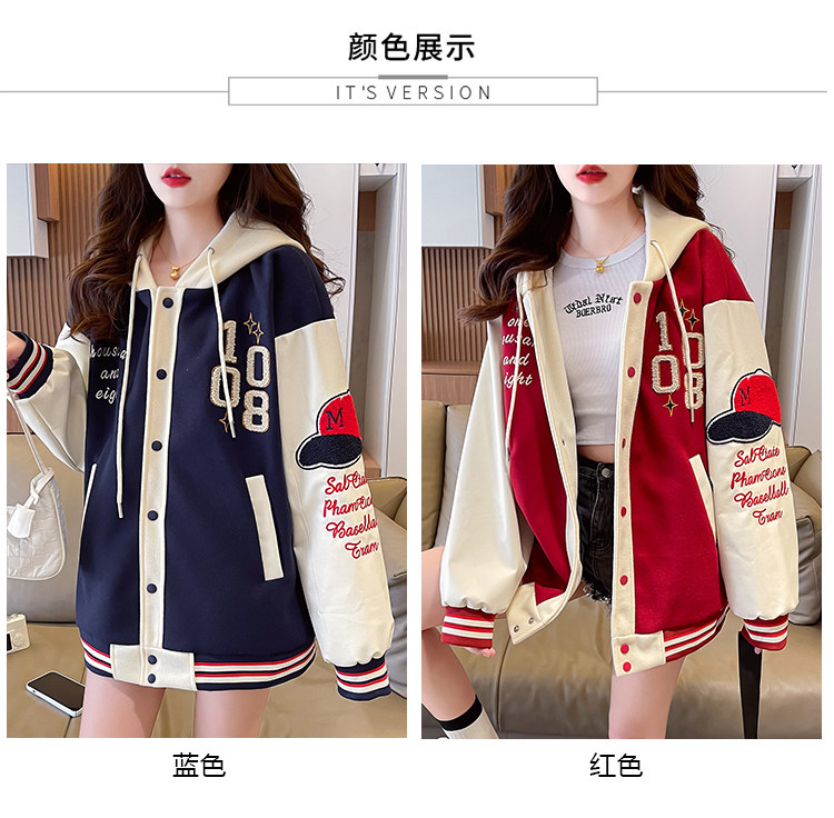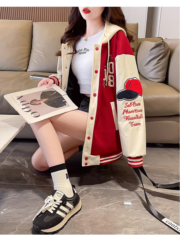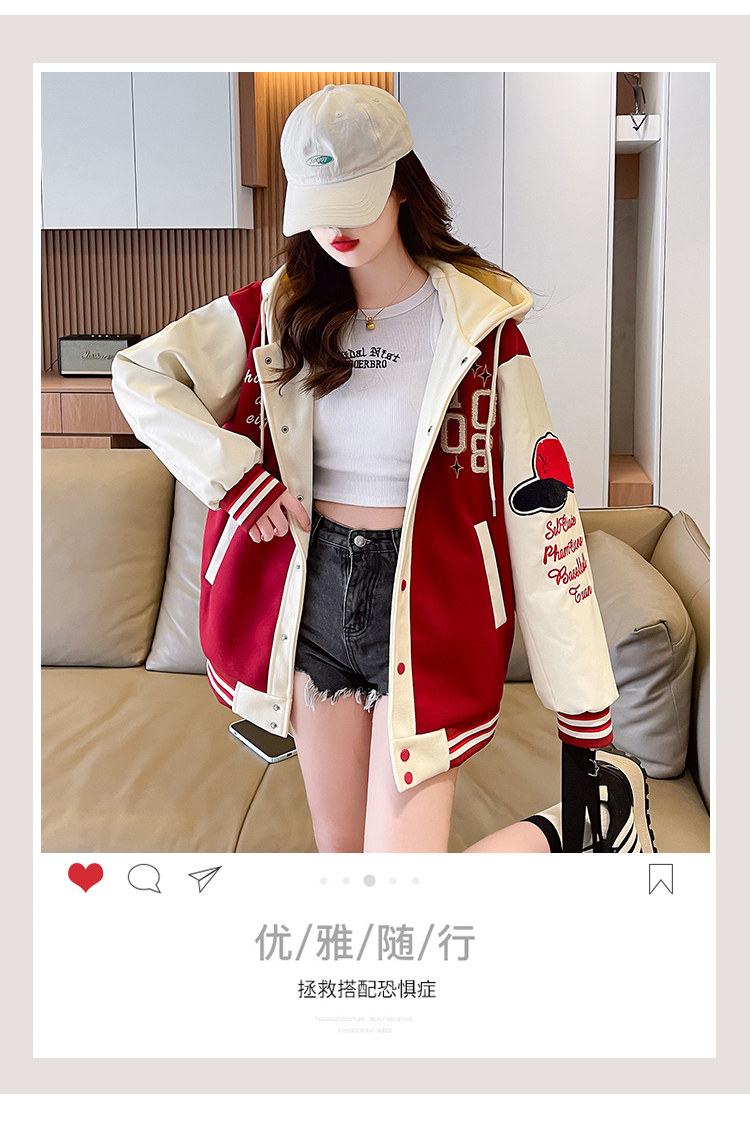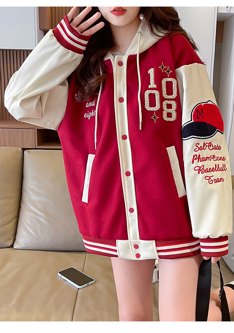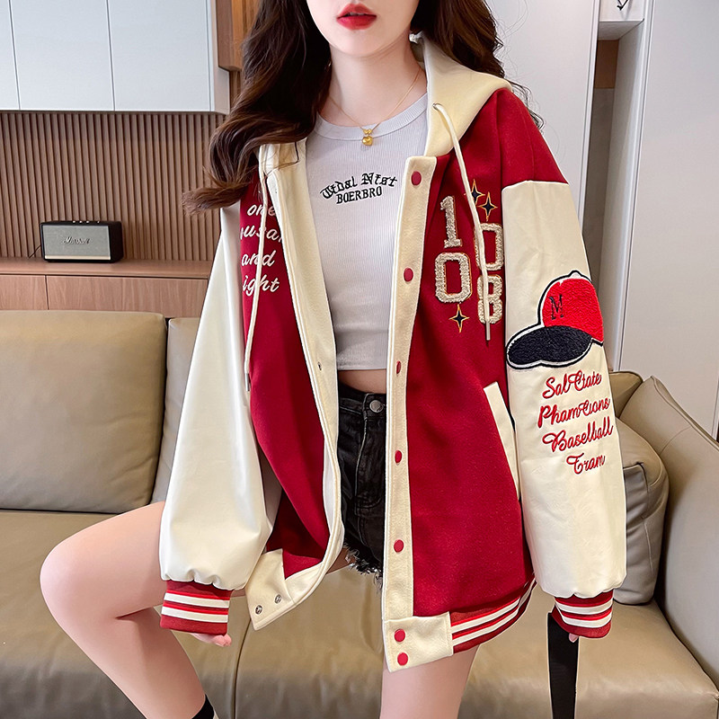 美式棒球服外套女秋冬季加絨加厚夾克2025新款初高中學生大童棉服