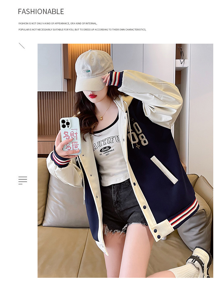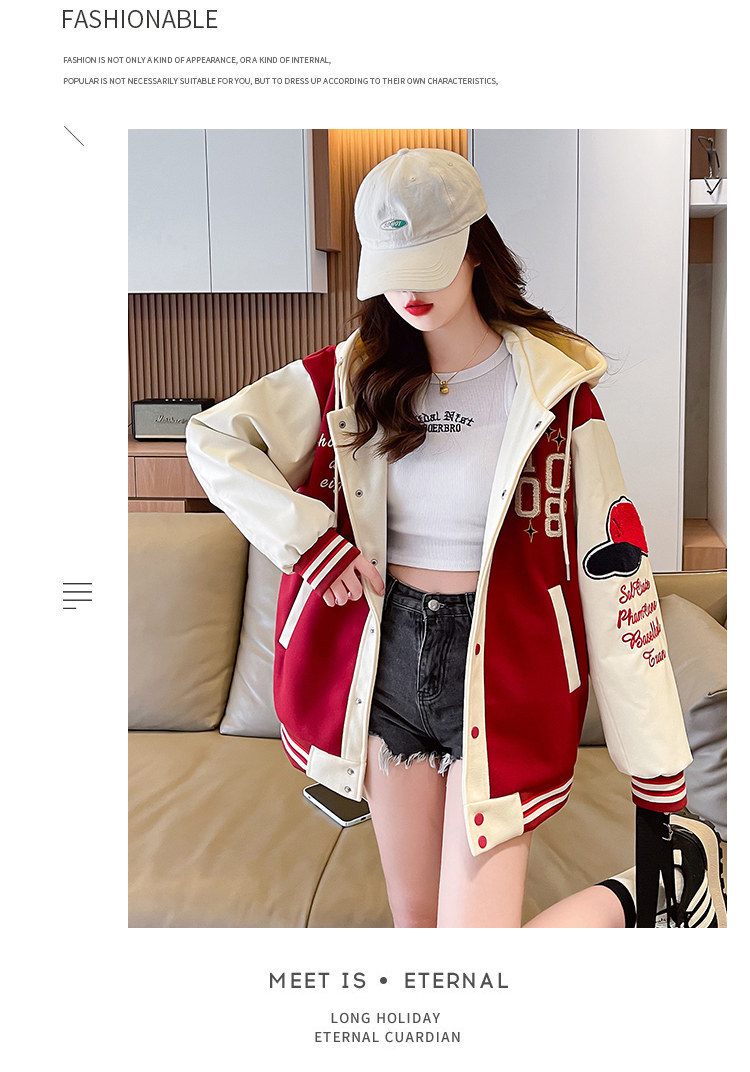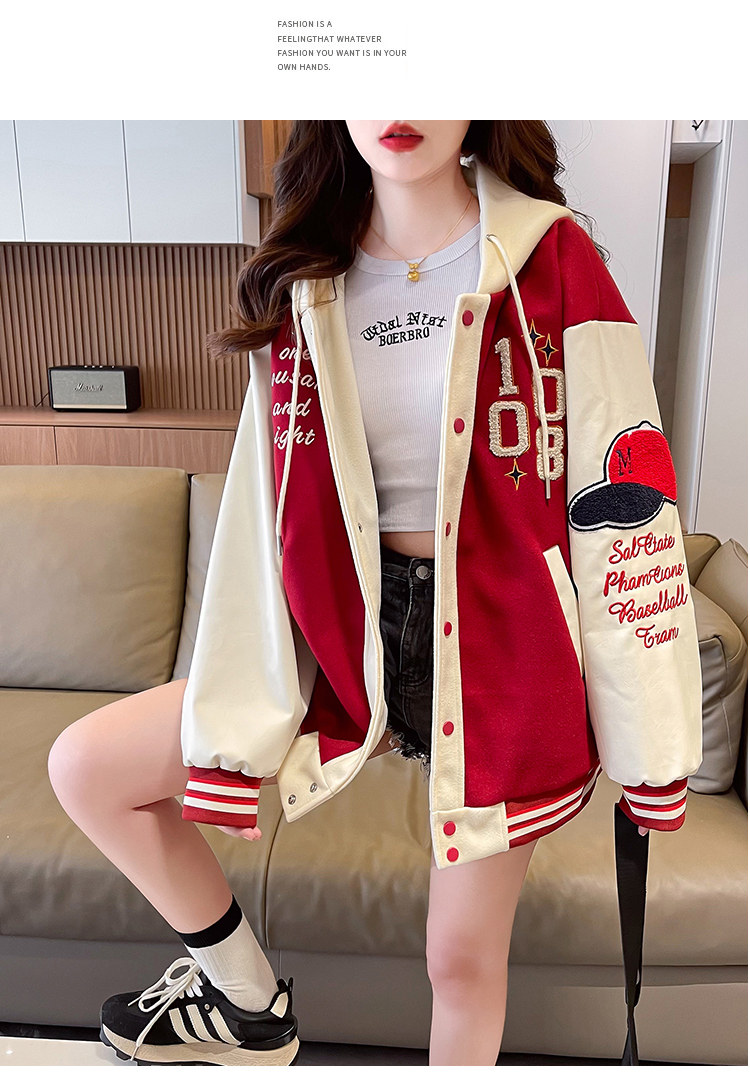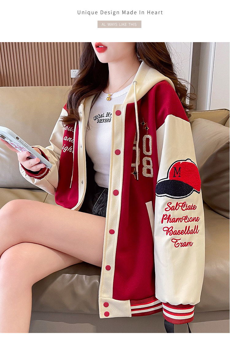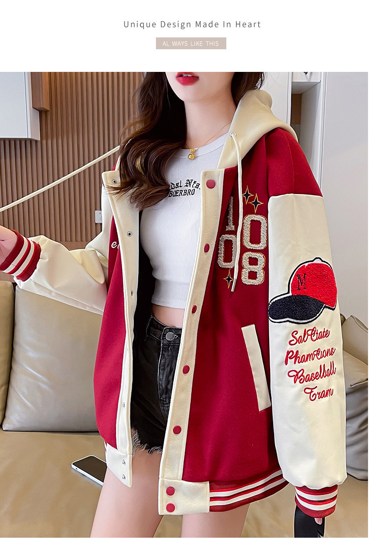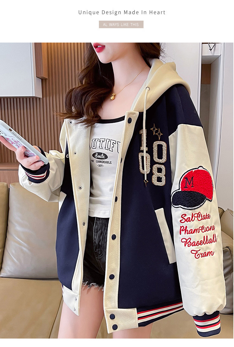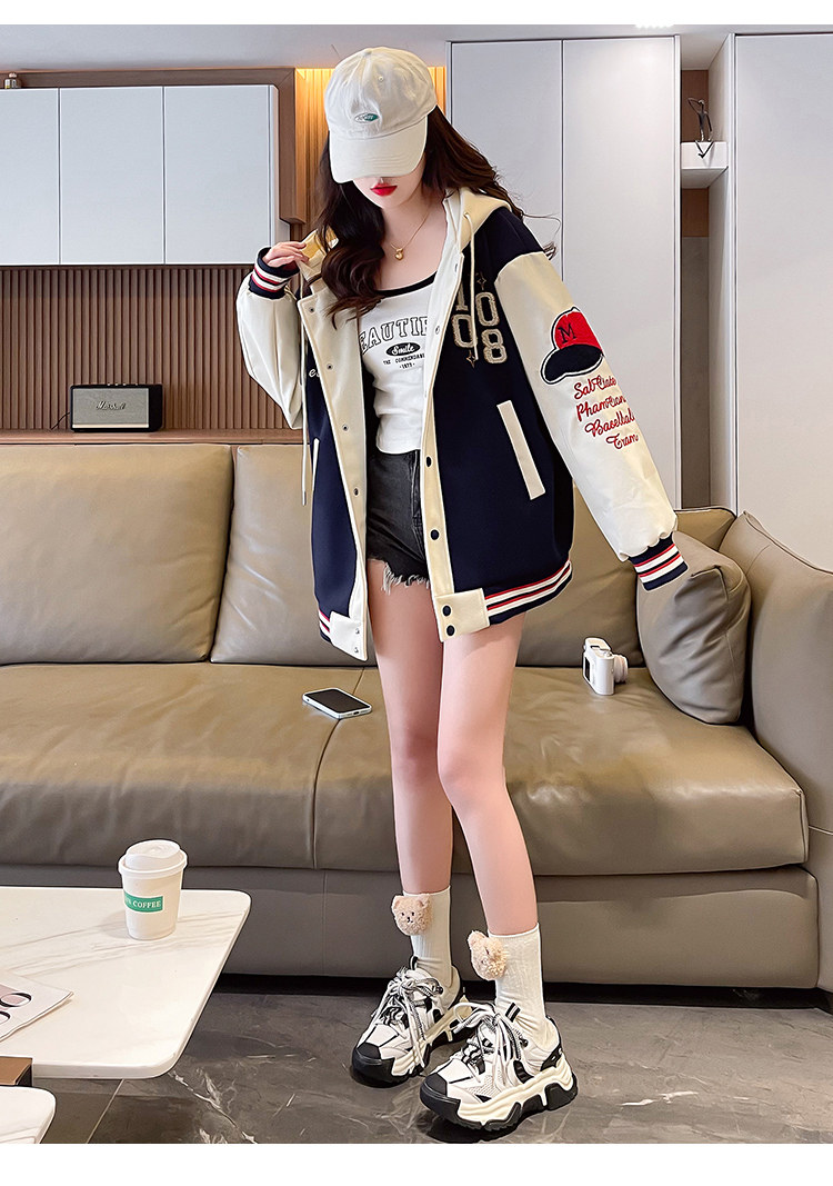 美式棒球服外套女秋冬季加絨加厚夾克2025新款初高中學生大童棉服