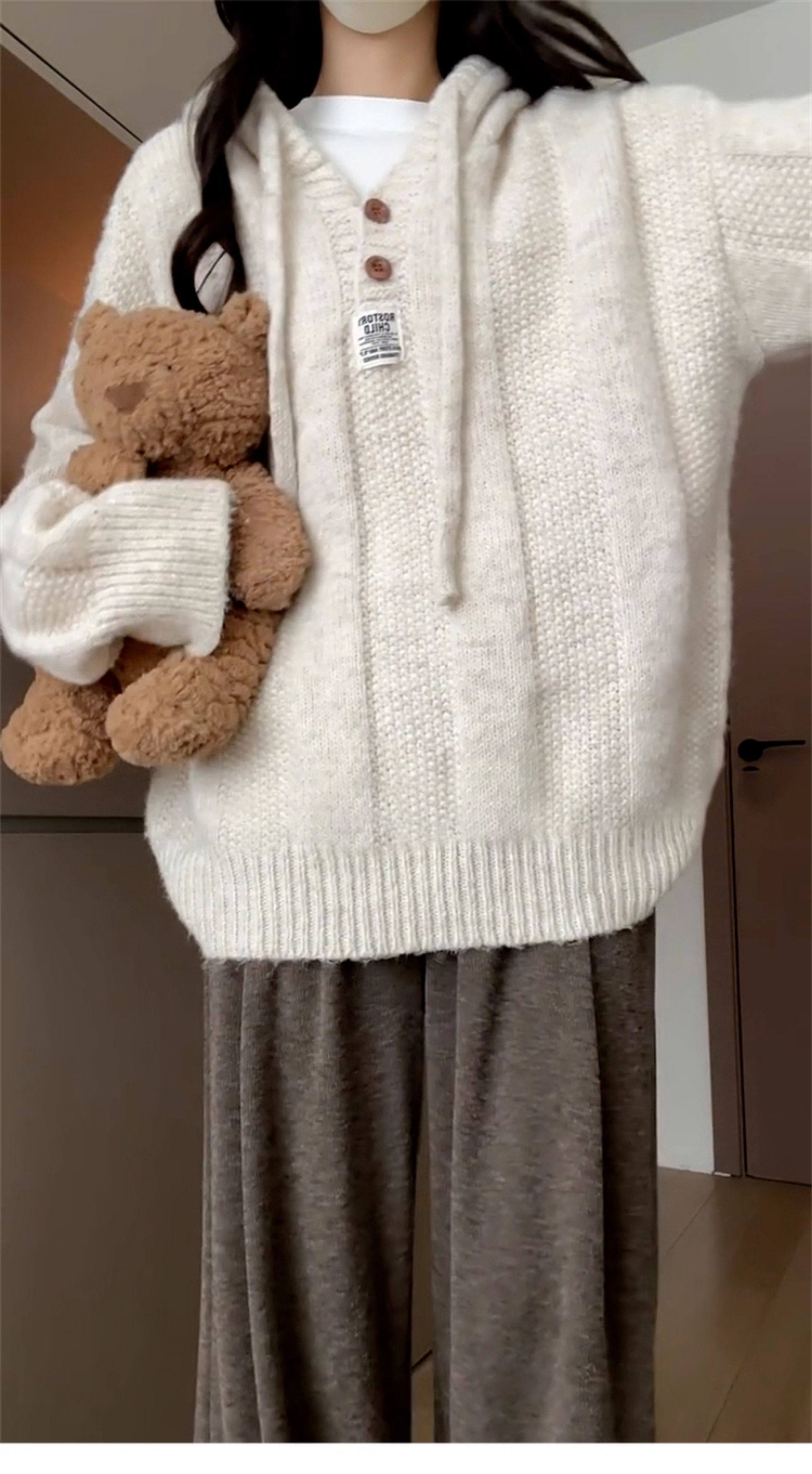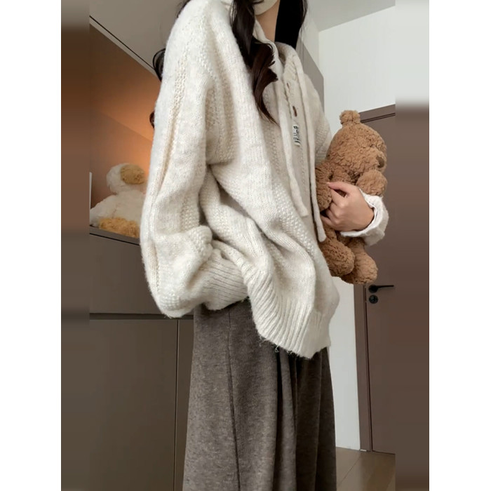 2025早秋新款高級感連帽毛衣外套女秋冬季寬松慵懶風軟糯針織上衣