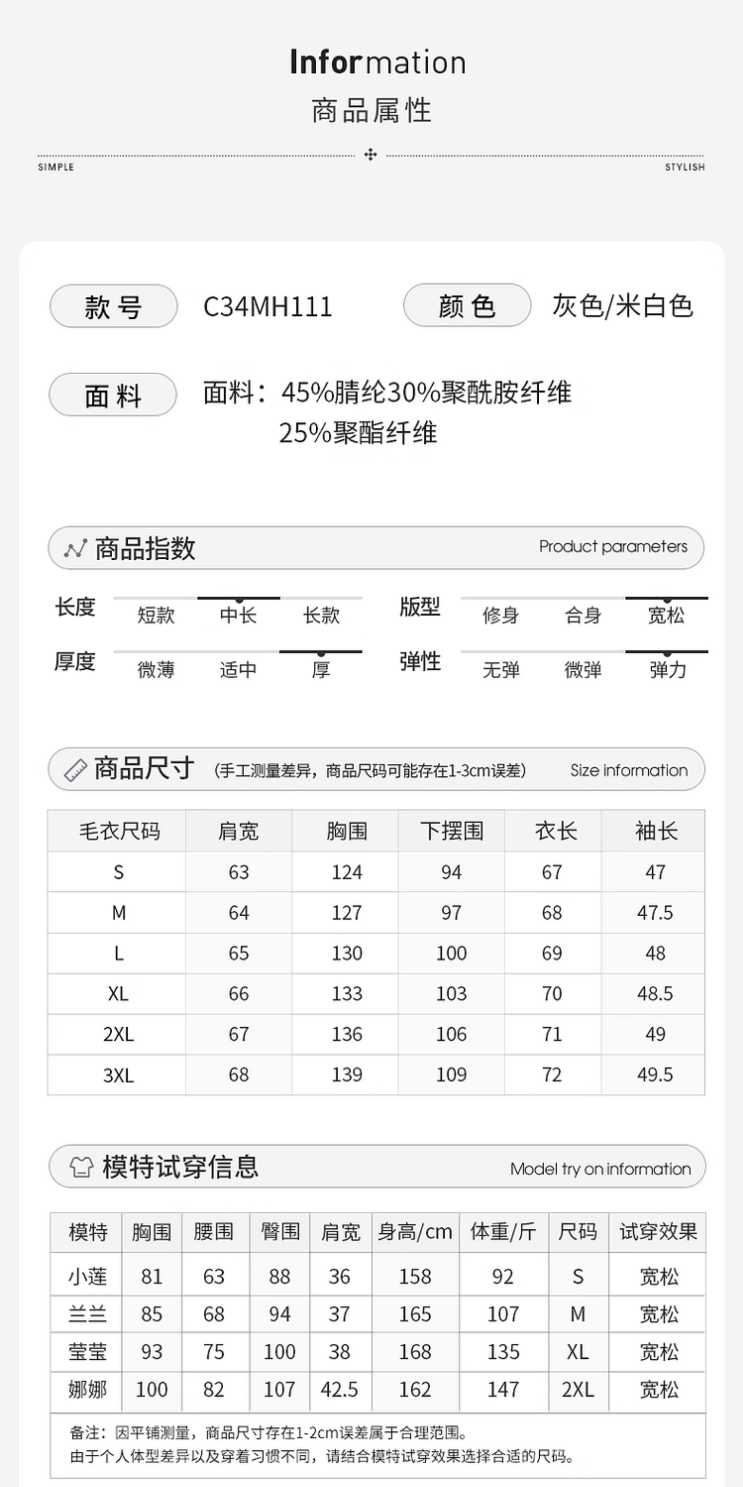 款式及尺寸: