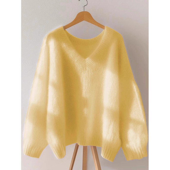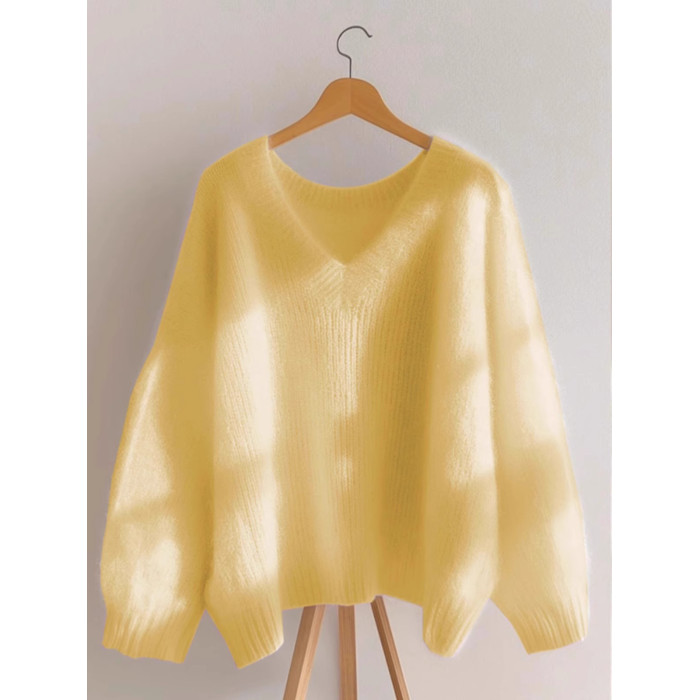 高級感超好看V領軟糯毛衣針織衫女秋冬新款慵懶風松弛感黃色上衣