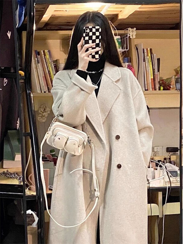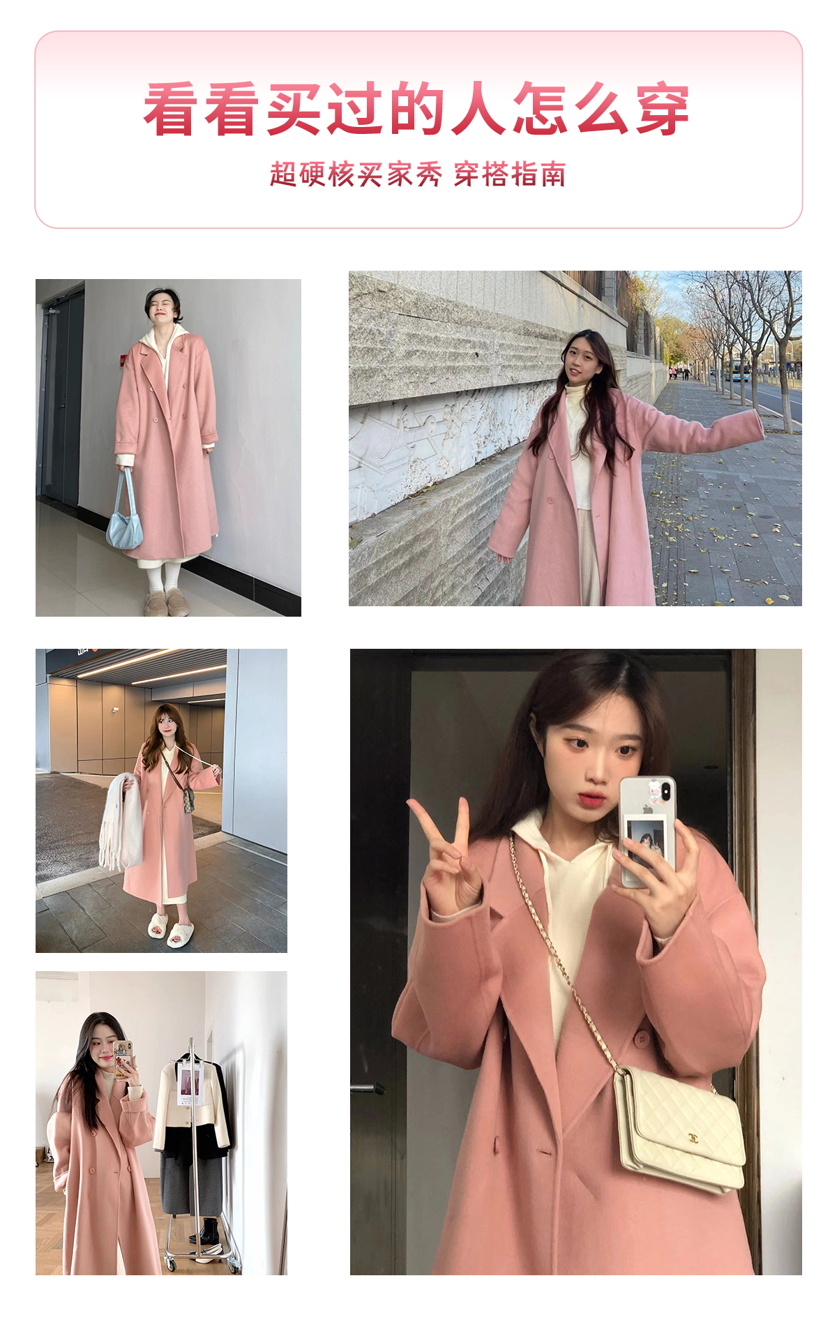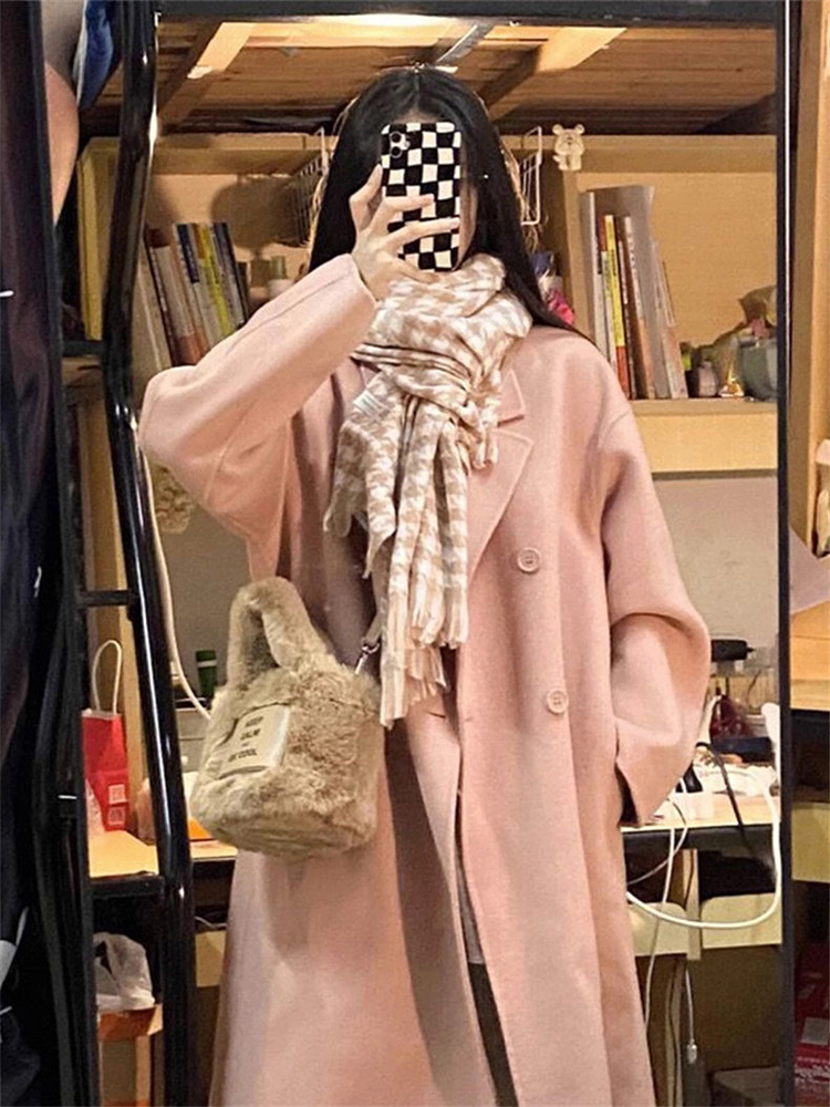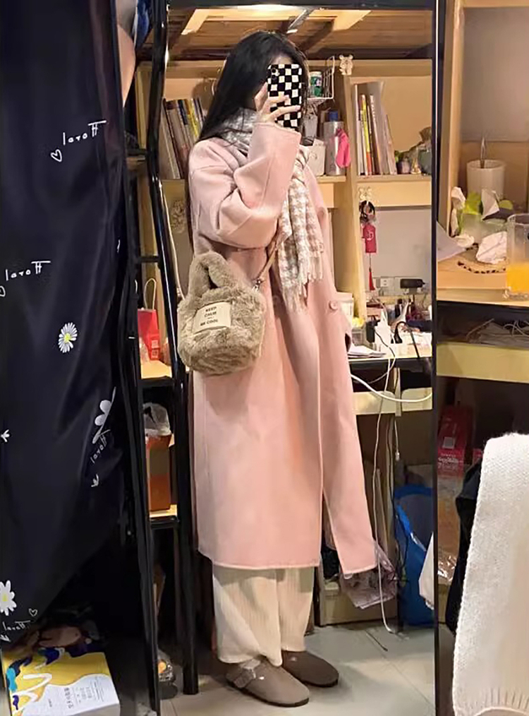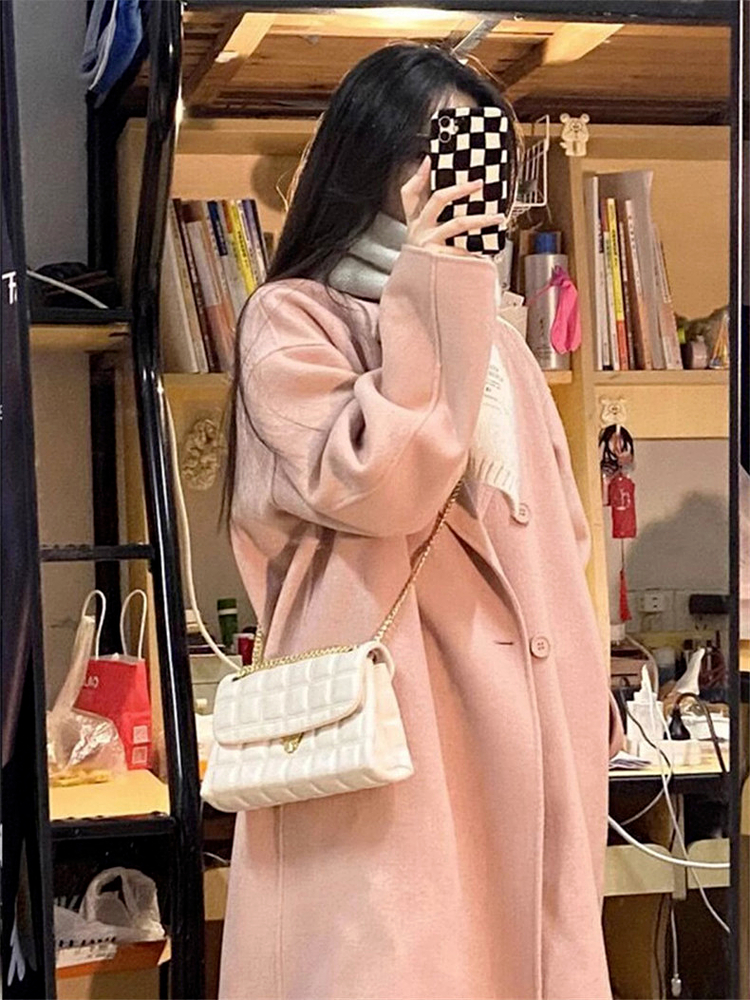 粉色高級感小個子呢子大衣女裝2025新款秋冬季鬭篷中長款毛呢外套