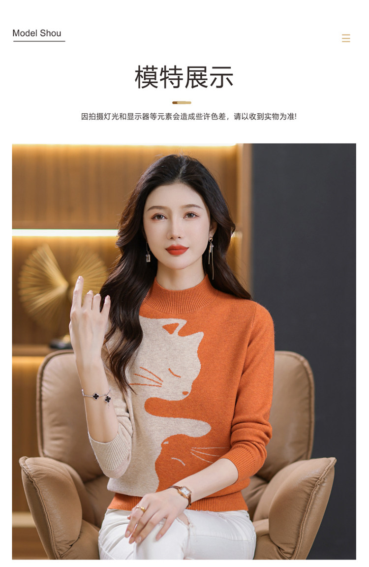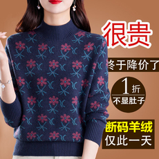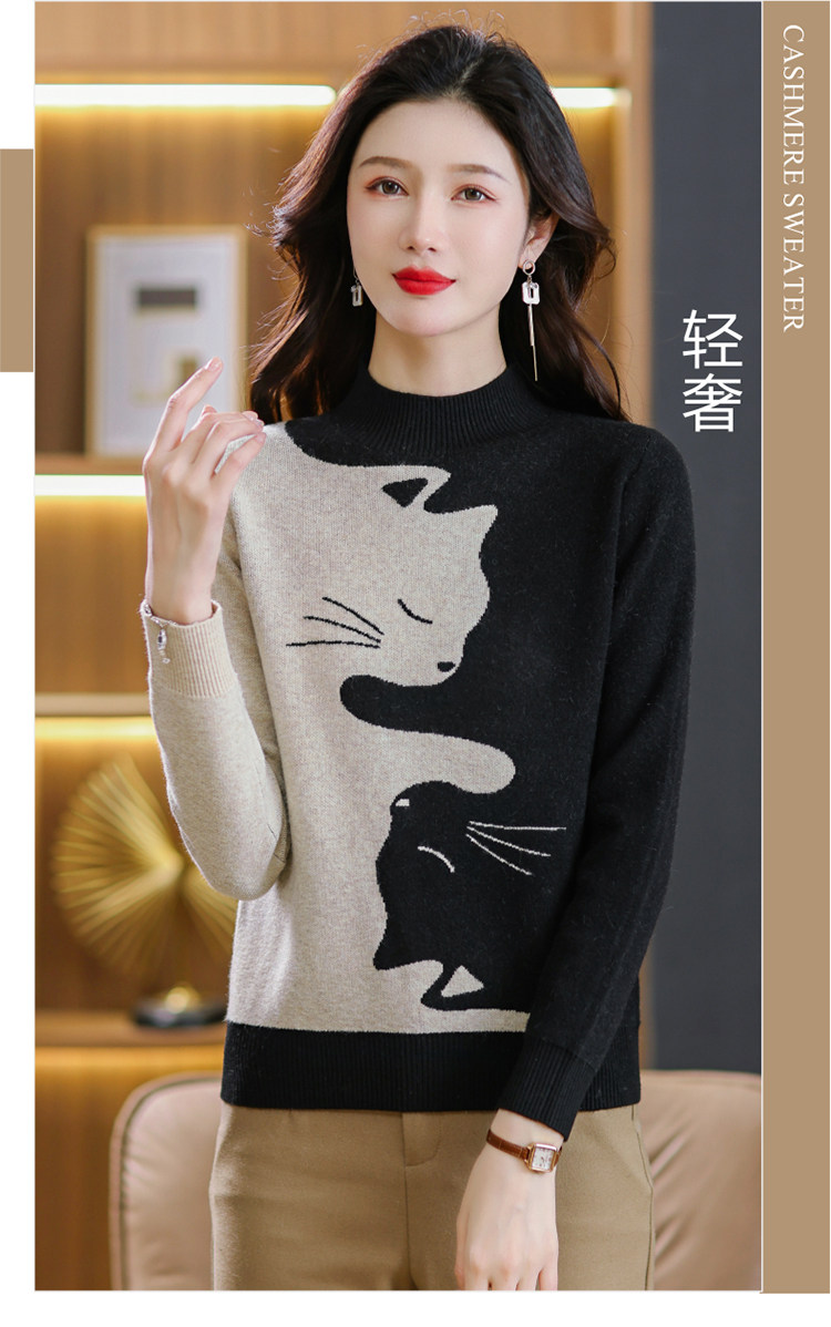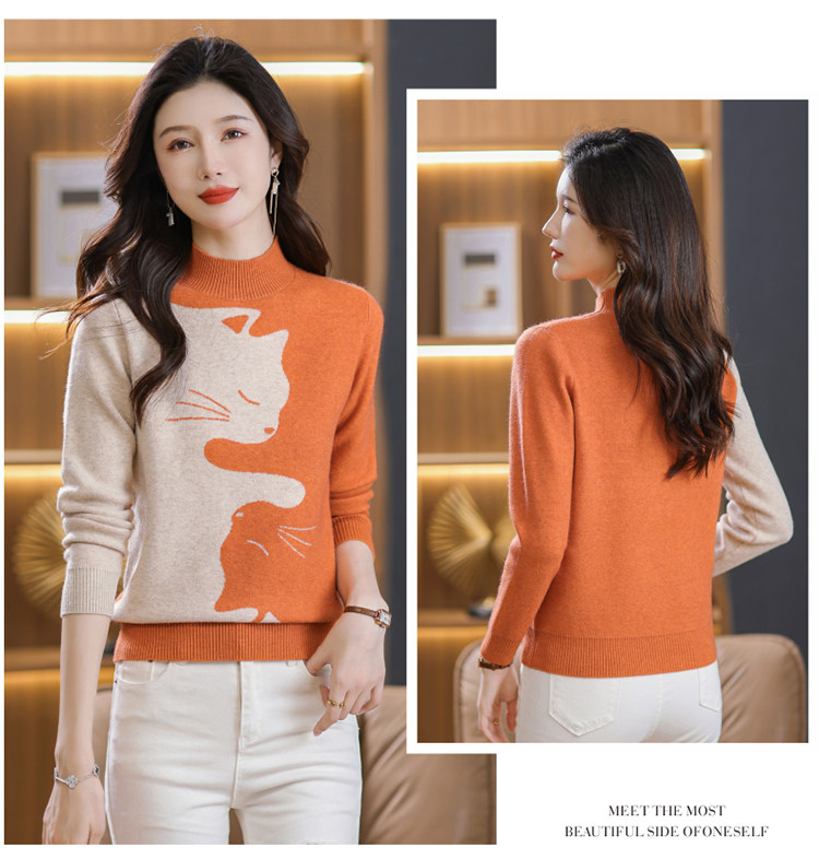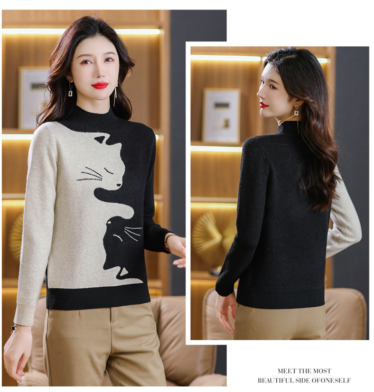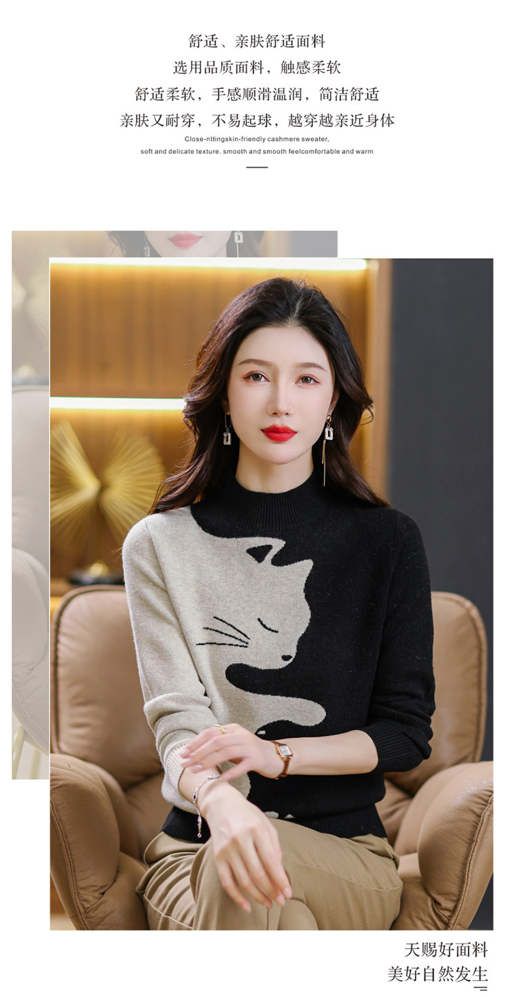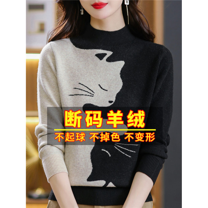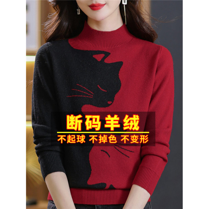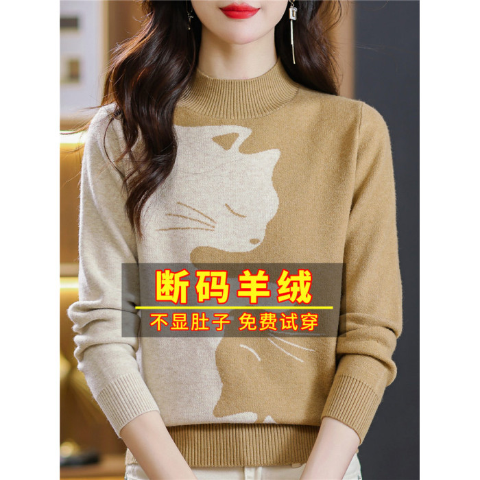 鄂爾多斯市羊絨衫女2025新品印花半高領打底衫厚爆款黑色毛衣秋冬