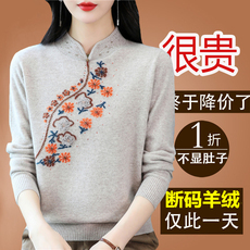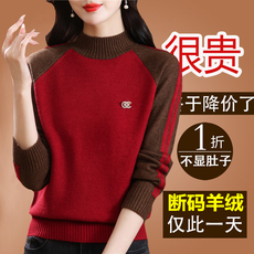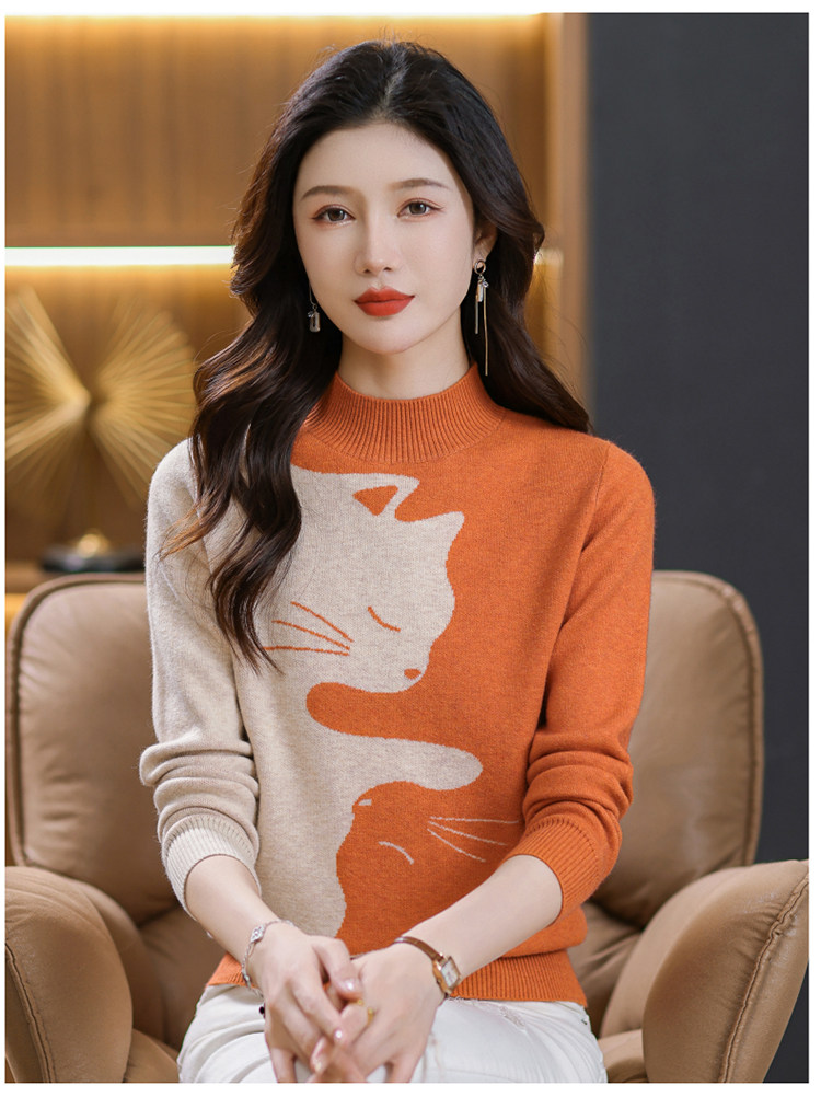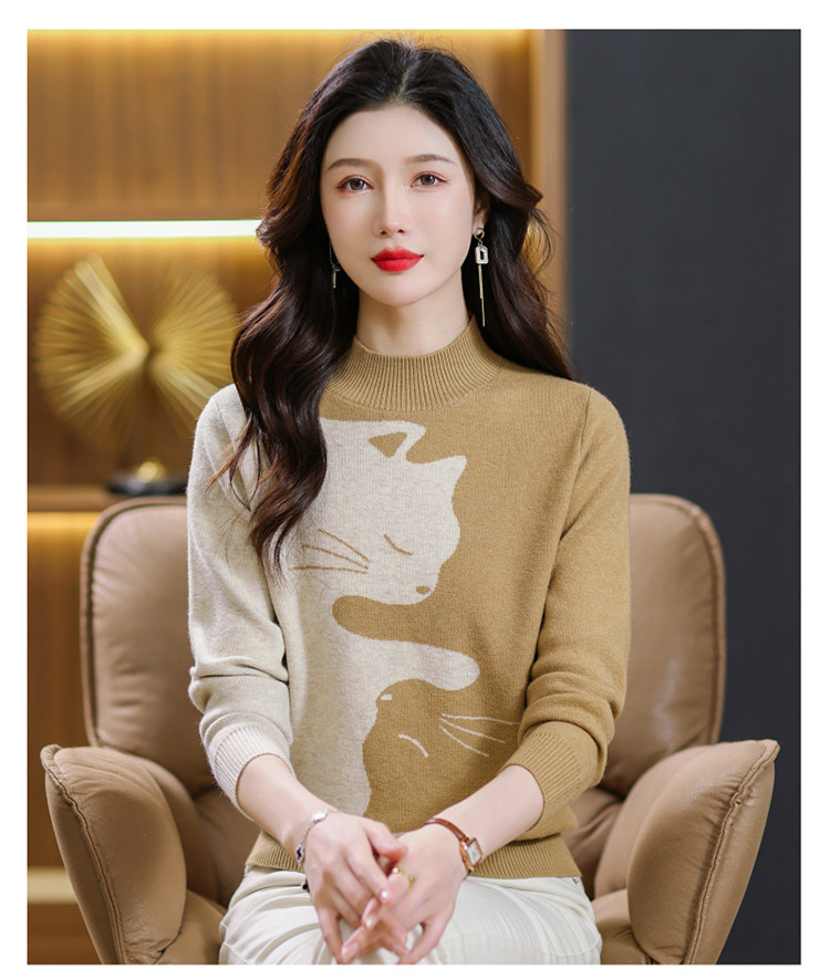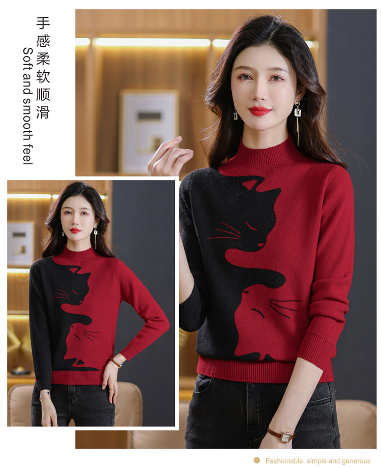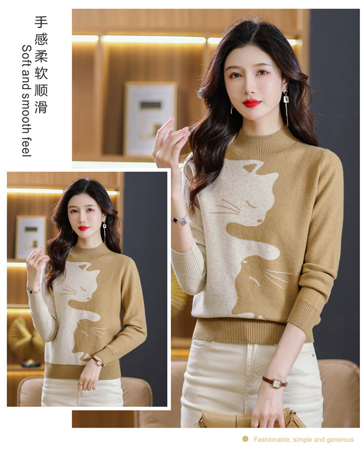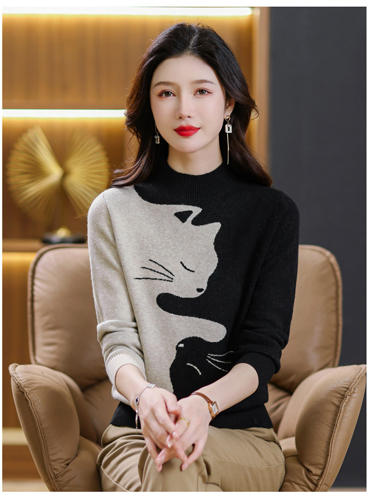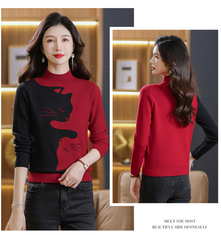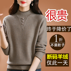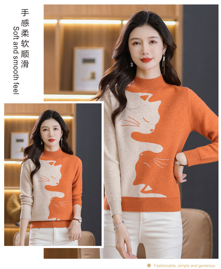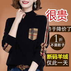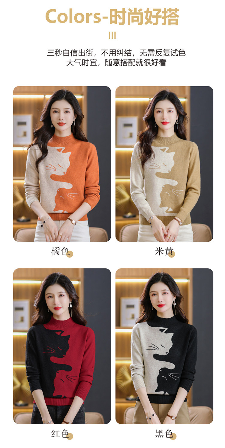 鄂爾多斯市羊絨衫女2025新品印花半高領打底衫厚爆款黑色毛衣秋冬