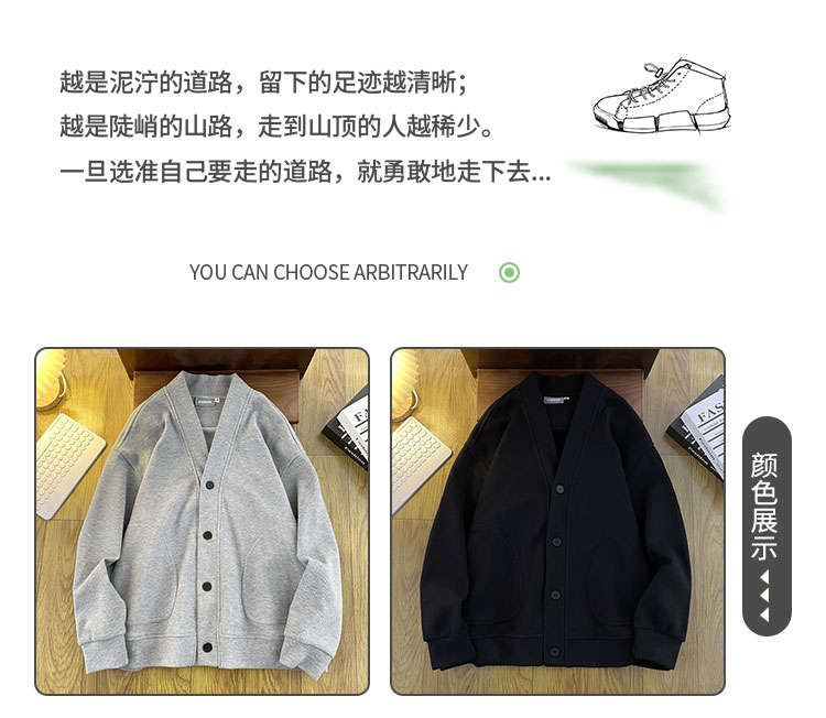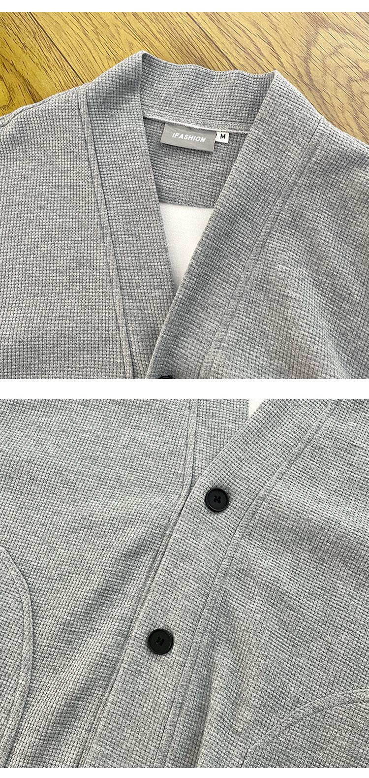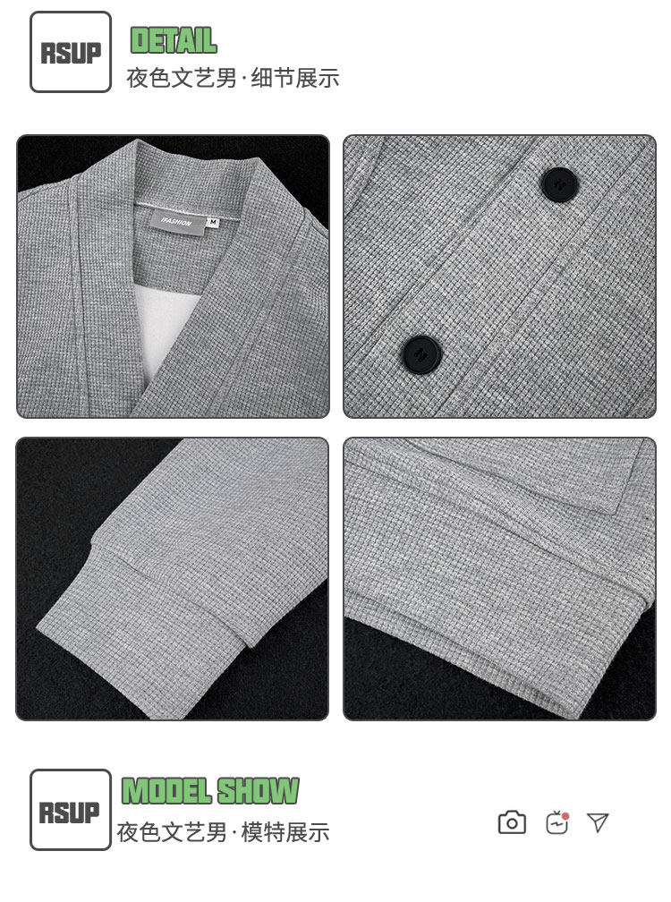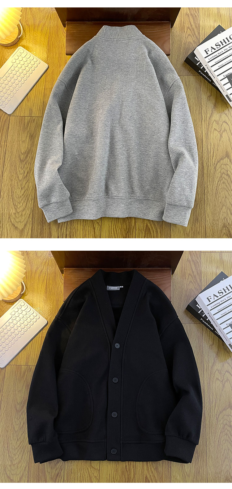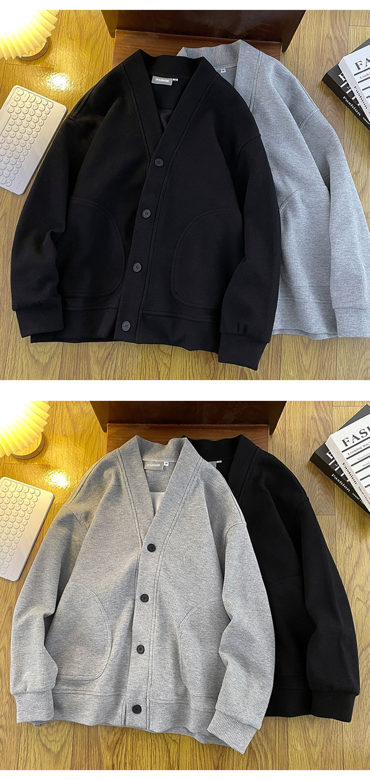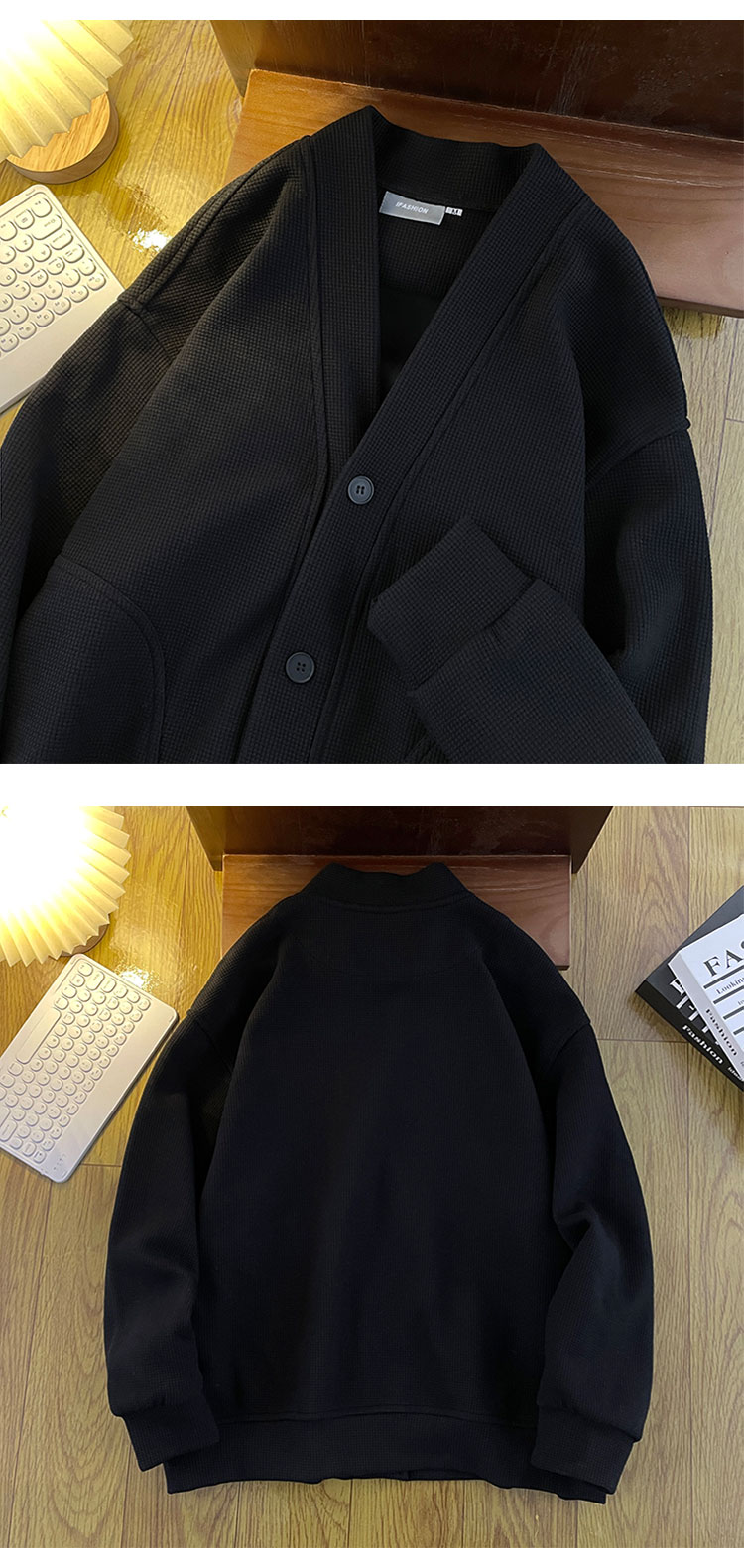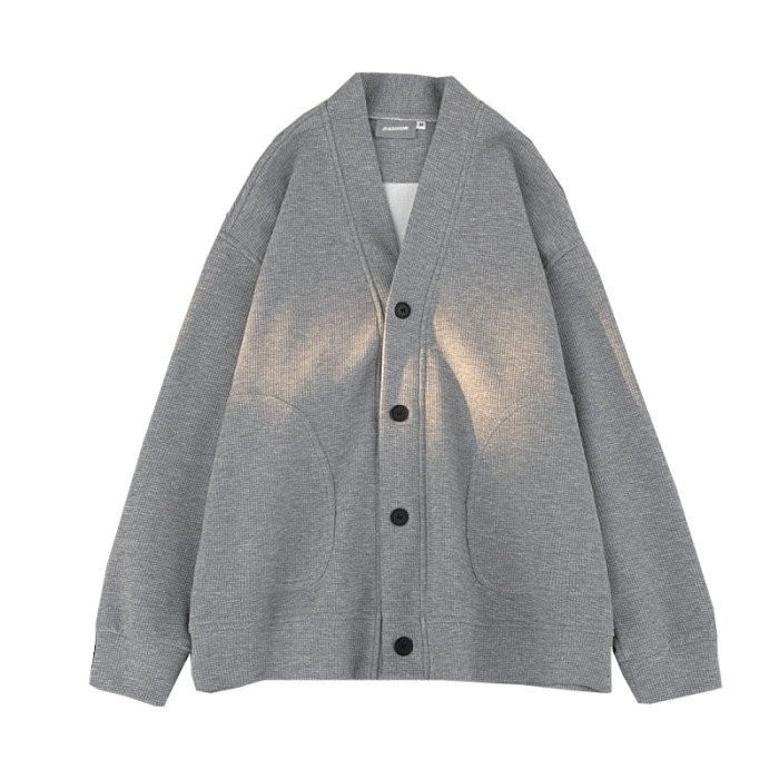 華夫格V領針織毛衣男秋季寬松開衫衛衣日系潮牌情侶休閒紐釦夾克