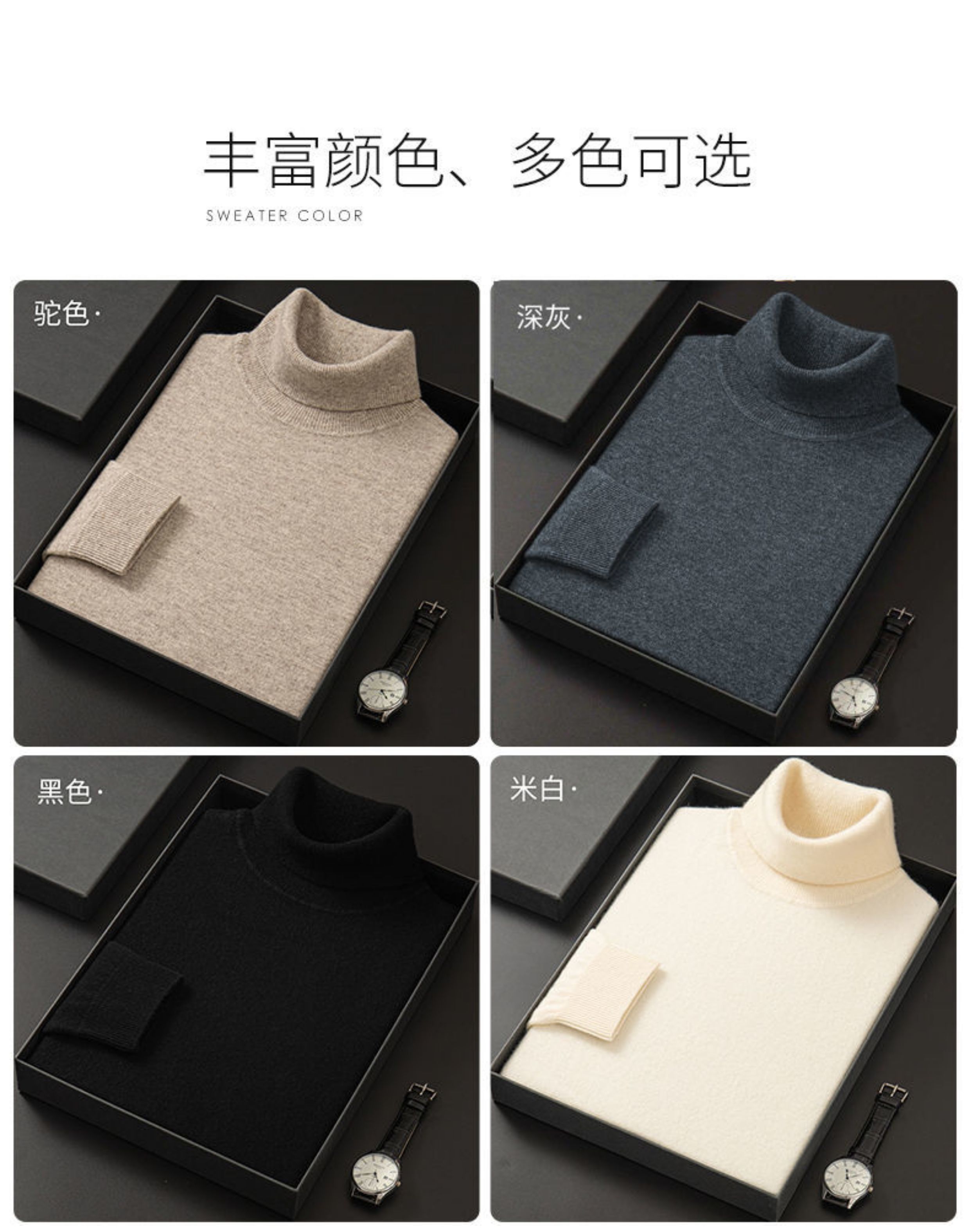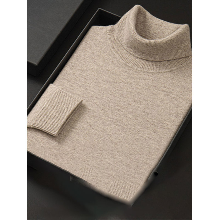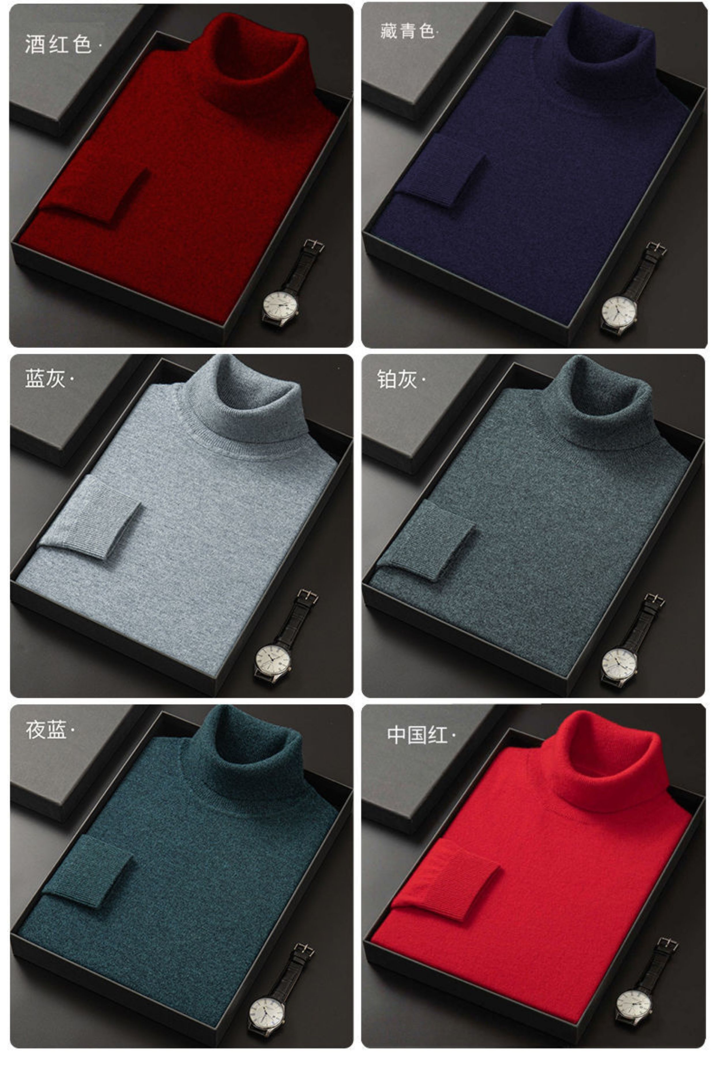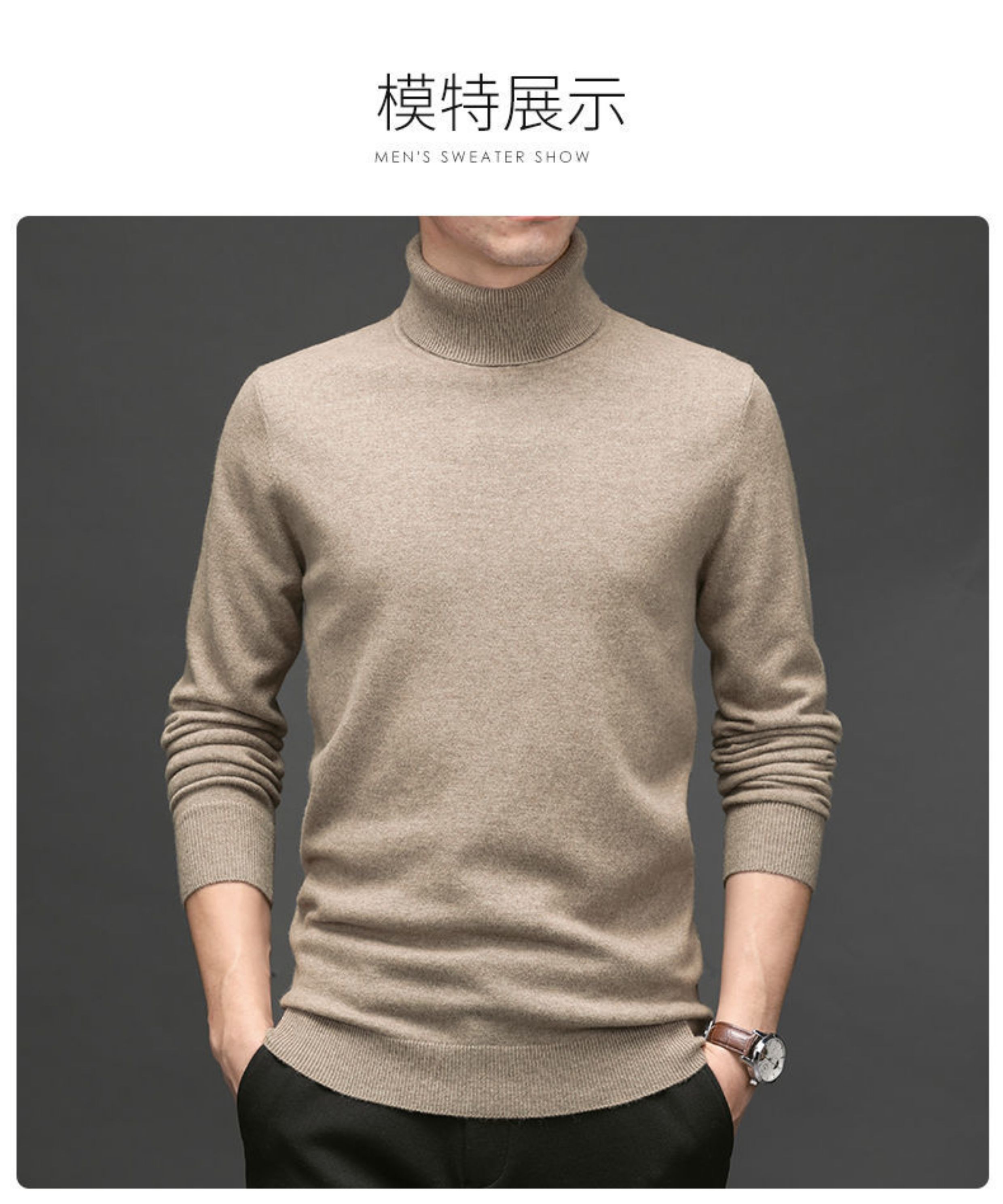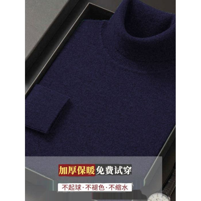 鄂爾多高領純色毛衣男100%毛衫針織打底衫保暖加厚寬松秋冬2025新