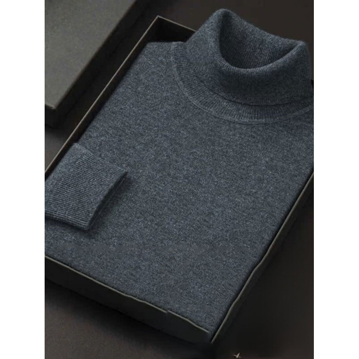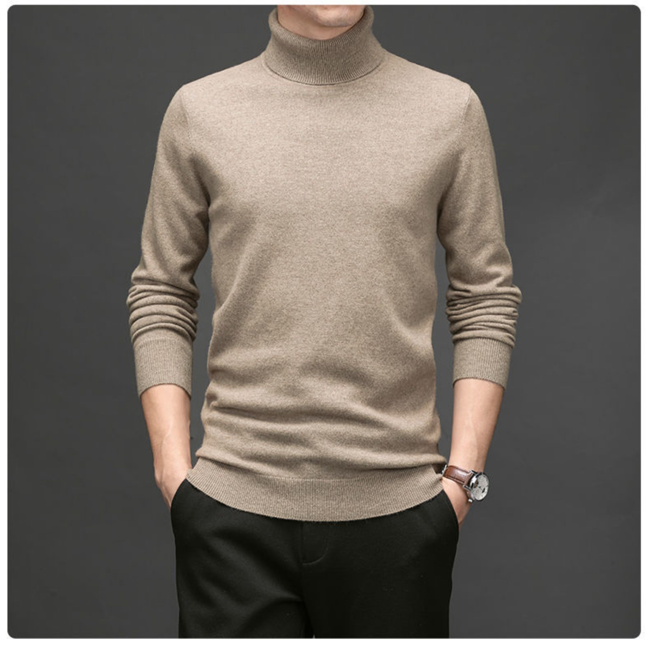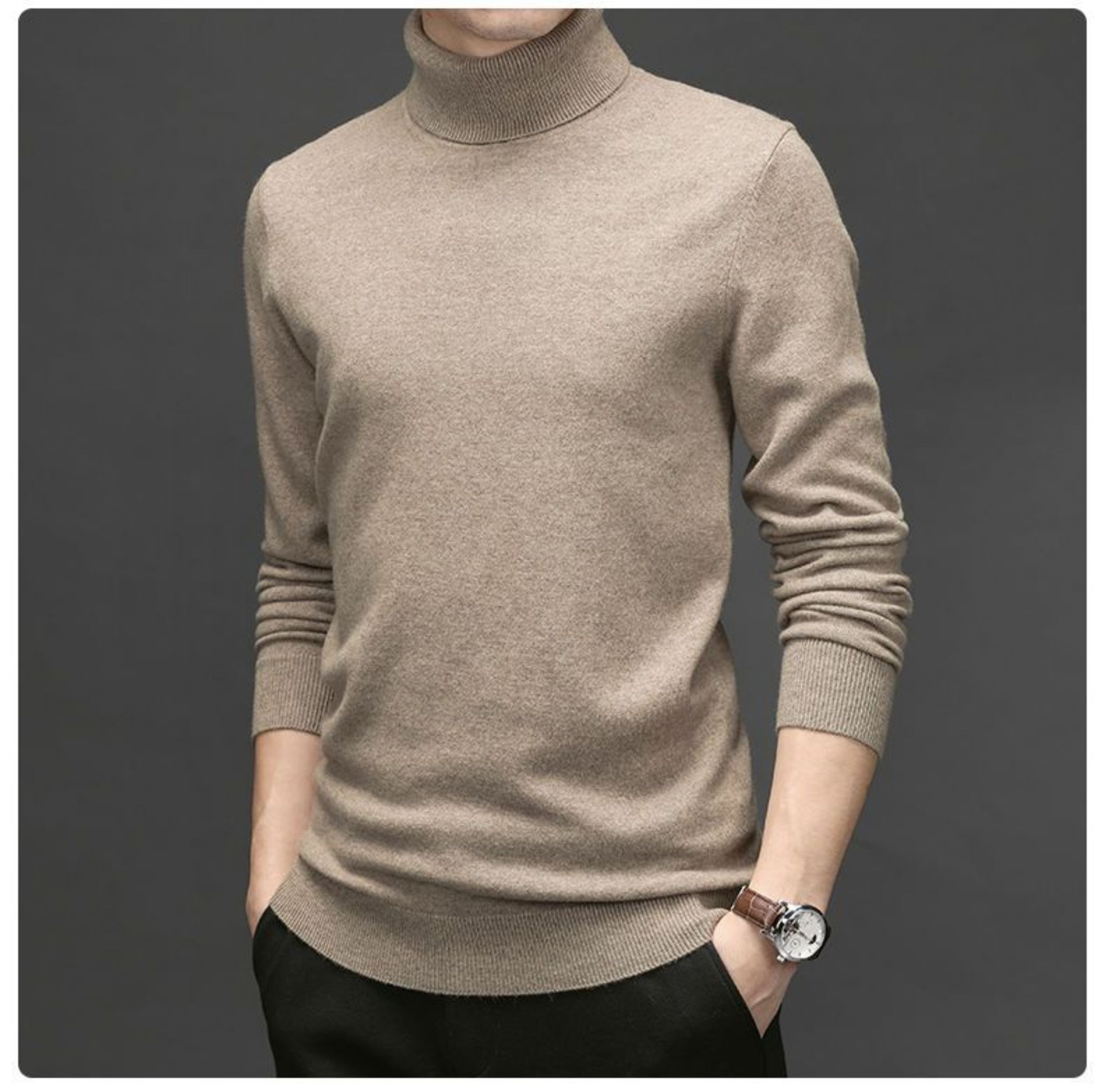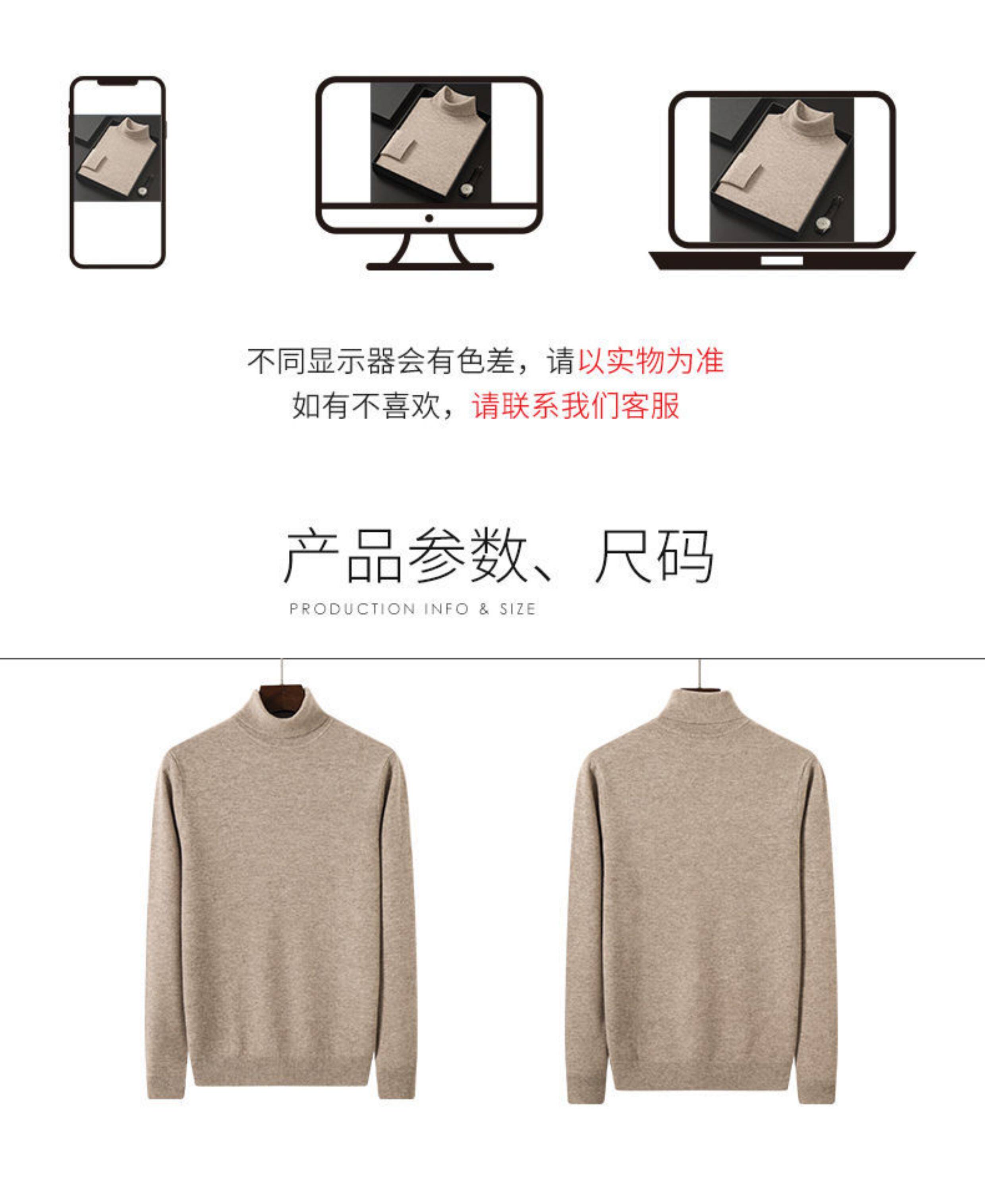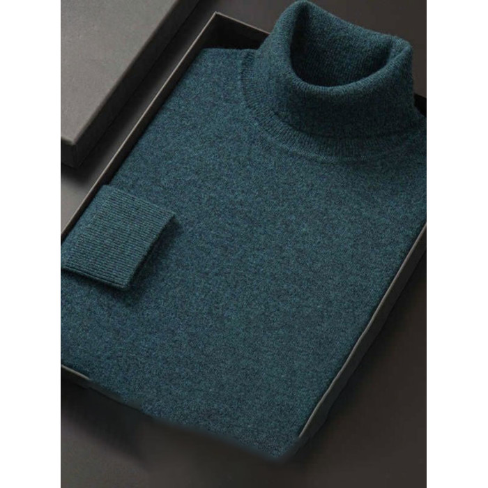 鄂爾多高領純色毛衣男100%毛衫針織打底衫保暖加厚寬松秋冬2025新