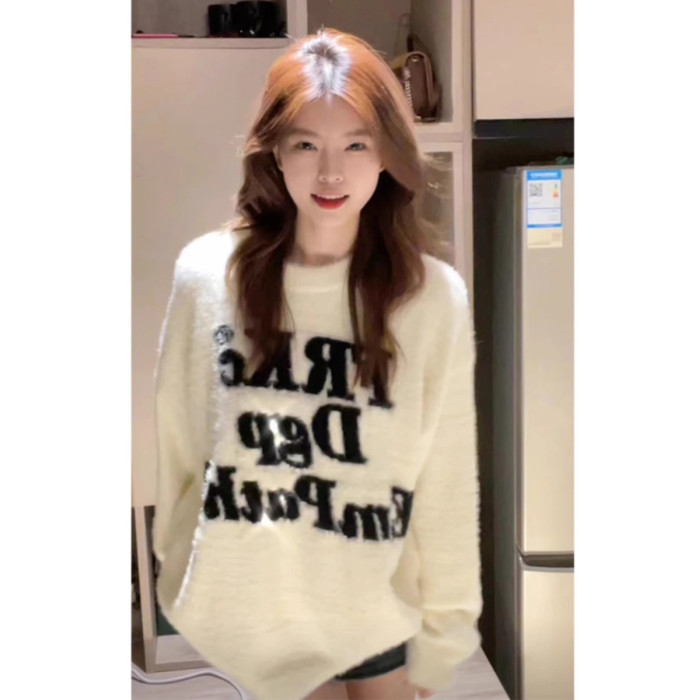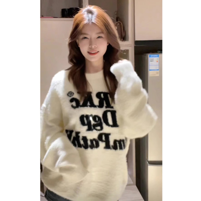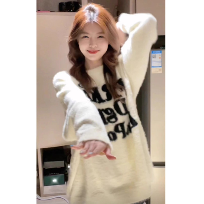水貂絨毛衣女小個子秋冬加厚高級感寬松慵懶風軟糯奶fufu針織外套