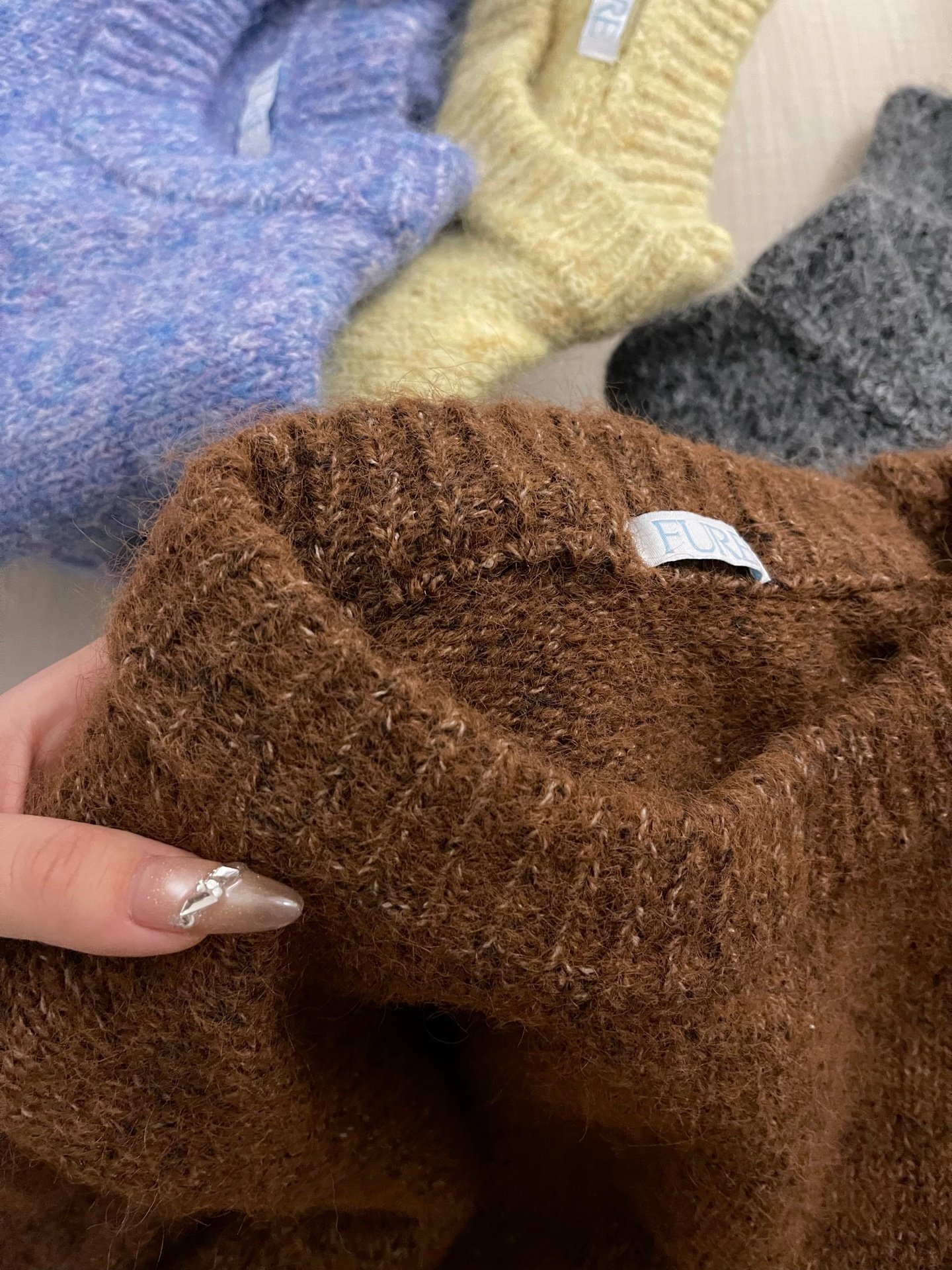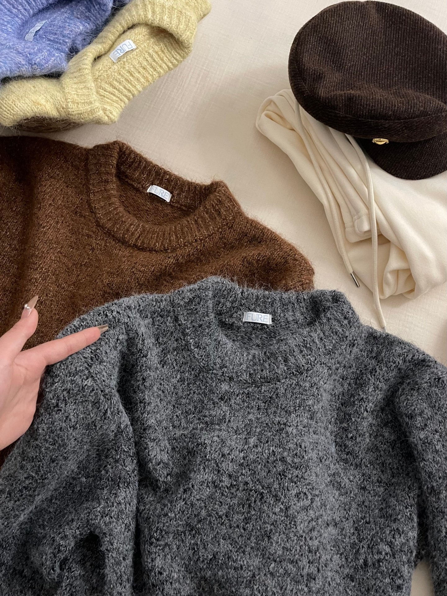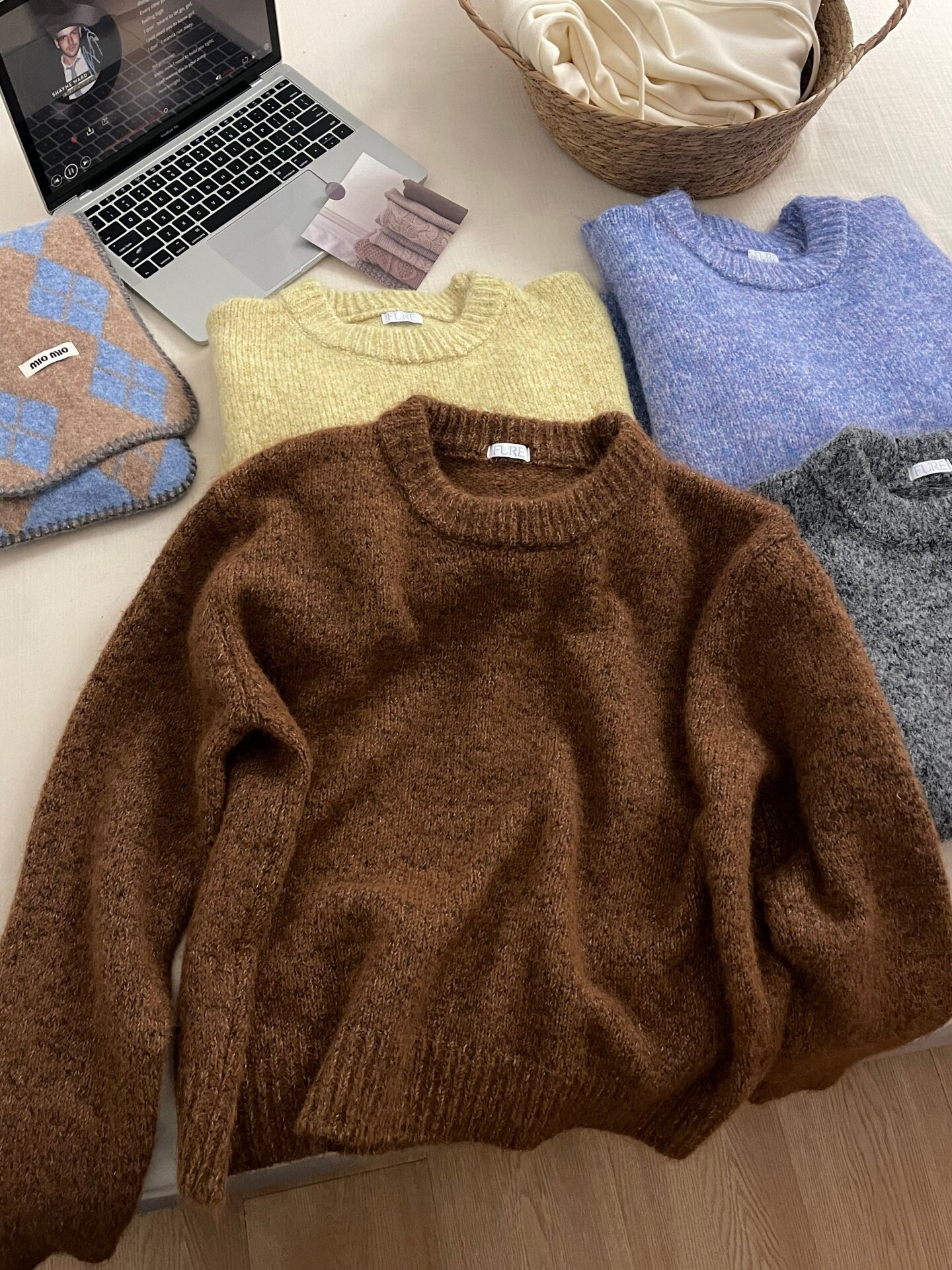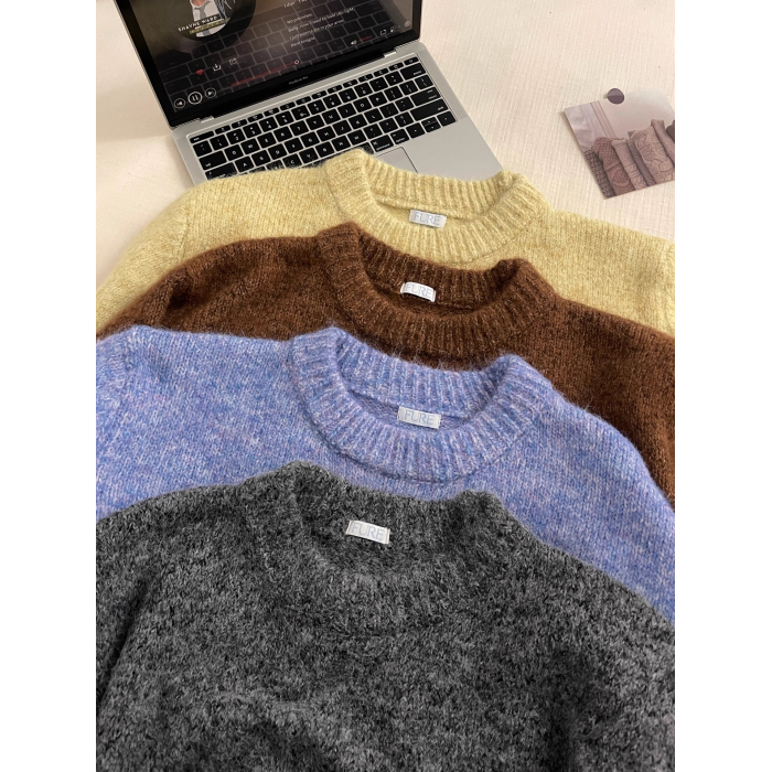 韓代@fu*e 超美的花紗羊毛混紡!慵懶復古毛茸茸質感圓領套頭毛衣