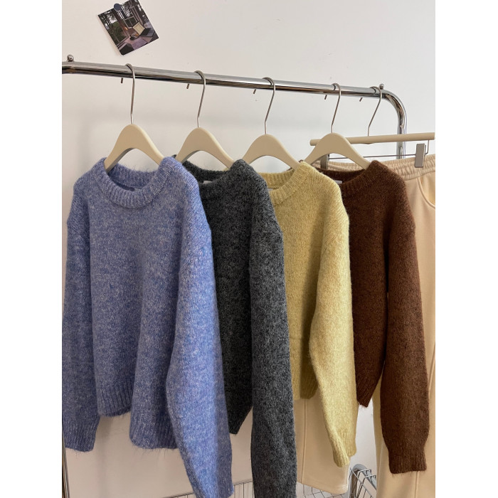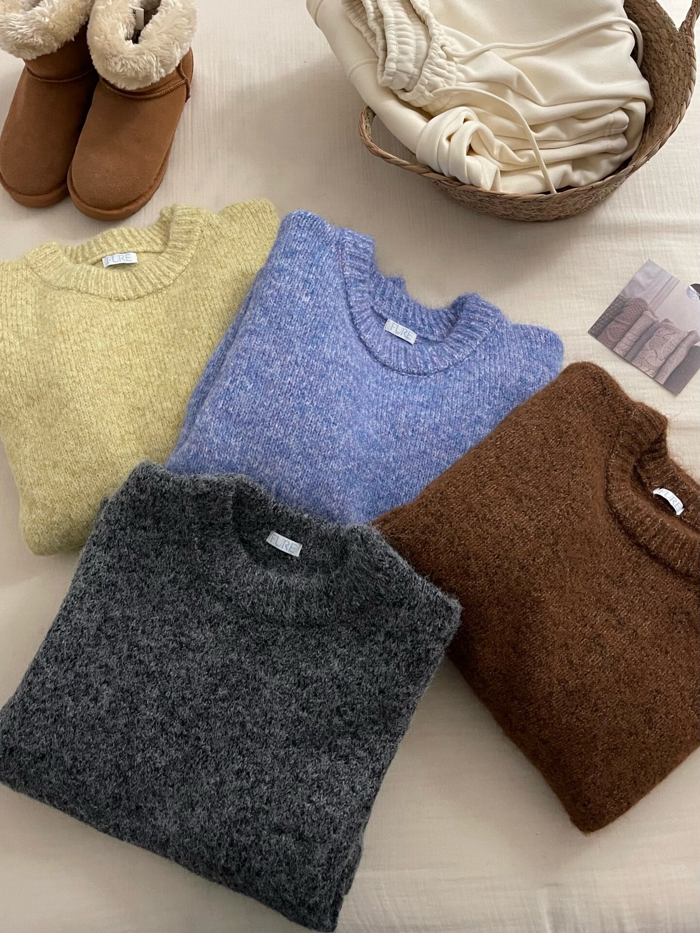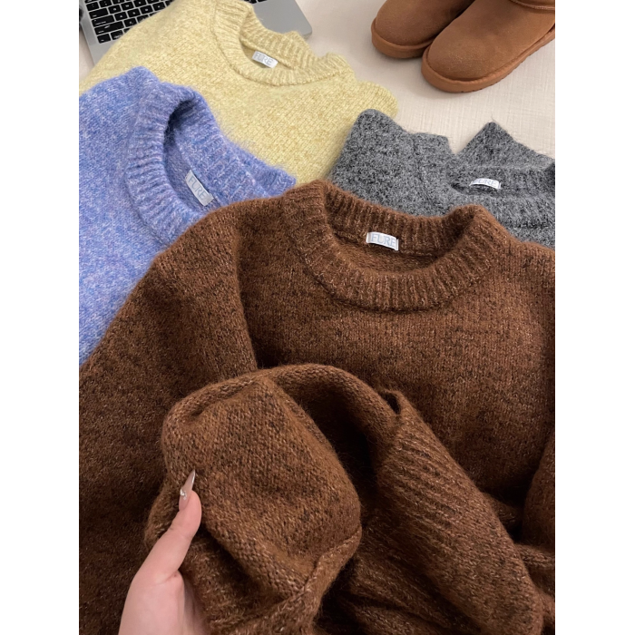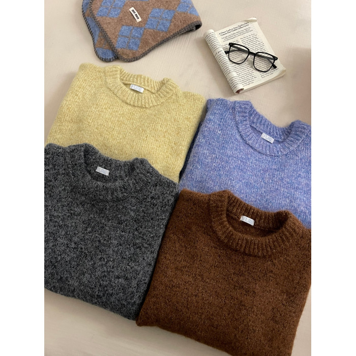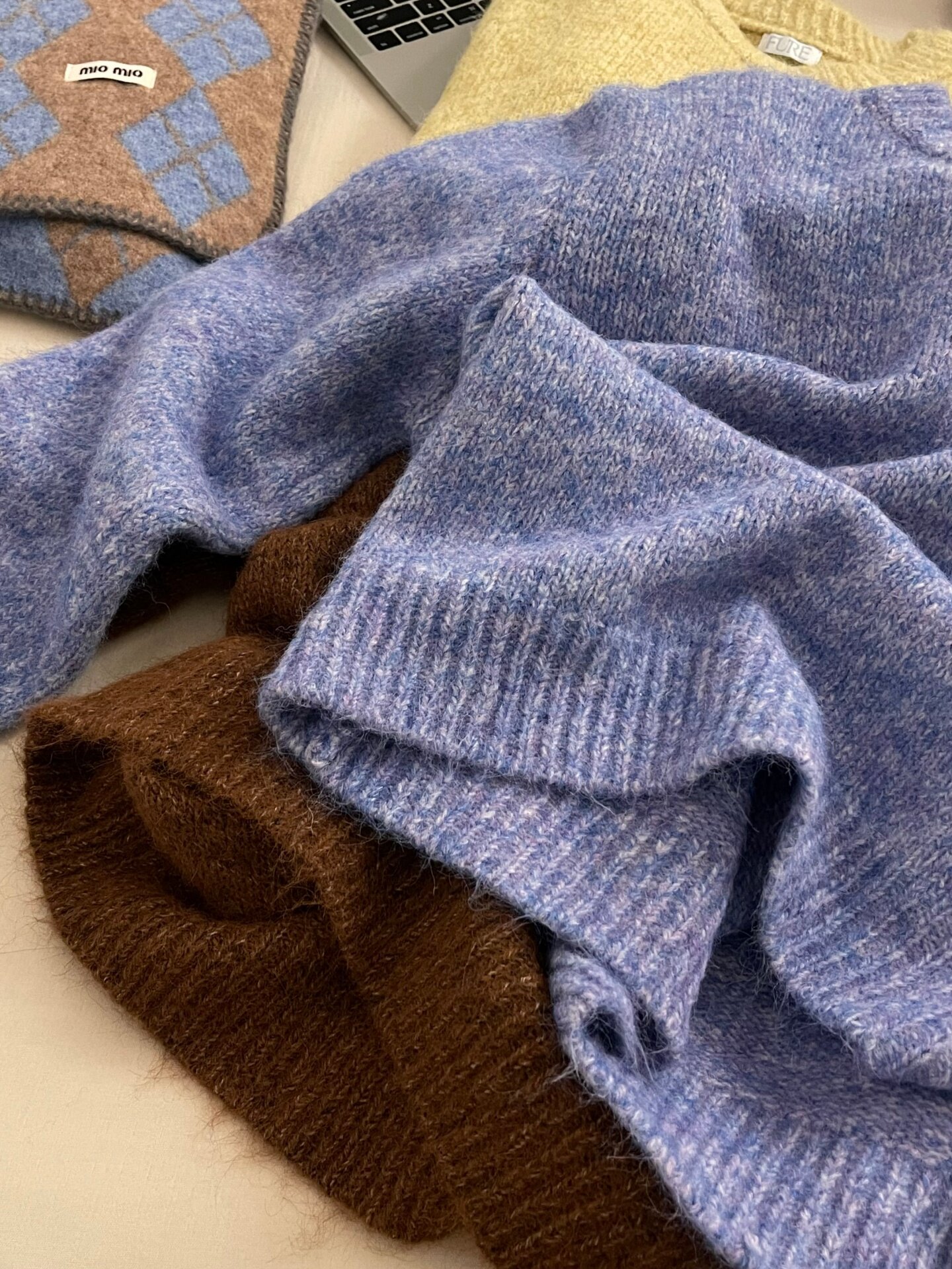 韓代@fu*e 超美的花紗羊毛混紡!慵懶復古毛茸茸質感圓領套頭毛衣