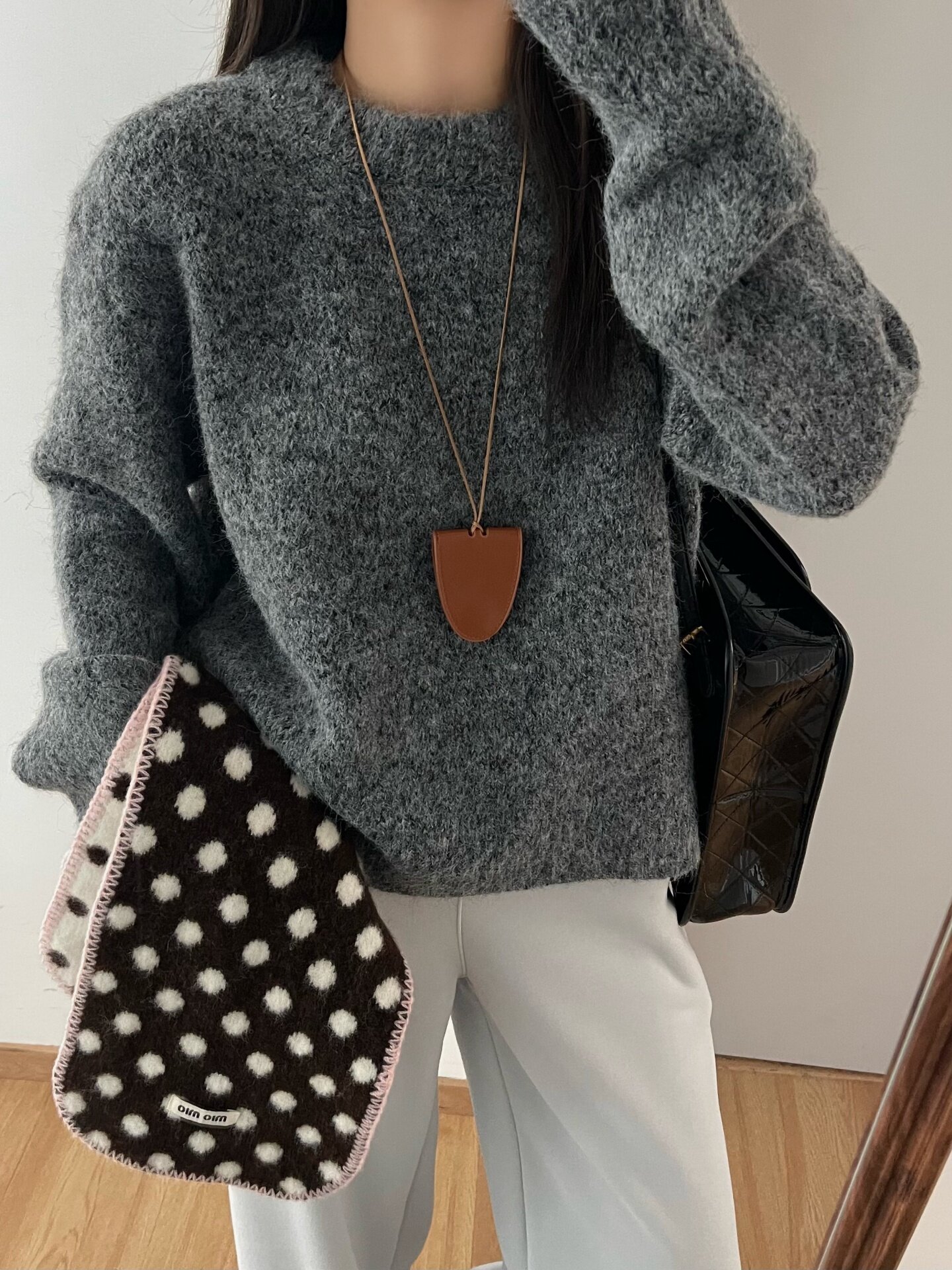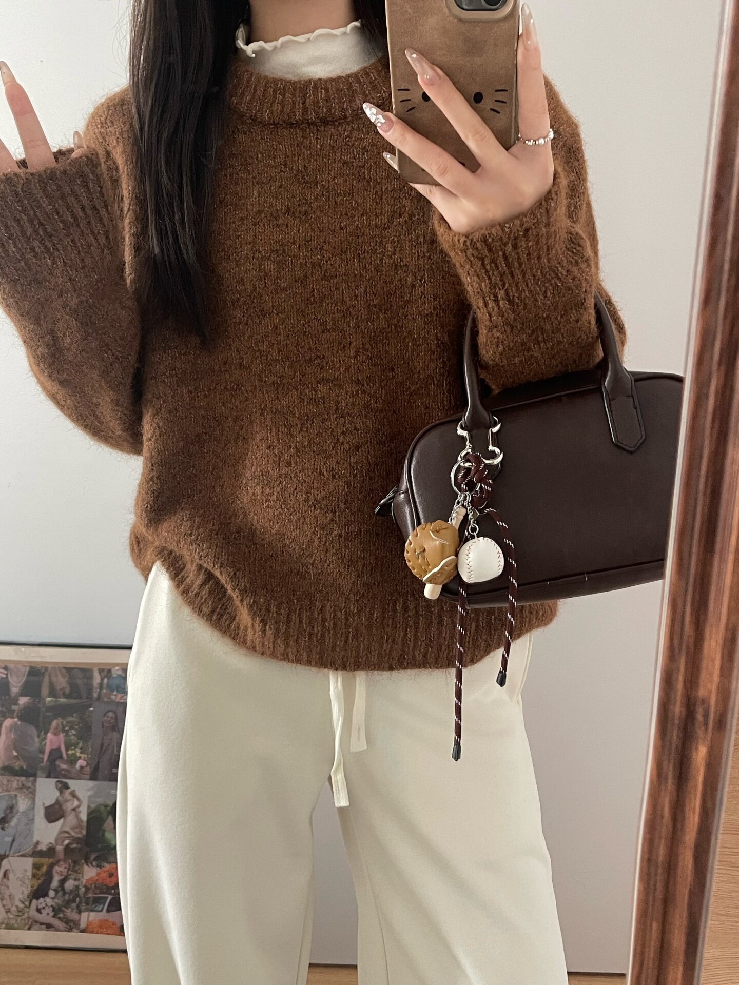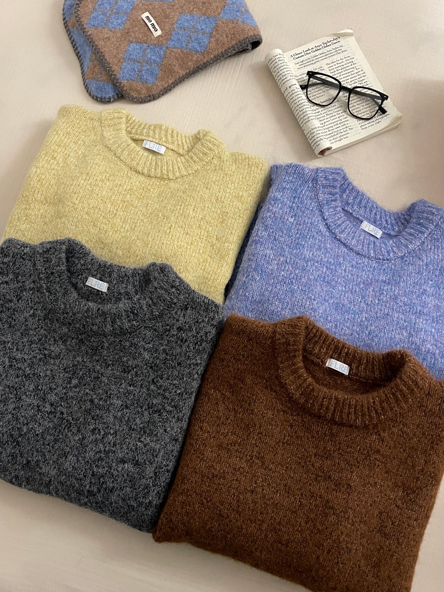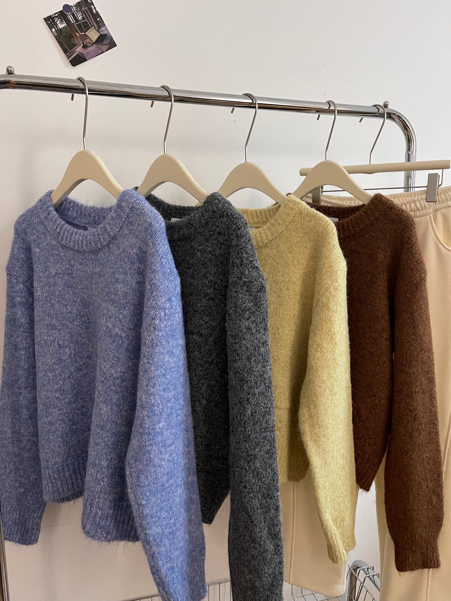 韓代@fu*e 超美的花紗羊毛混紡!慵懶復古毛茸茸質感圓領套頭毛衣