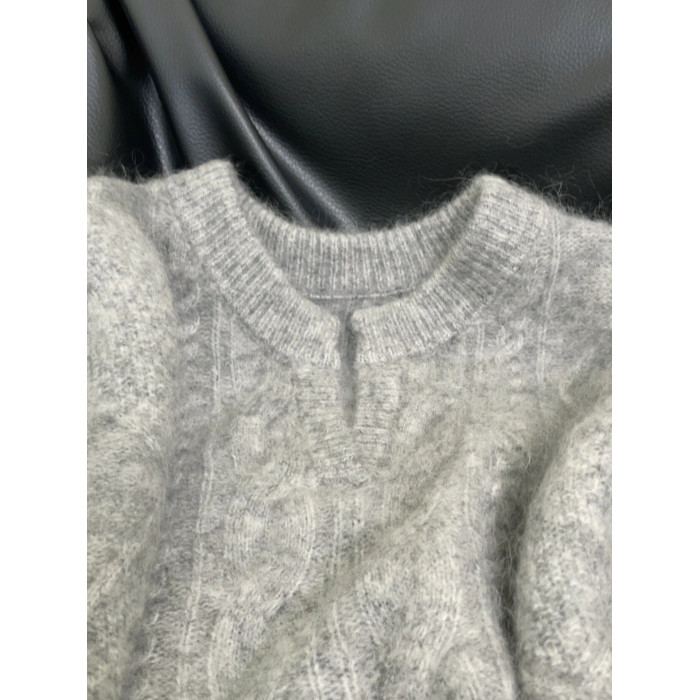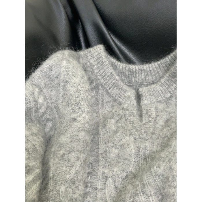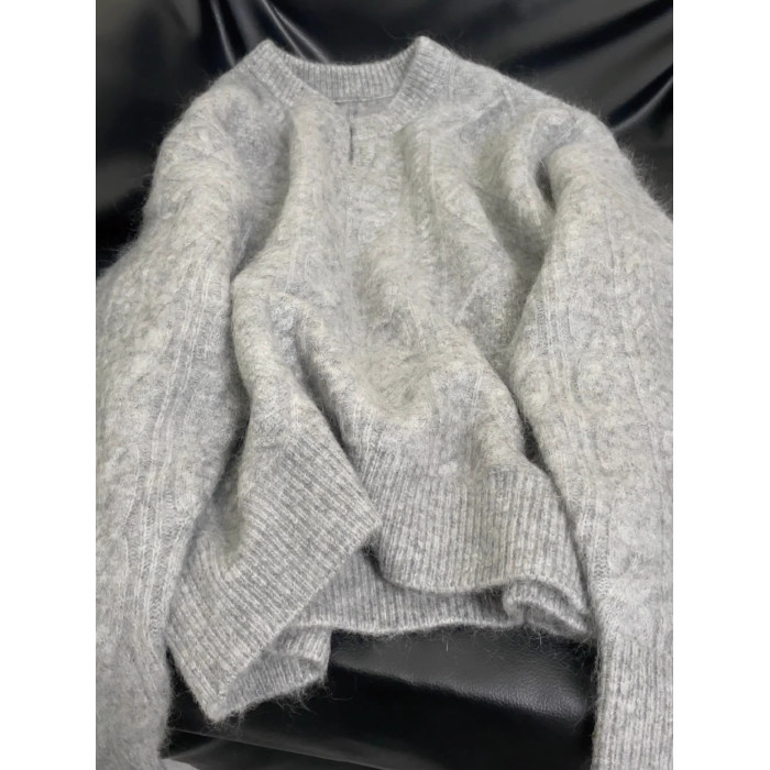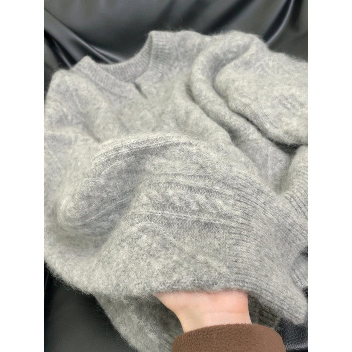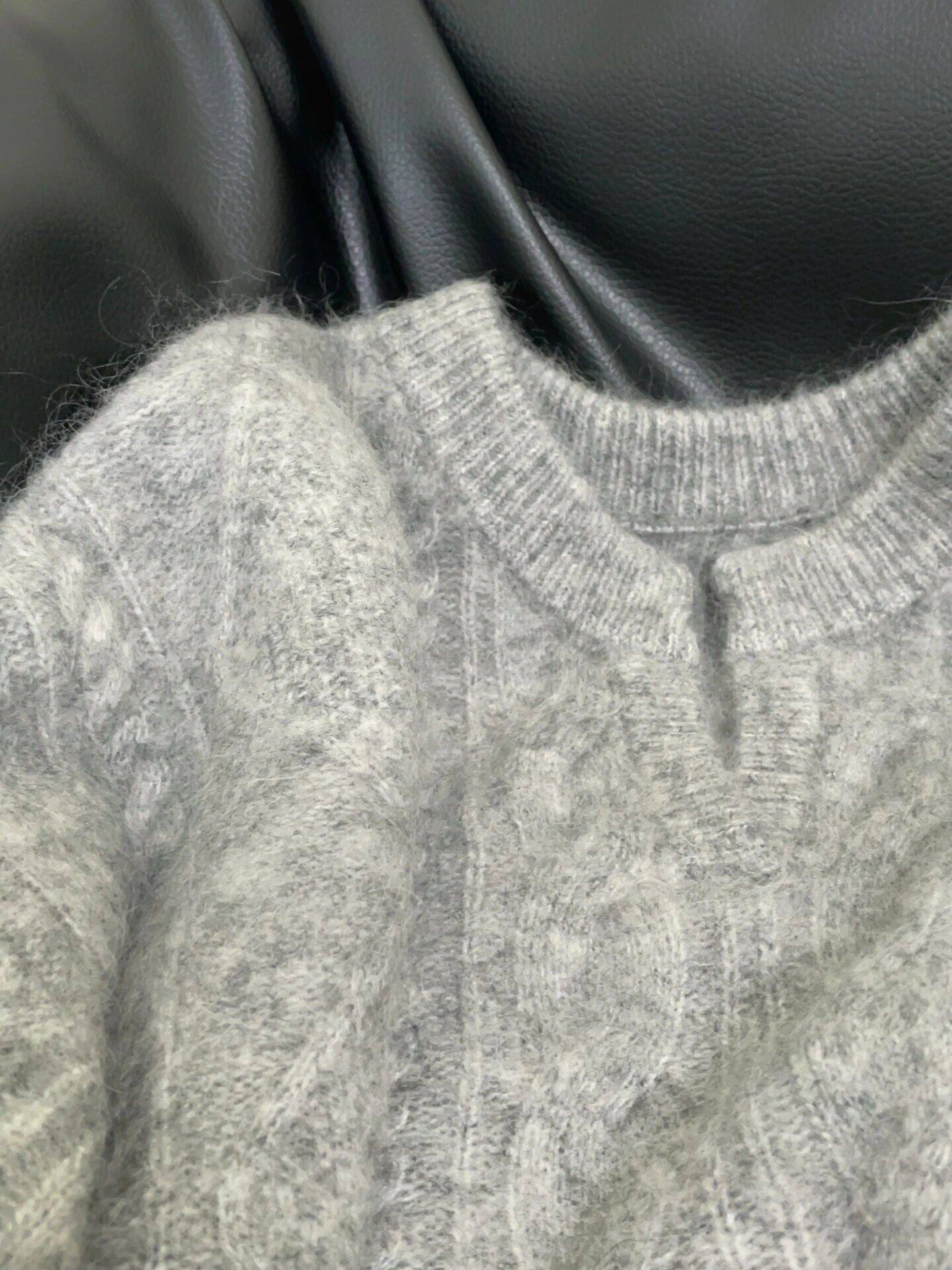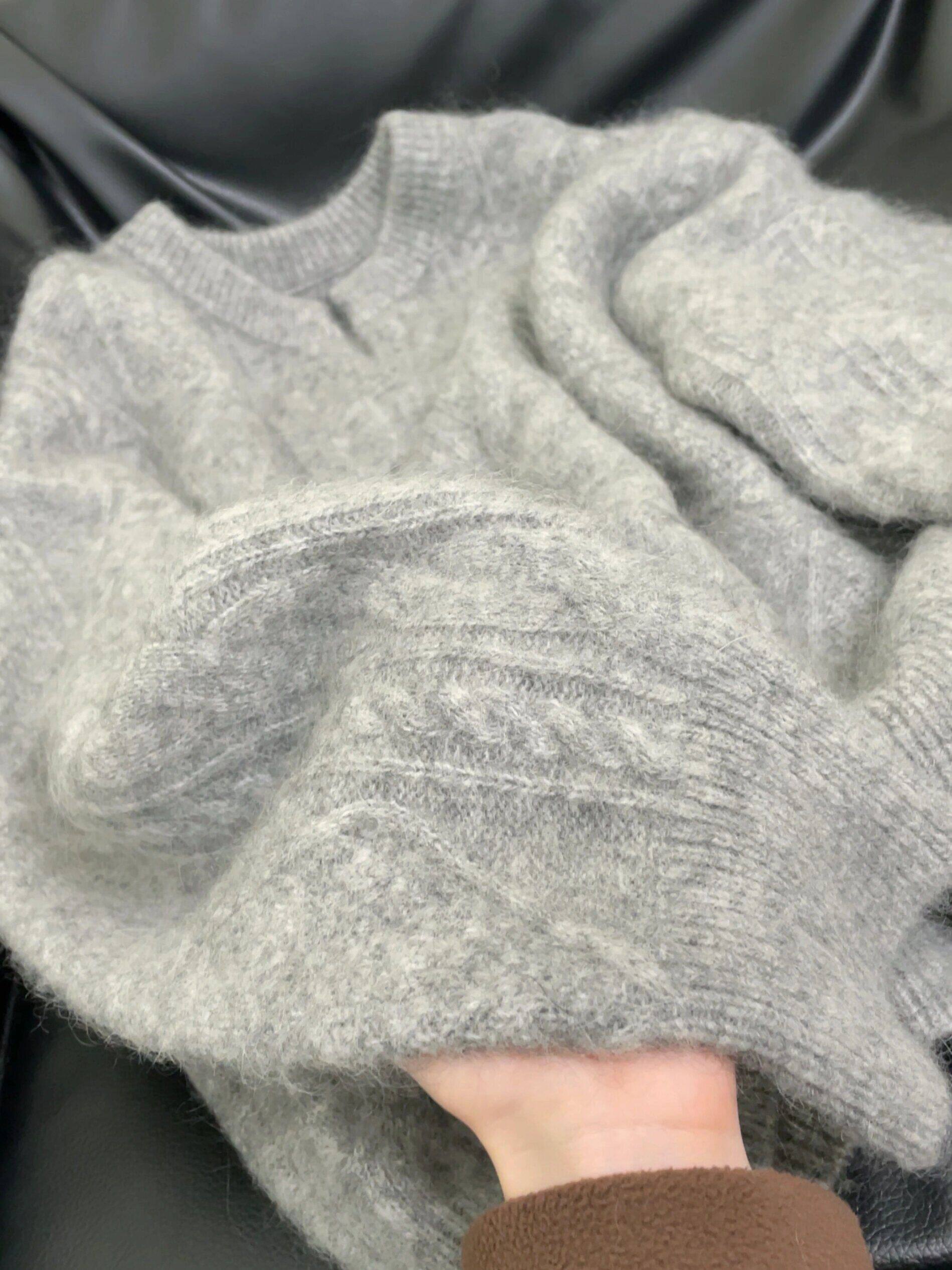 高級感灰色v領麻花浣熊絨套頭毛衣女秋冬慵懶加厚內搭針織衫上衣