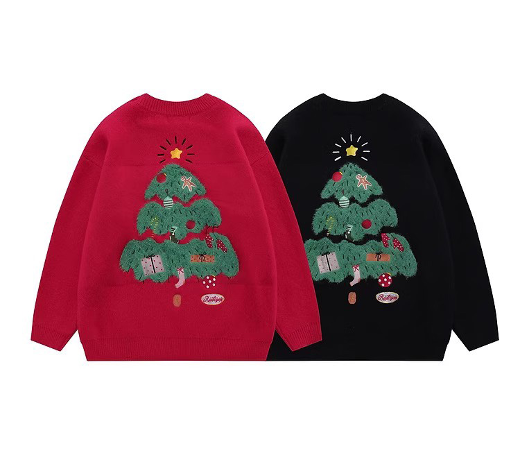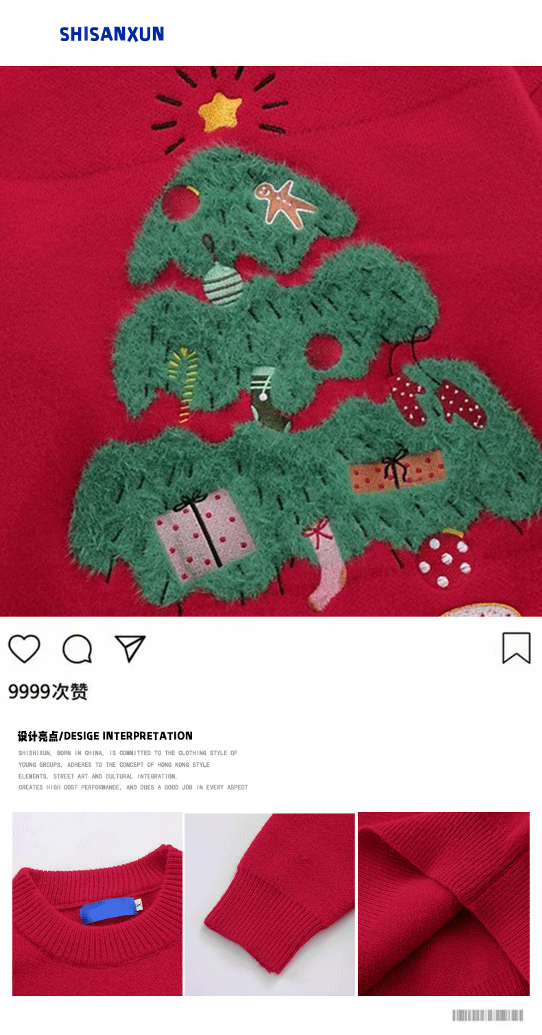SHISANXUN美式復古hiphop植絨情侶聖誕毛衣男冬季ins慵懶風針織衫