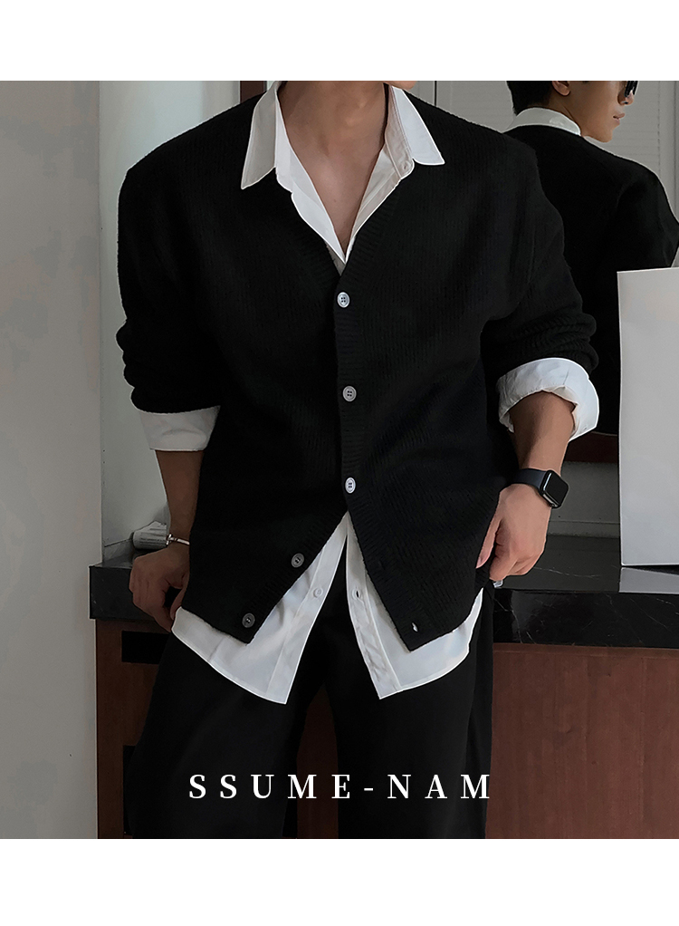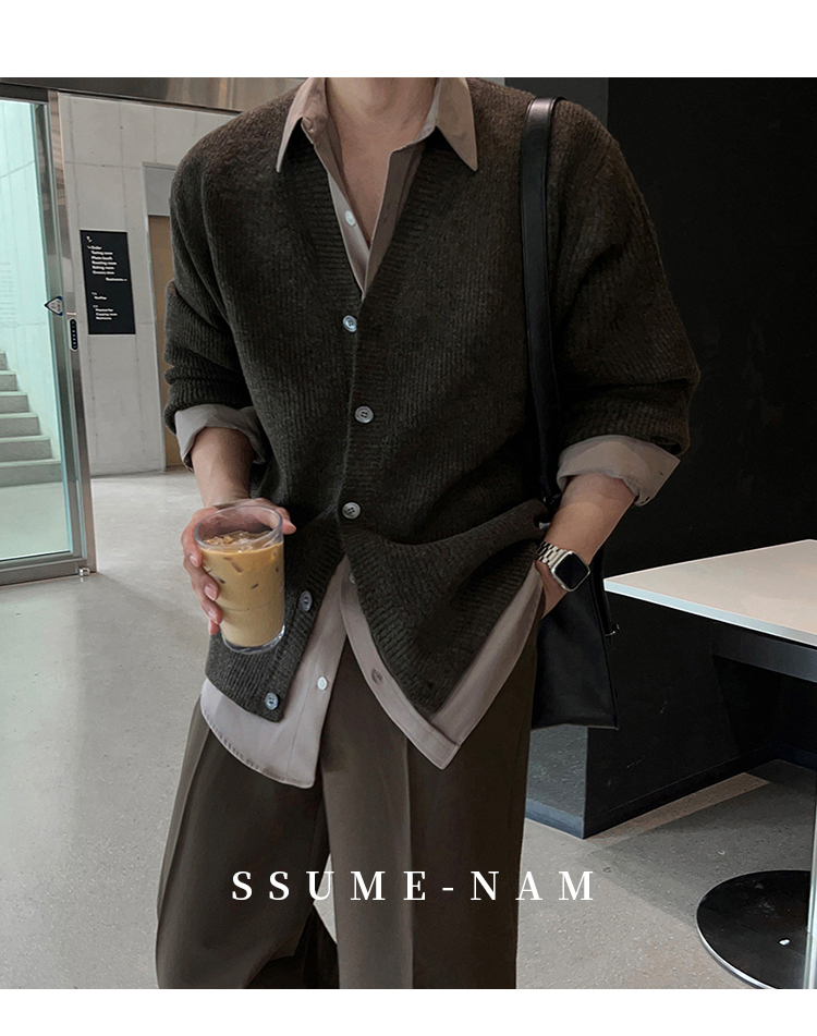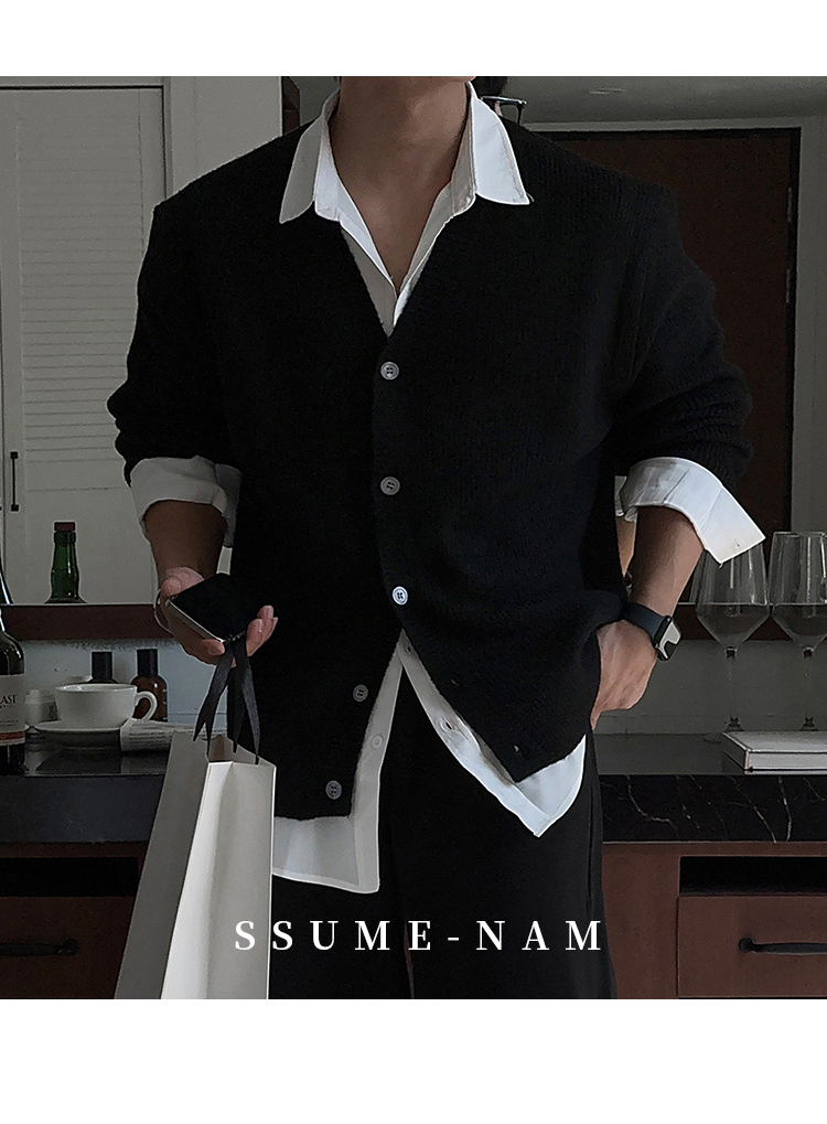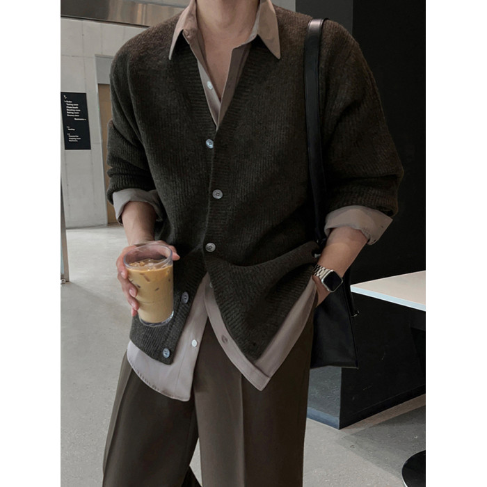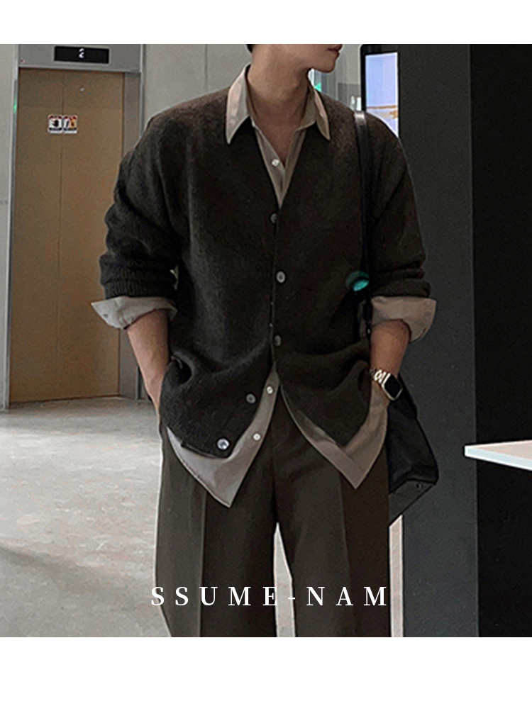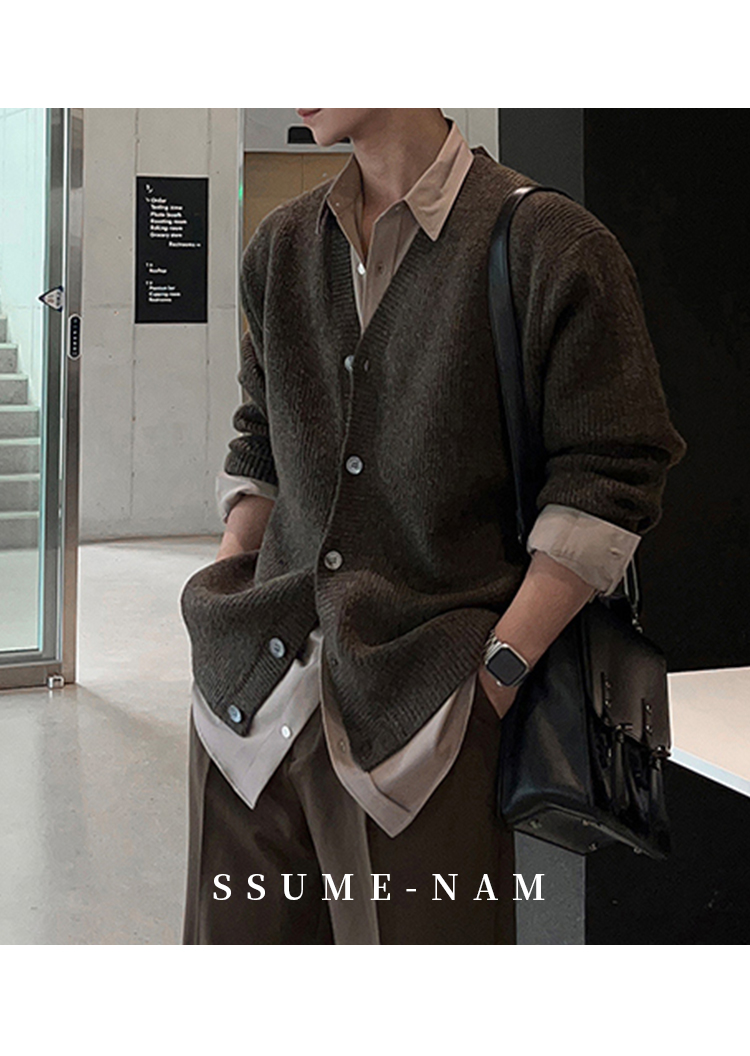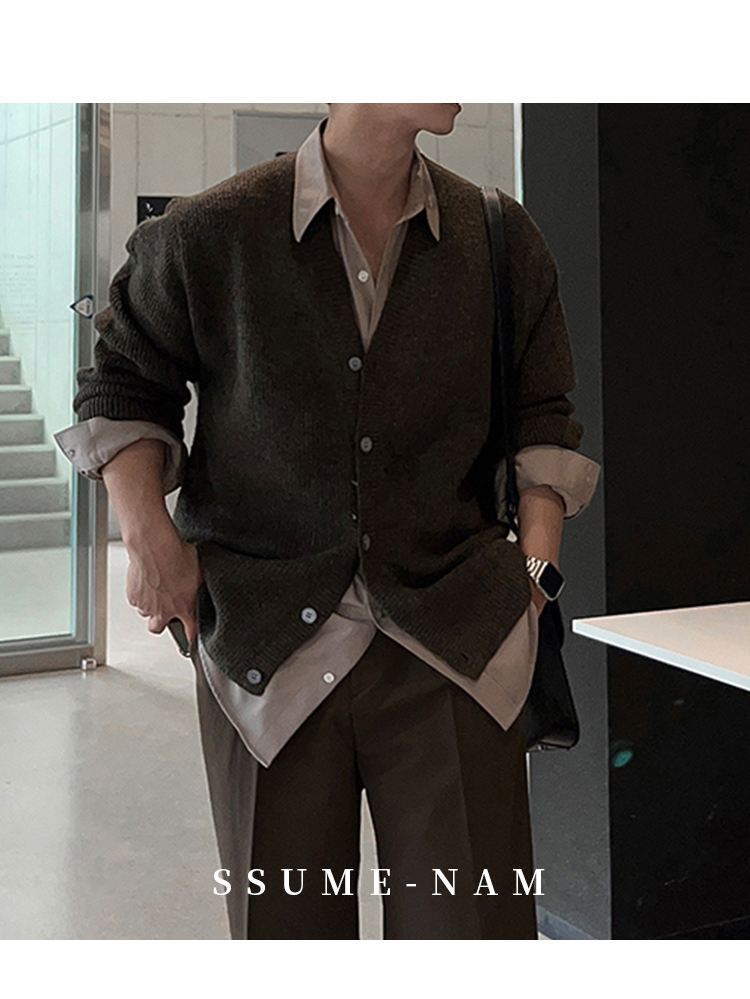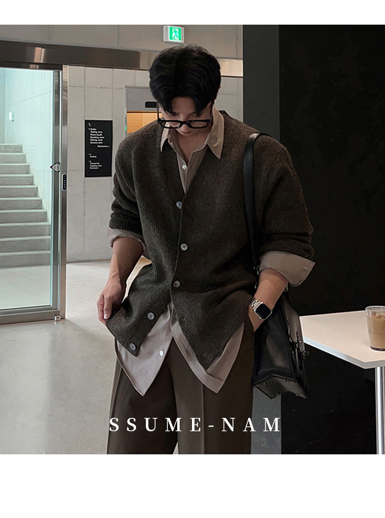 SSUMENAM「老錢風」V領針織開衫男秋冬季潮流韓版毛衣外套外穿
