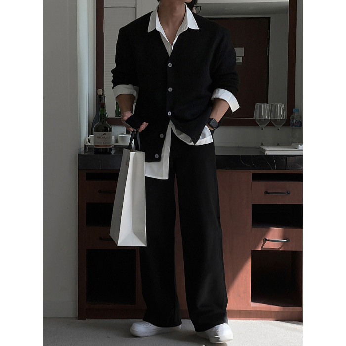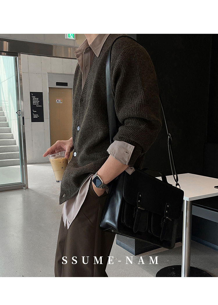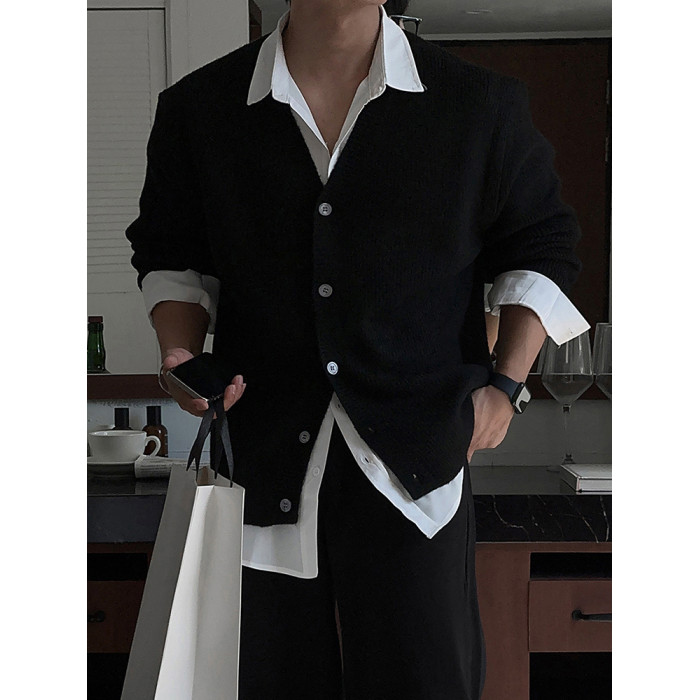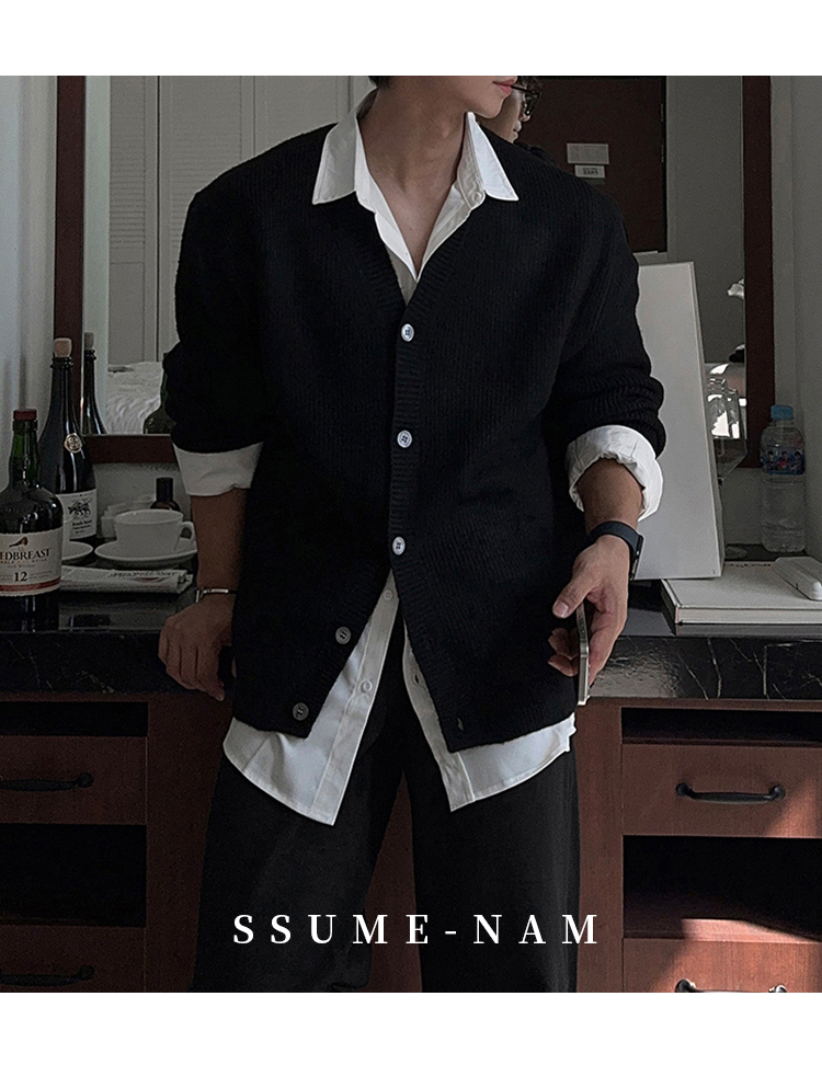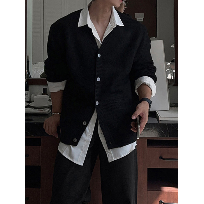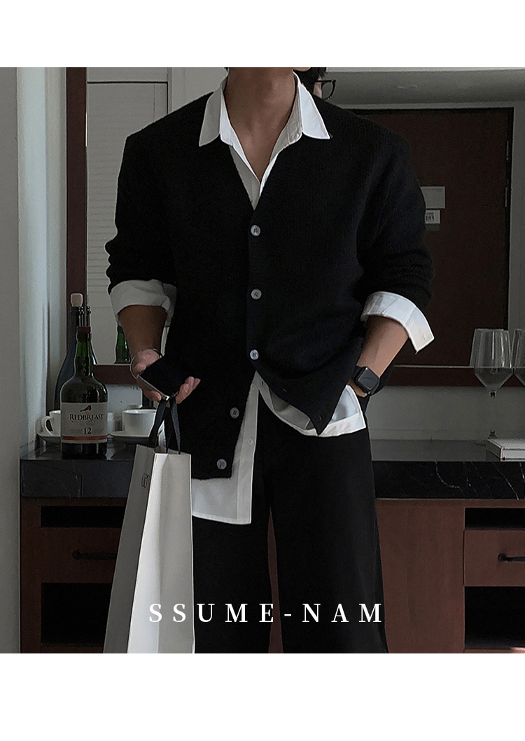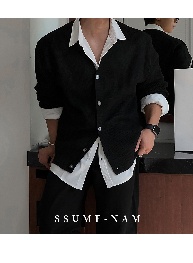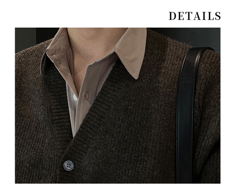 SSUMENAM「老錢風」V領針織開衫男秋冬季潮流韓版毛衣外套外穿