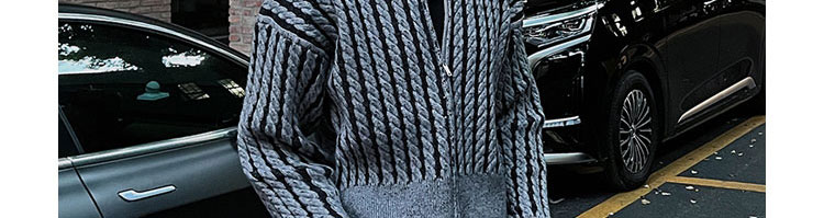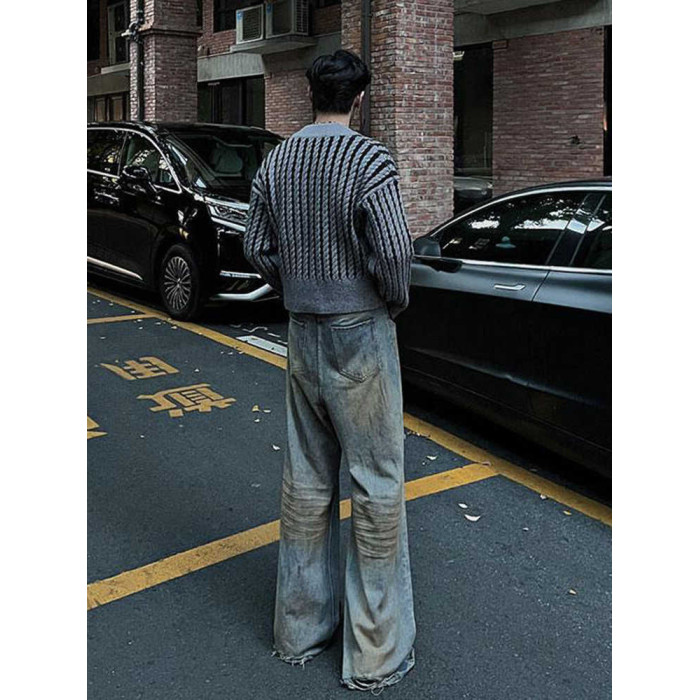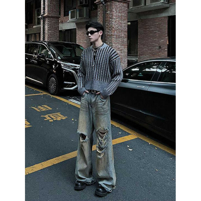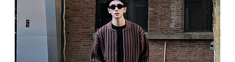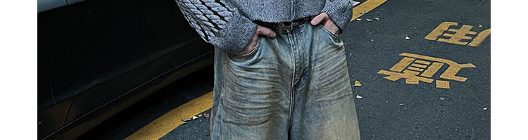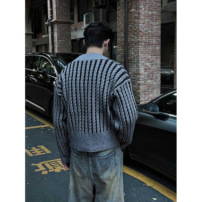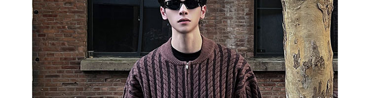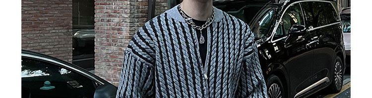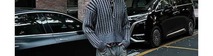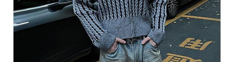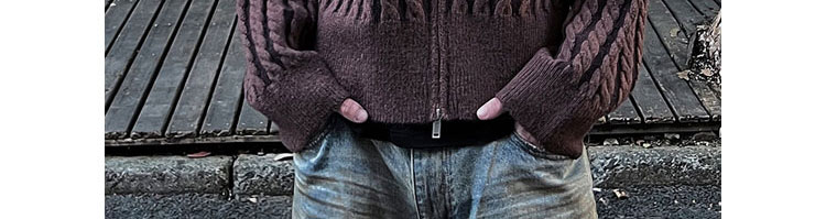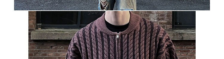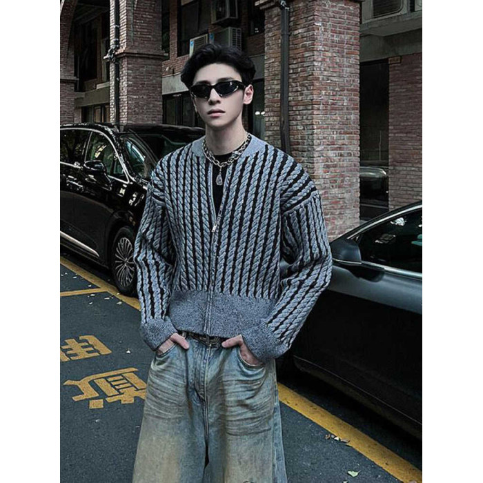美式復古bf慵懶寬松拉鍊針織衫男hiphop痞帥高級感麻花紋開衫毛衣