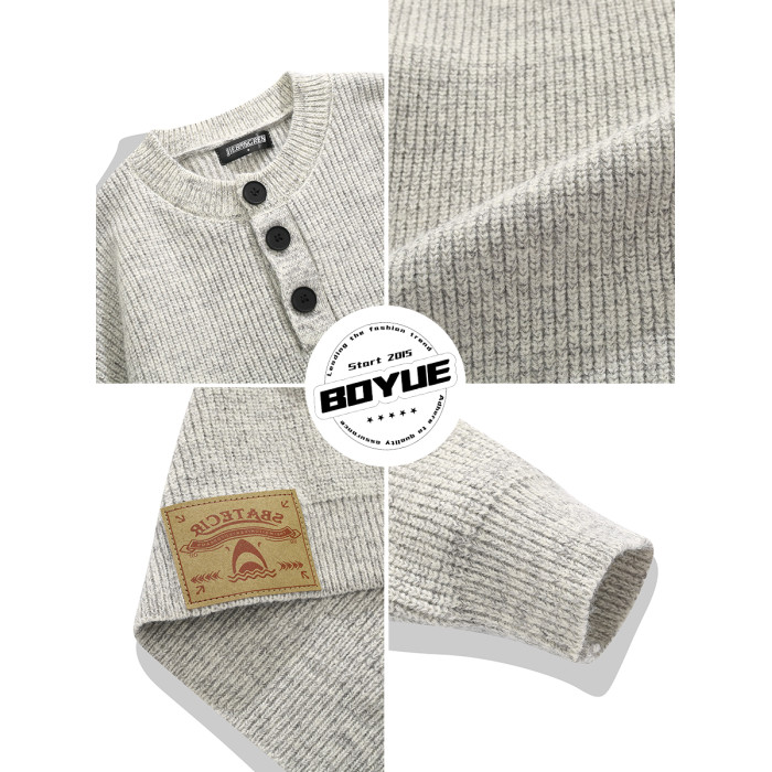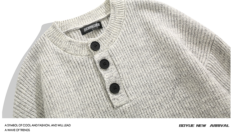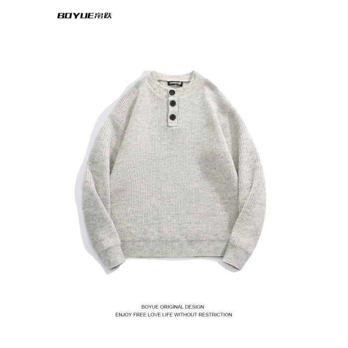 BOYUE帛躍美式復古亨利領毛衣男女慵懶風高級感針織衫外套上衣潮