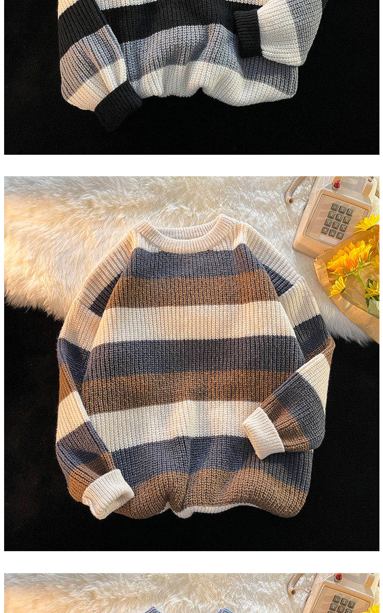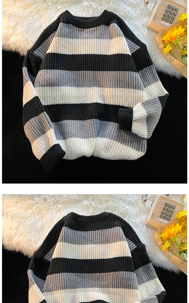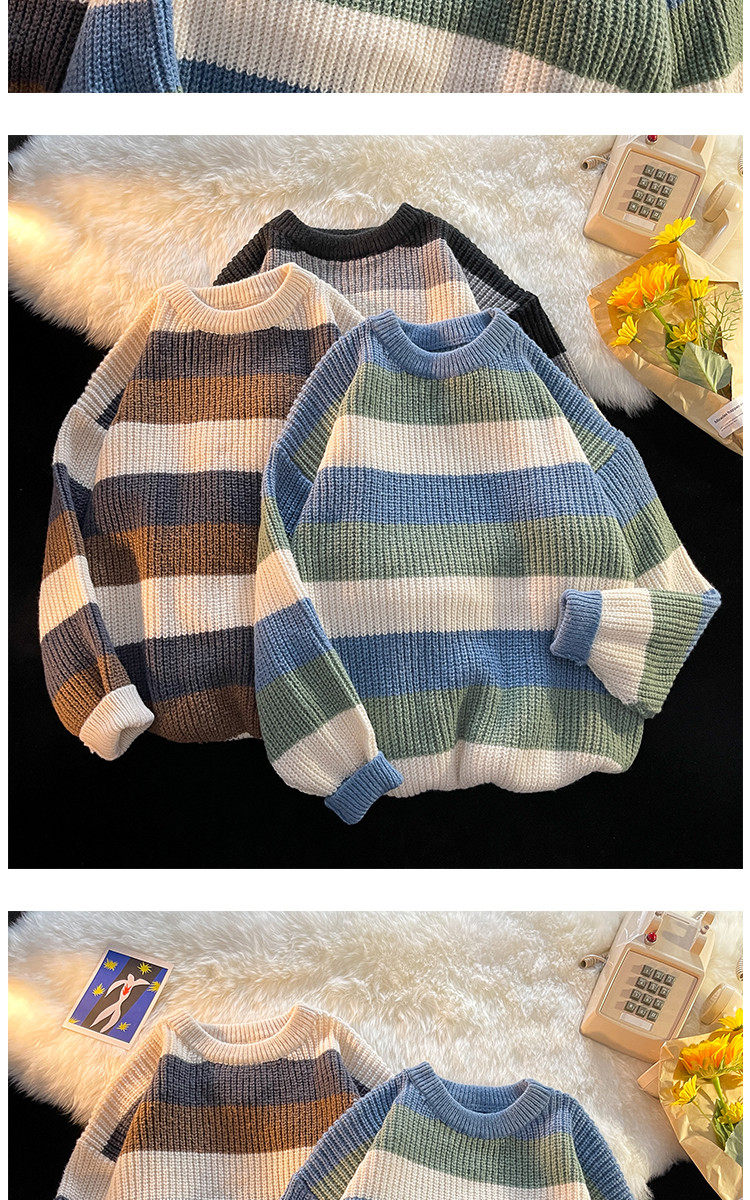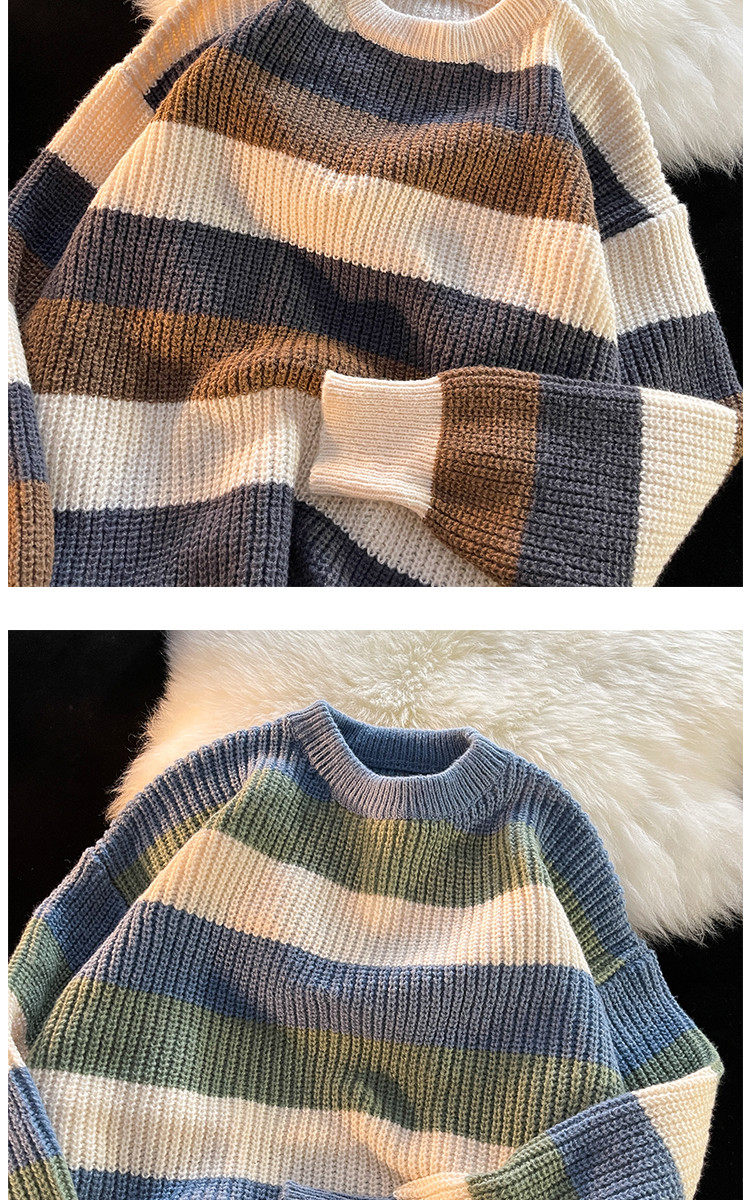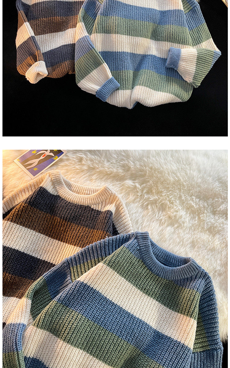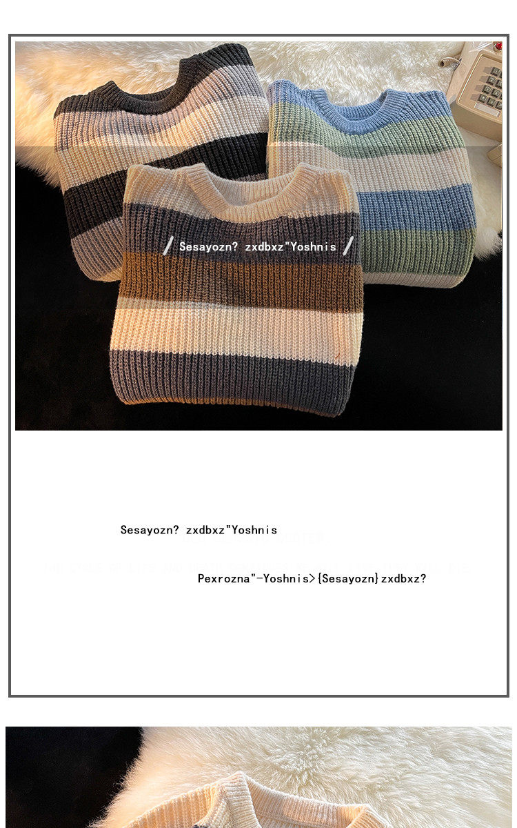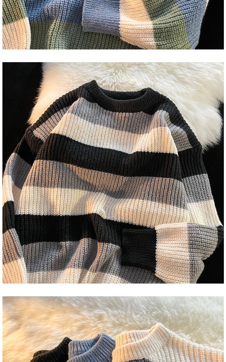 圓領毛衣男秋冬季韓版潮流寬鬆拼色毛線衣日系撞色情侶條紋針織衫