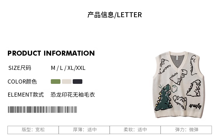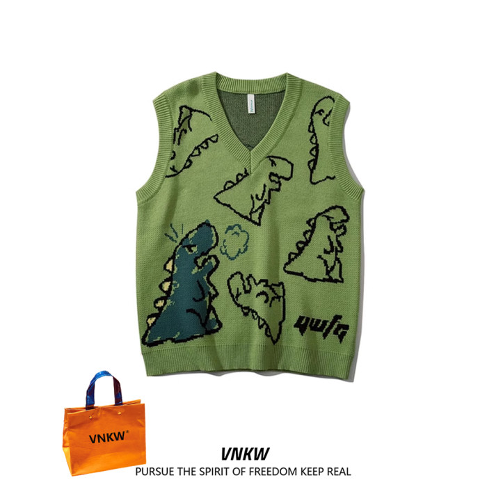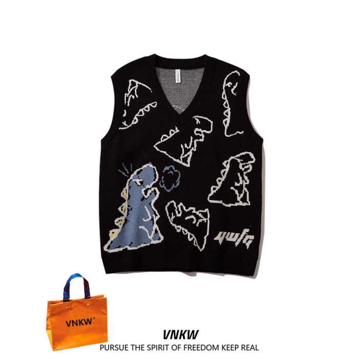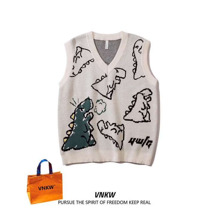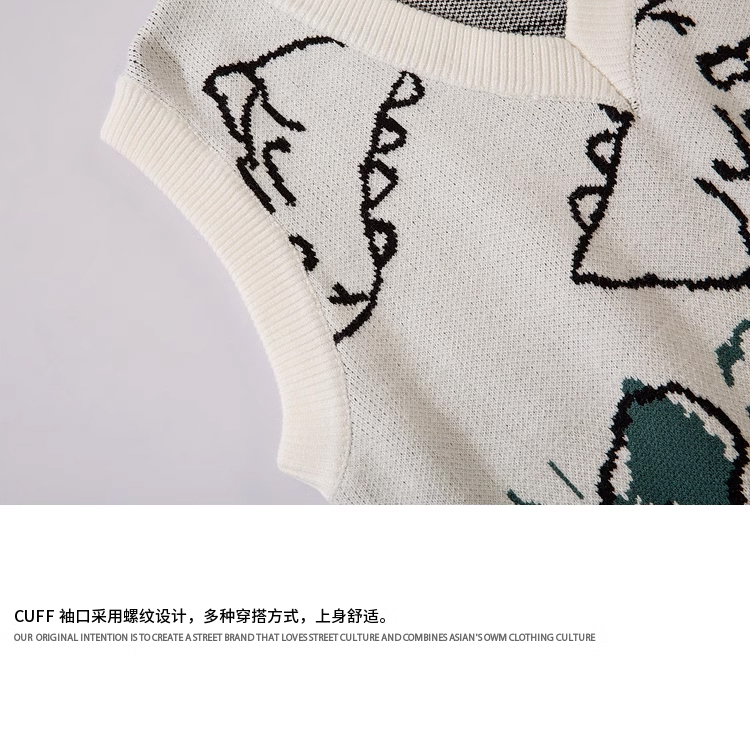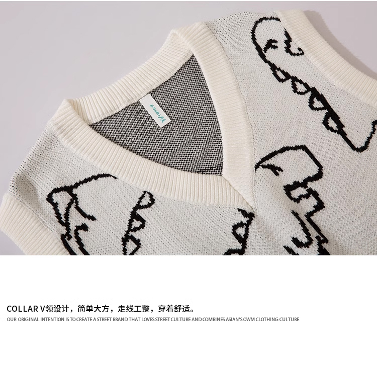 bf學院風提花針織衫背心套頭男潮牌寬松休閒百搭寬松情侶毛衣馬甲