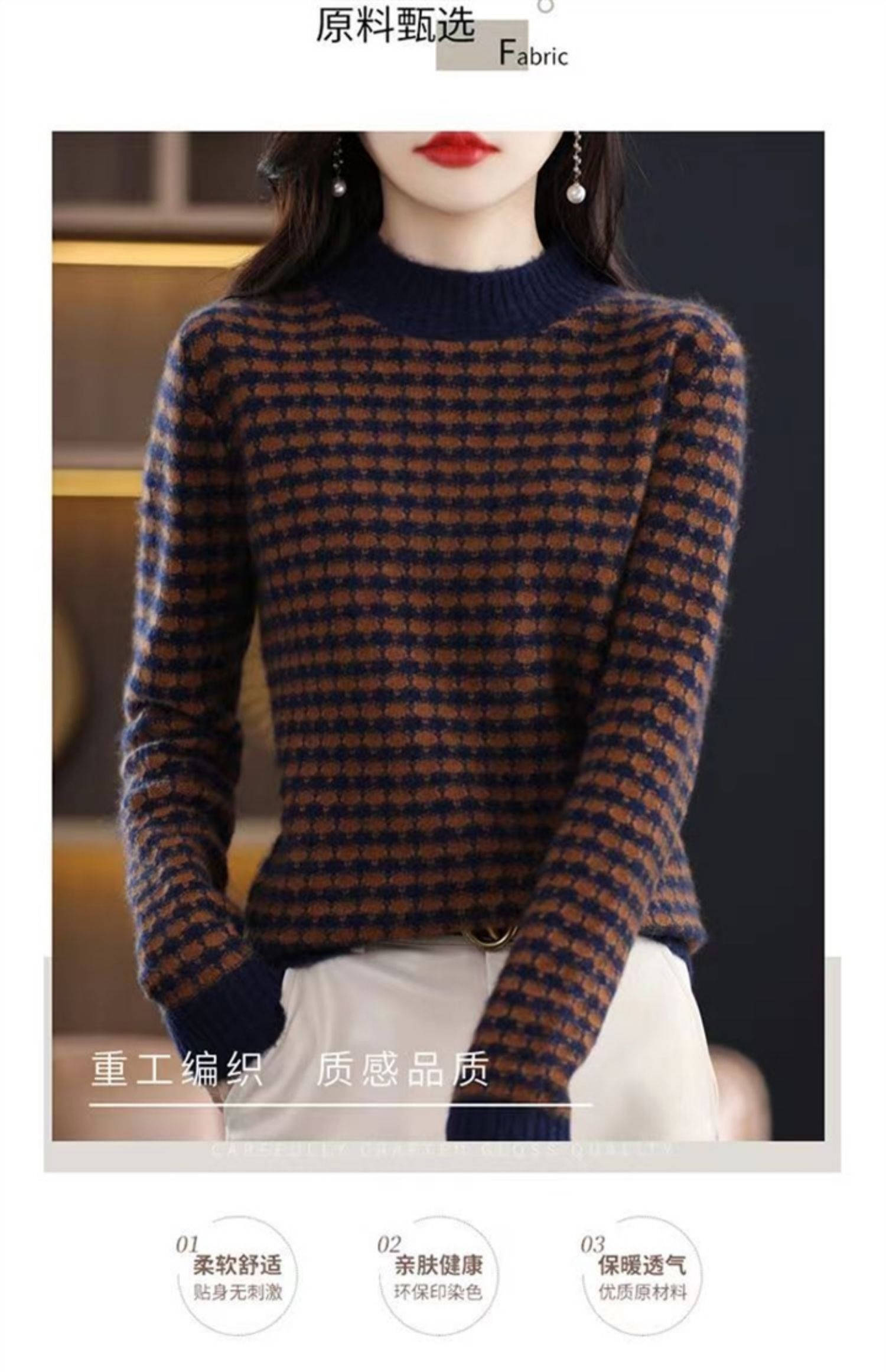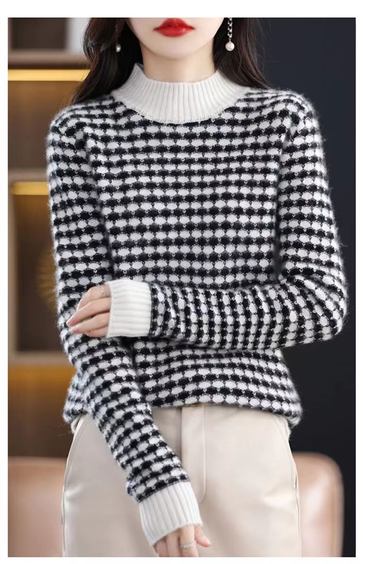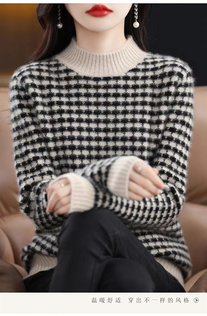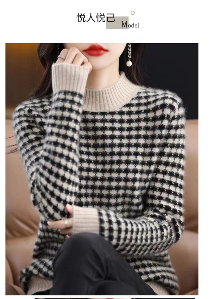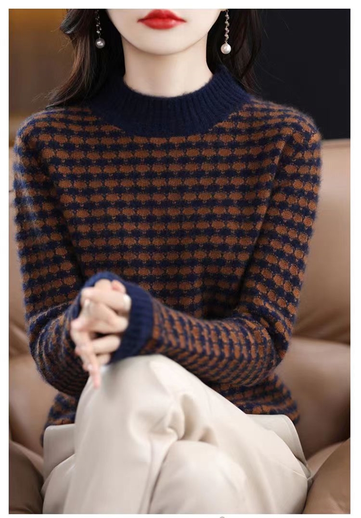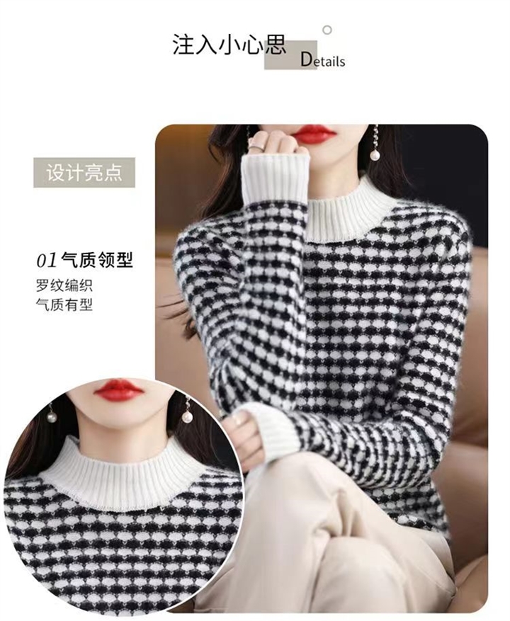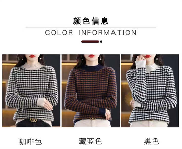 鄂爾多斯市針織衫女時尚毛衣秋冬加厚修身套頭打底衫拼色毛衣