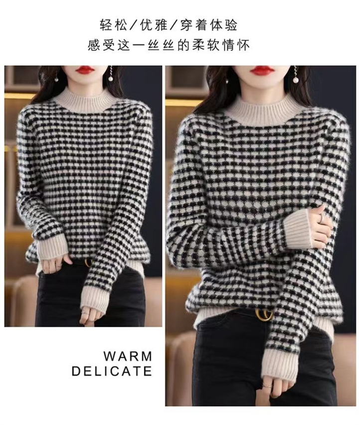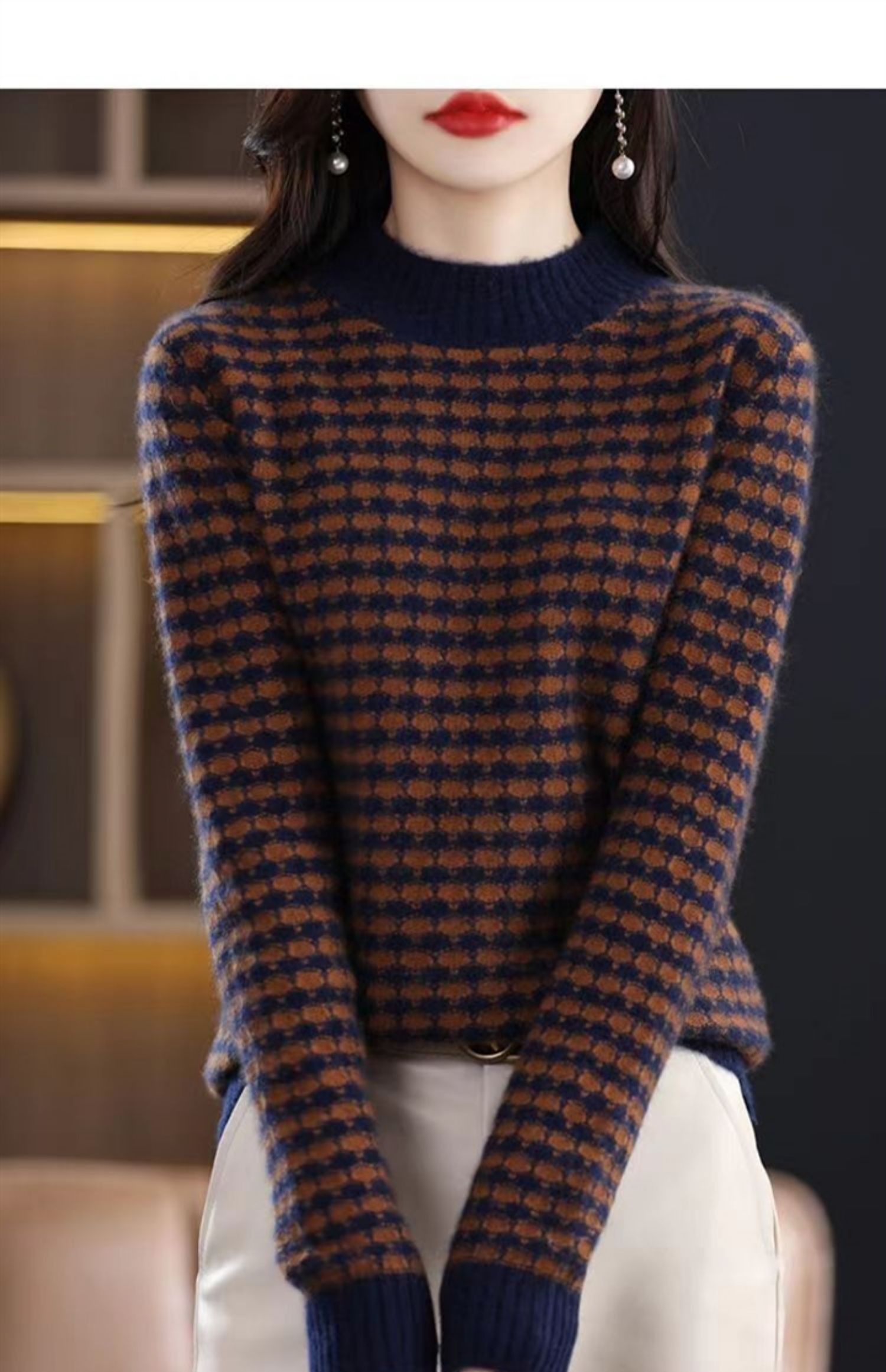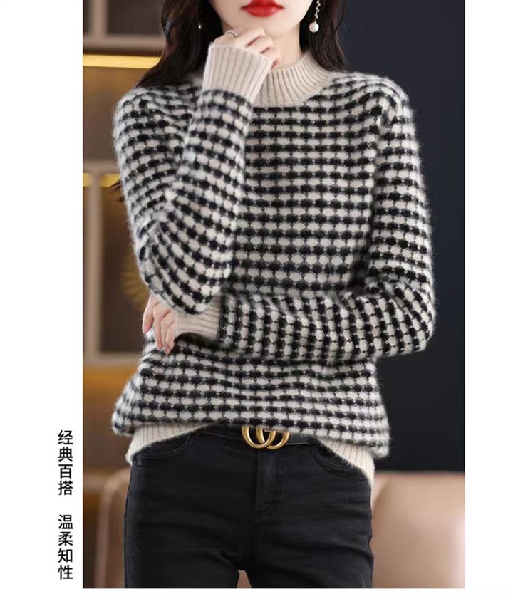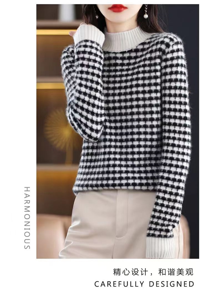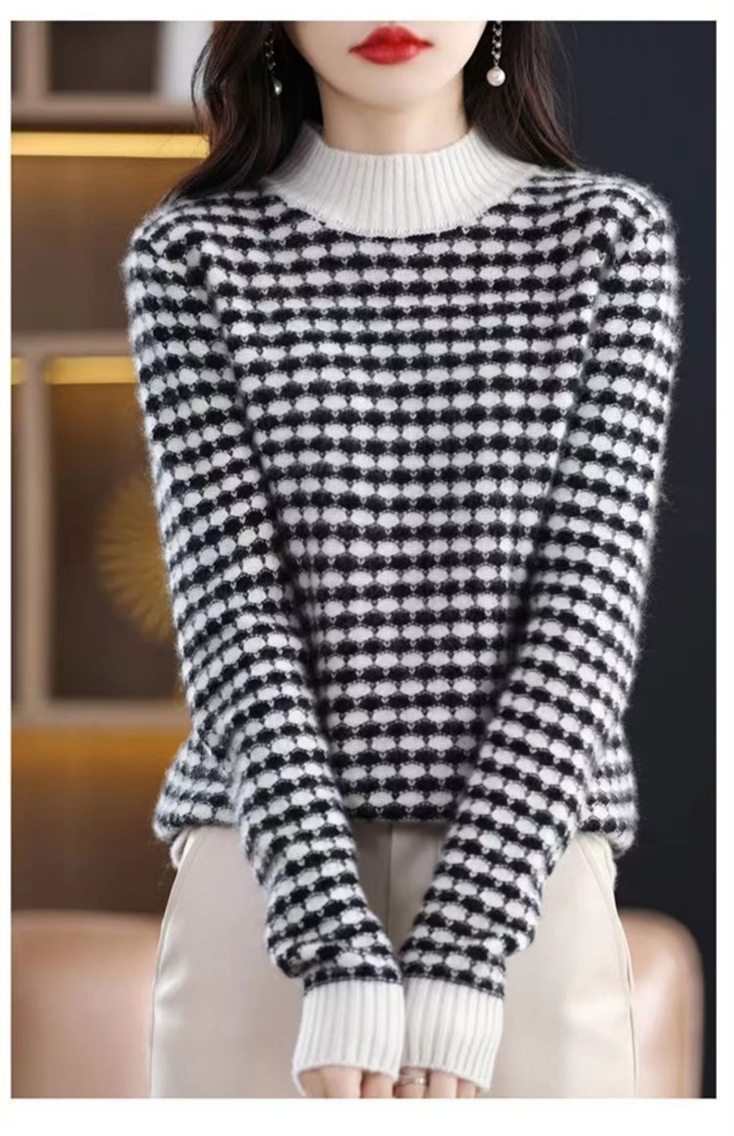 鄂爾多斯市針織衫女時尚毛衣秋冬加厚修身套頭打底衫拼色毛衣