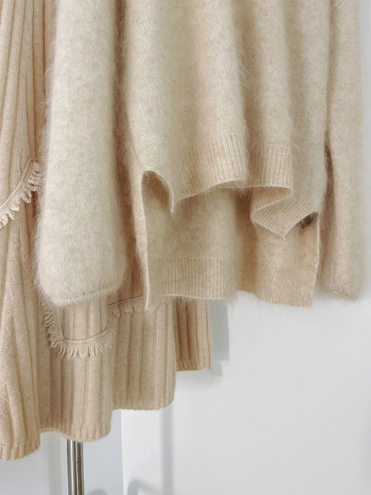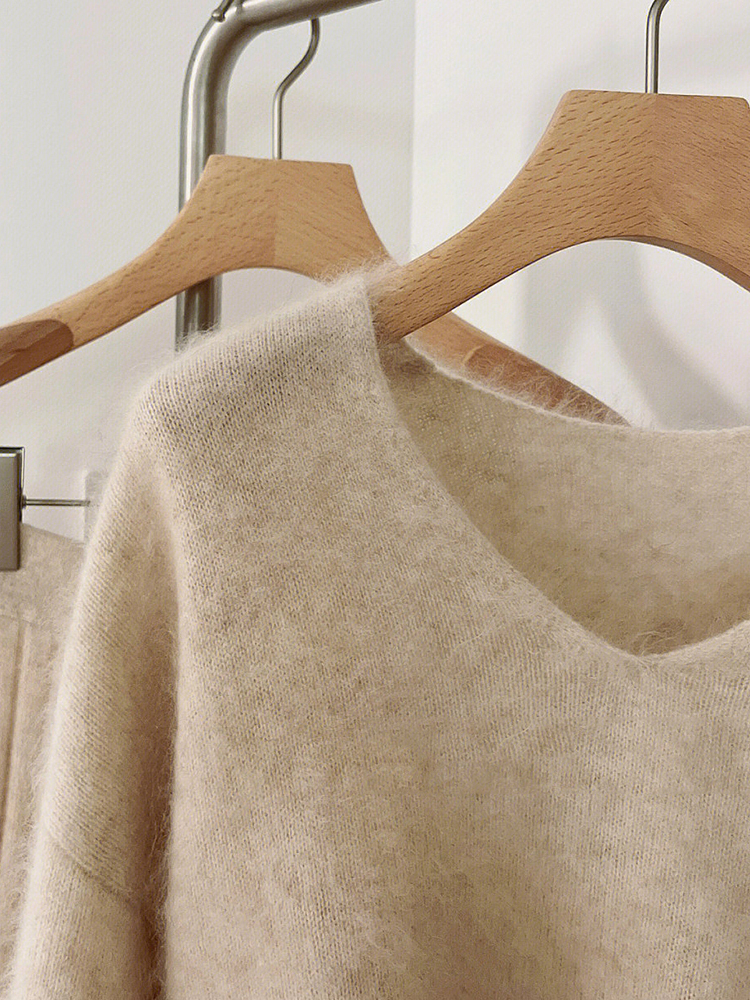 浣熊絨v領毛衣女秋冬內搭慵懶風寬松針織打底衫外穿設計感上衣厚