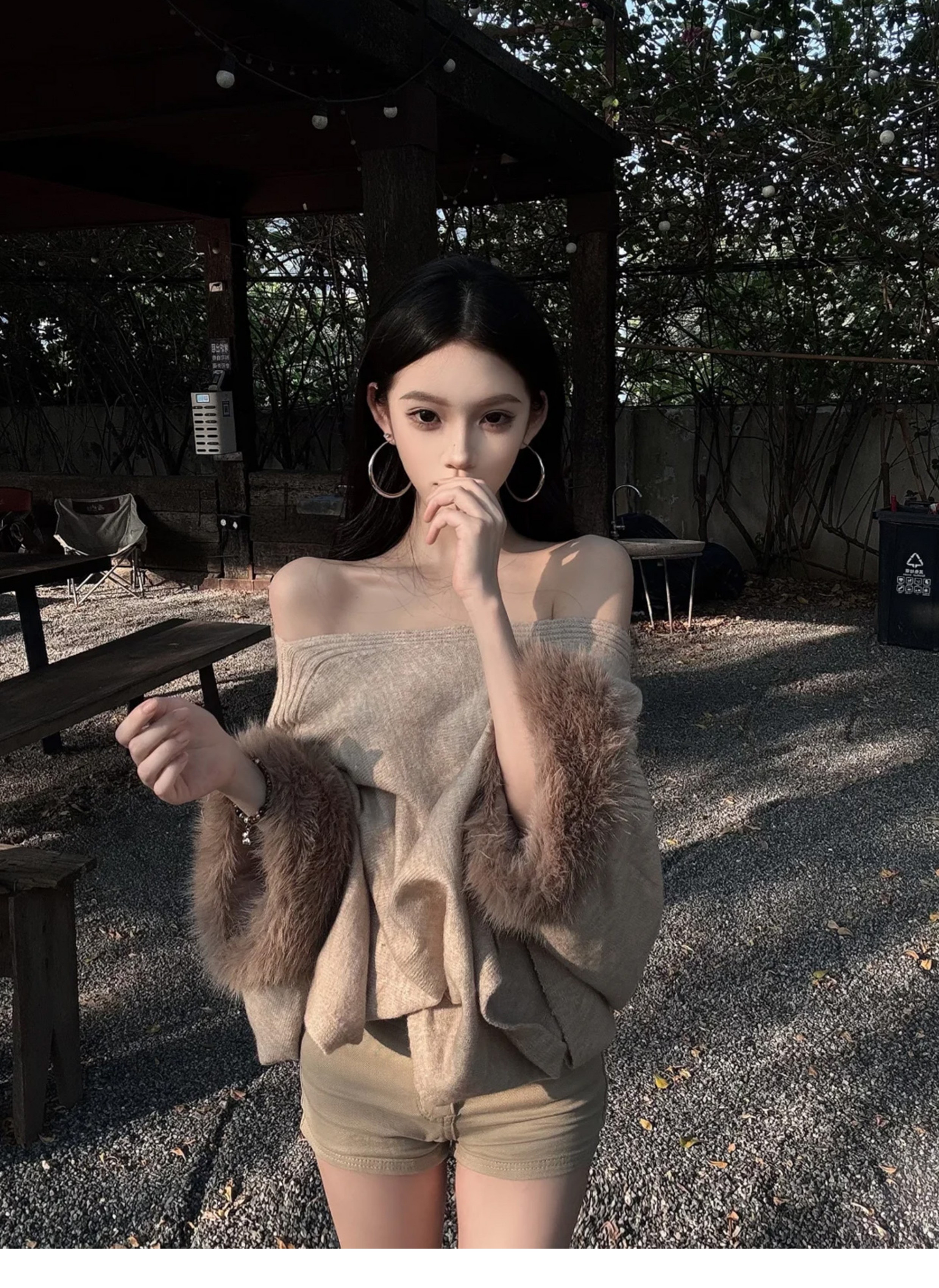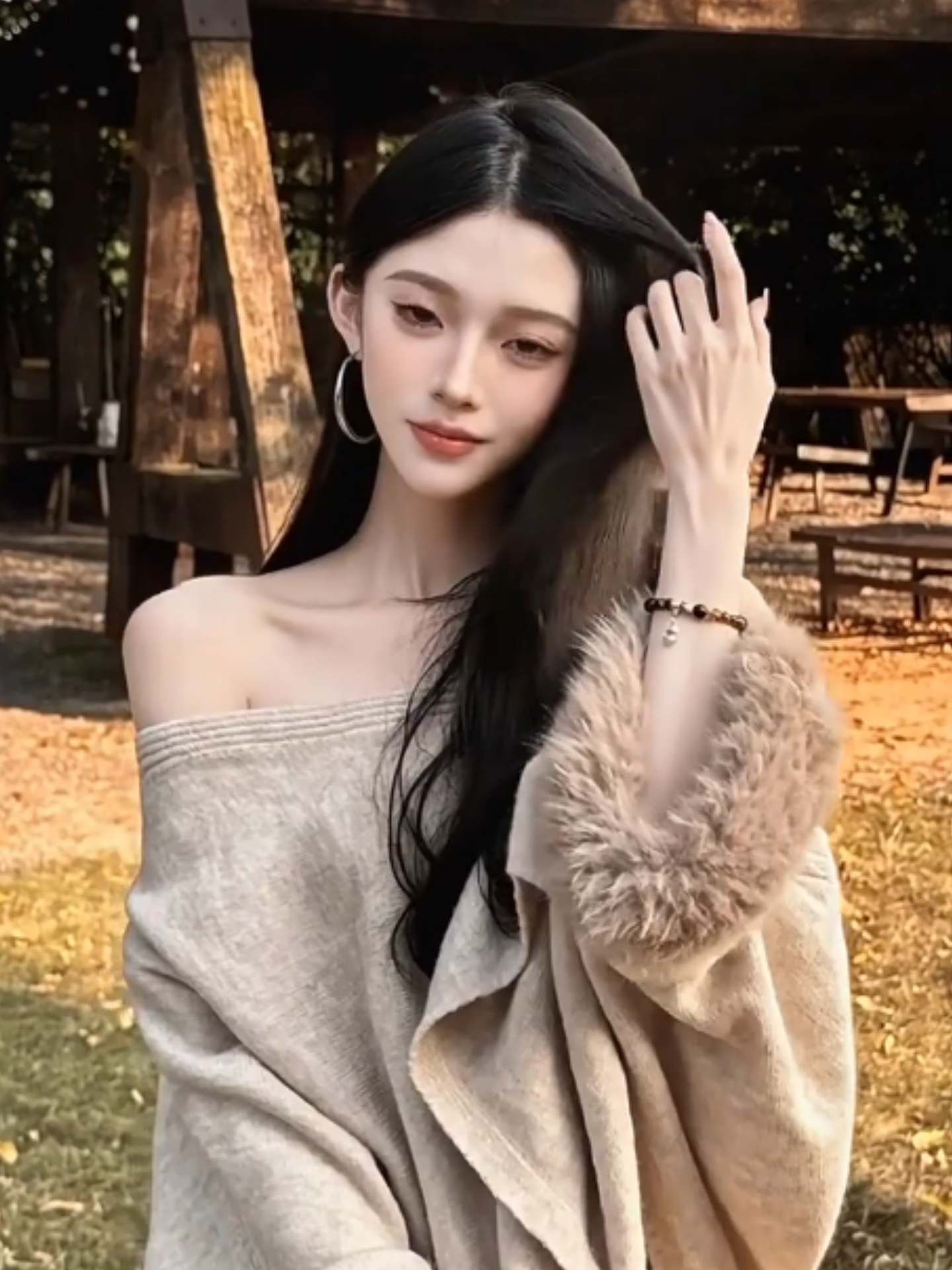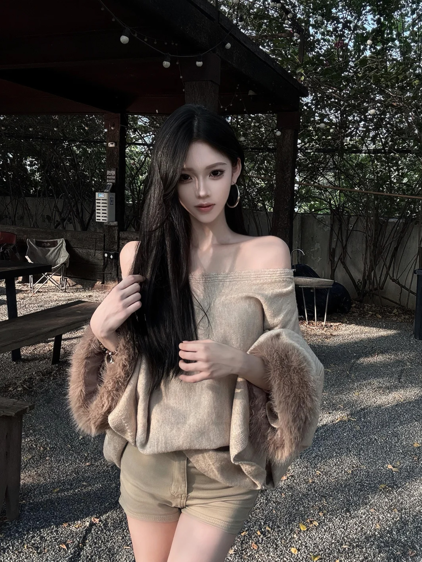 韓系一字肩套頭毛衣女秋冬慵懶氣質長袖針織衫高級感顯瘦寬松上衣