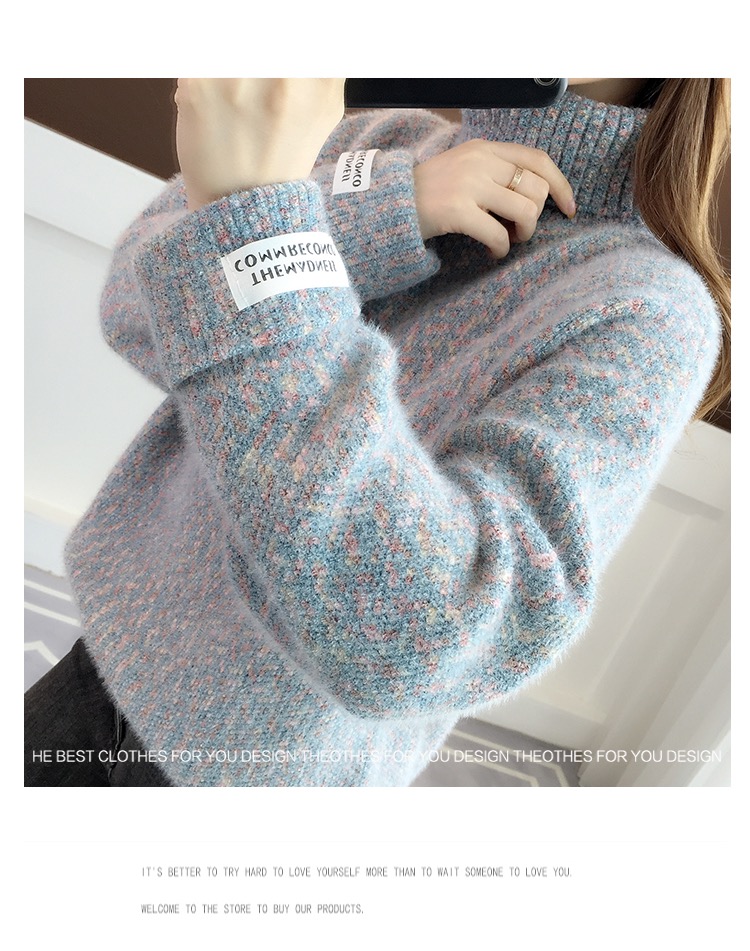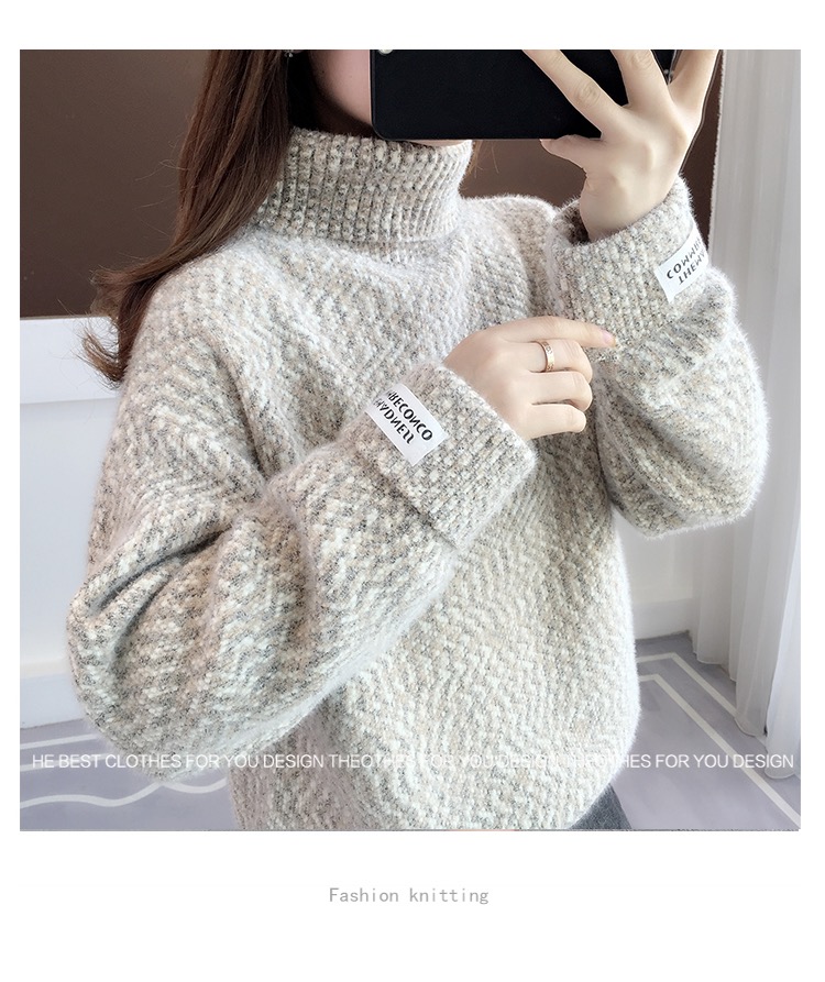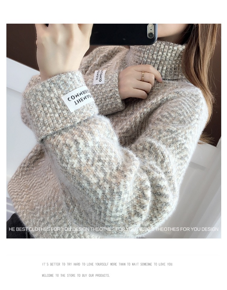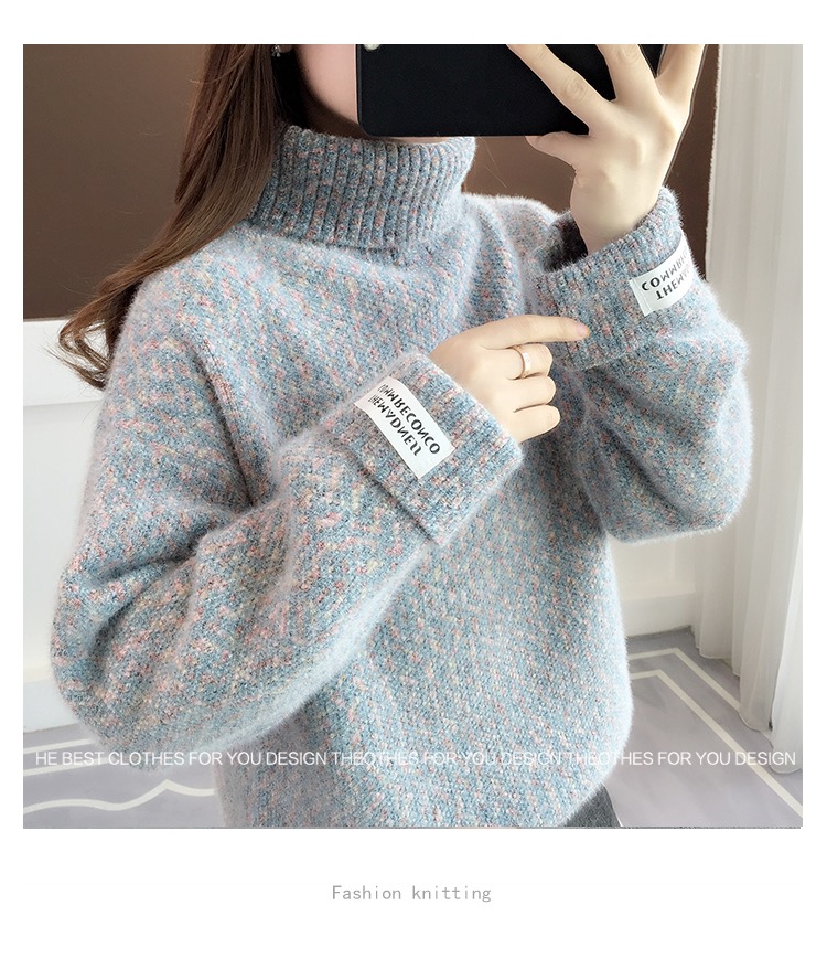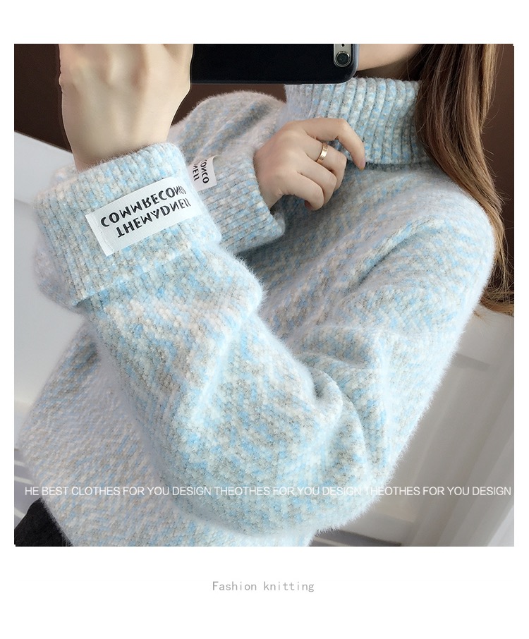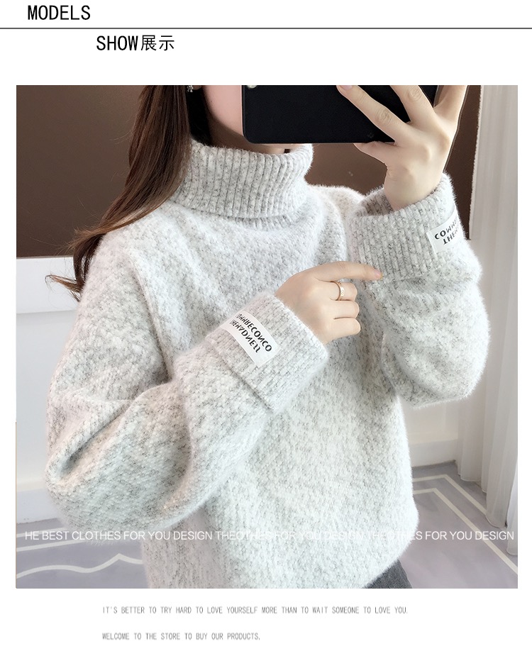 水貂絨冬季新款毛衣女高領加絨加厚百搭學生大童雪尼爾打底針織衫
