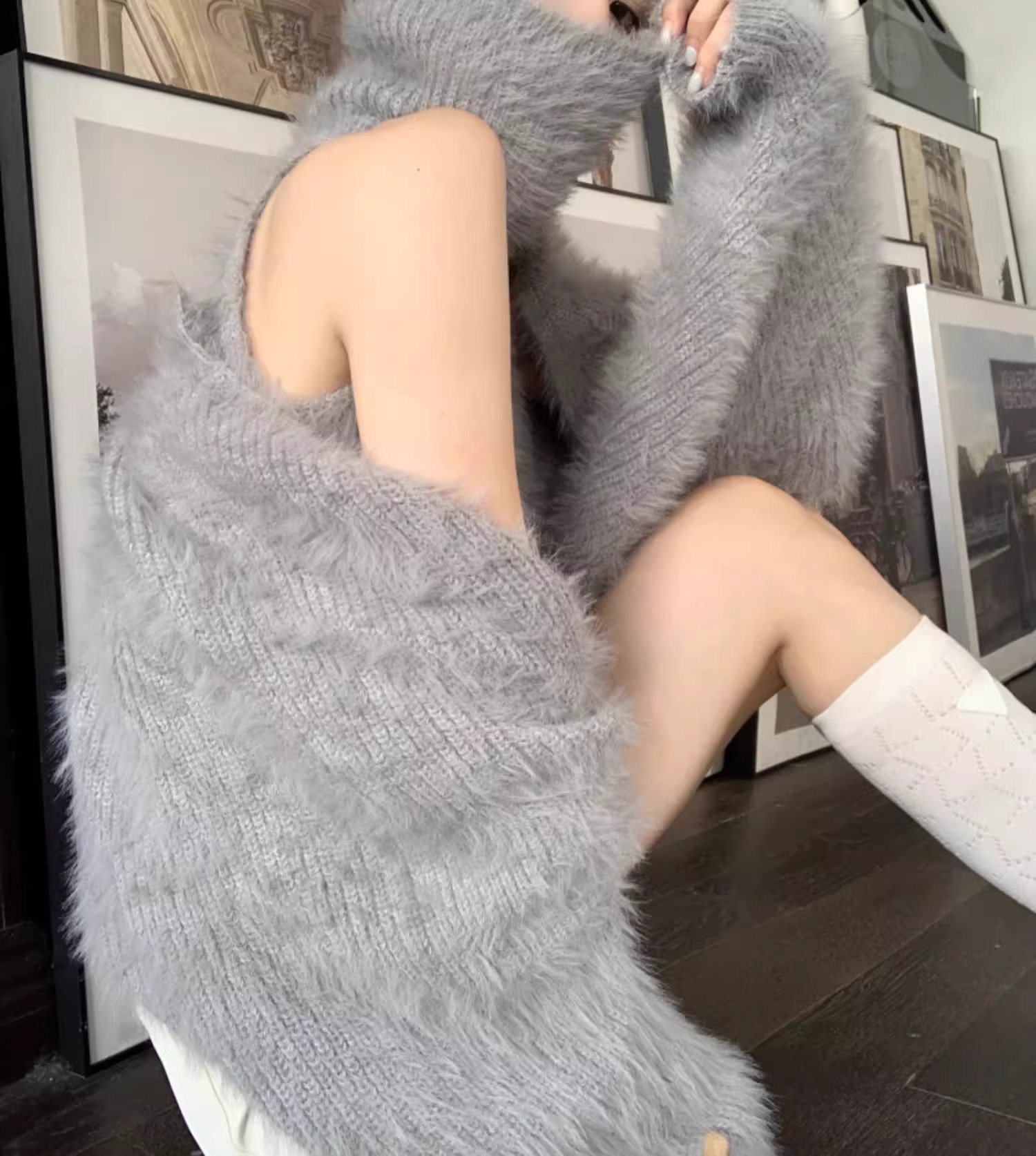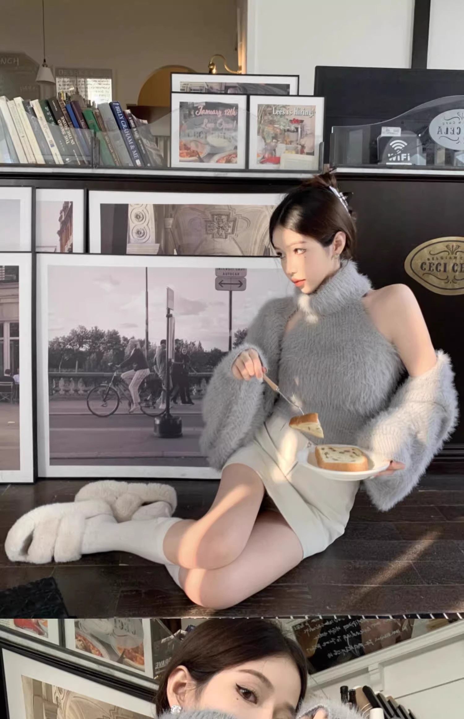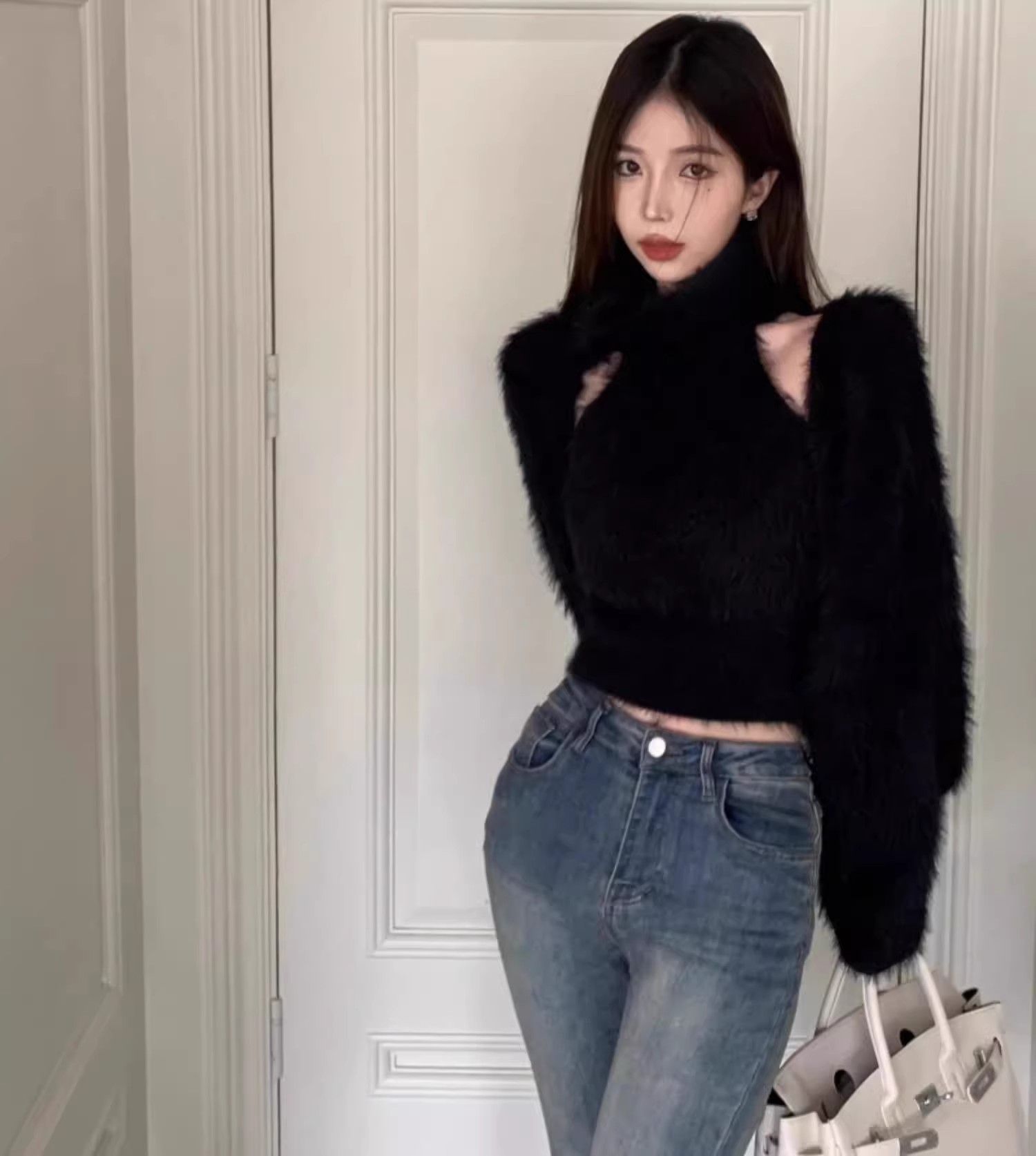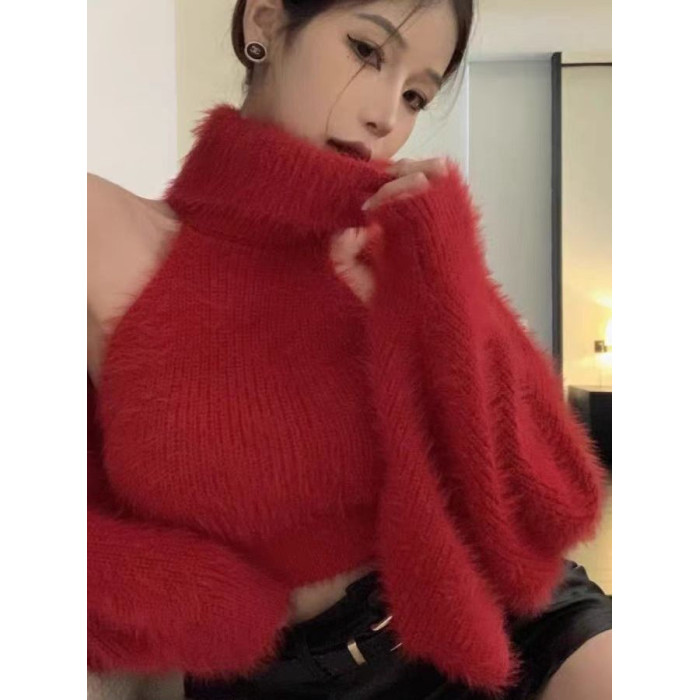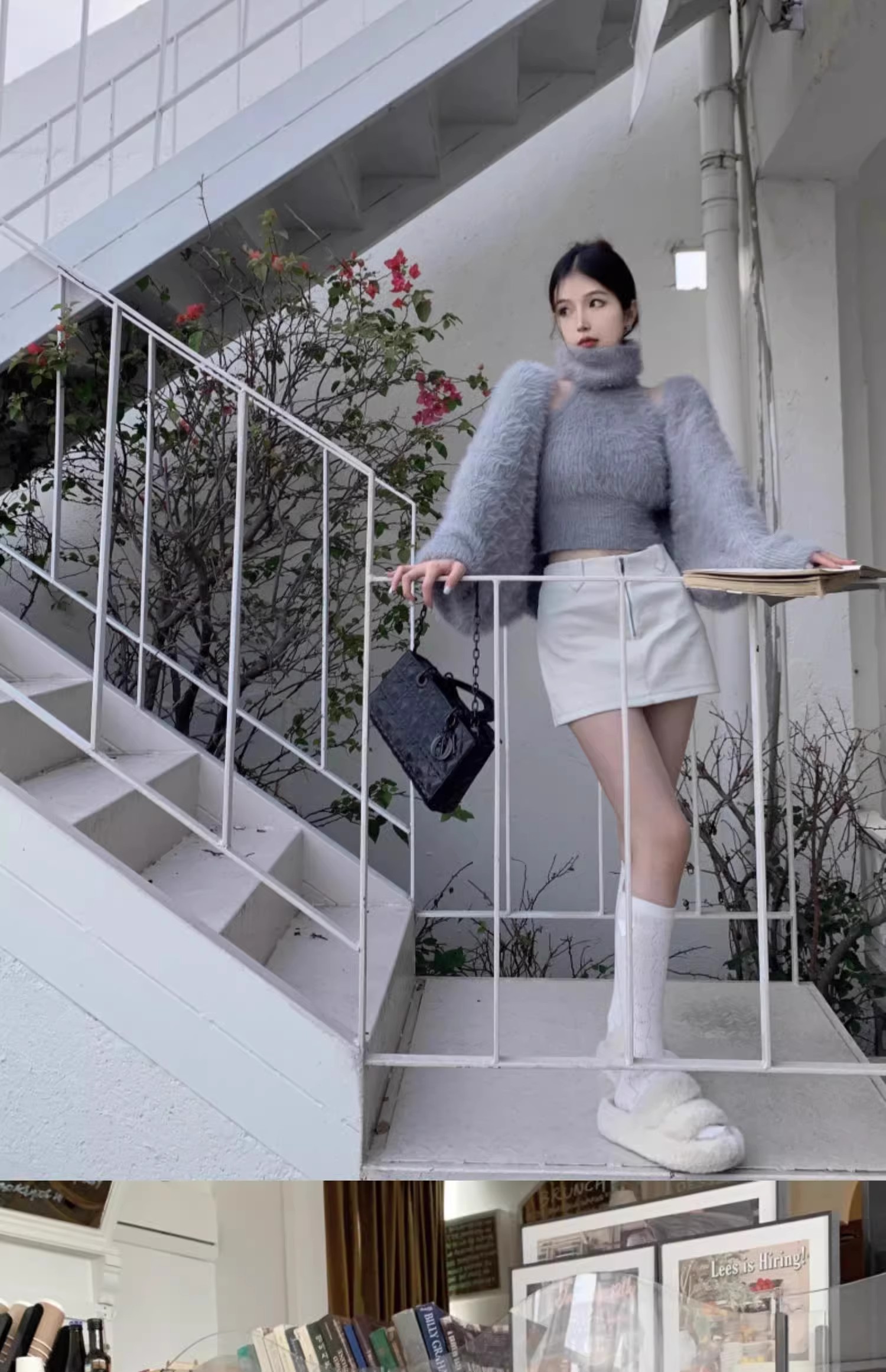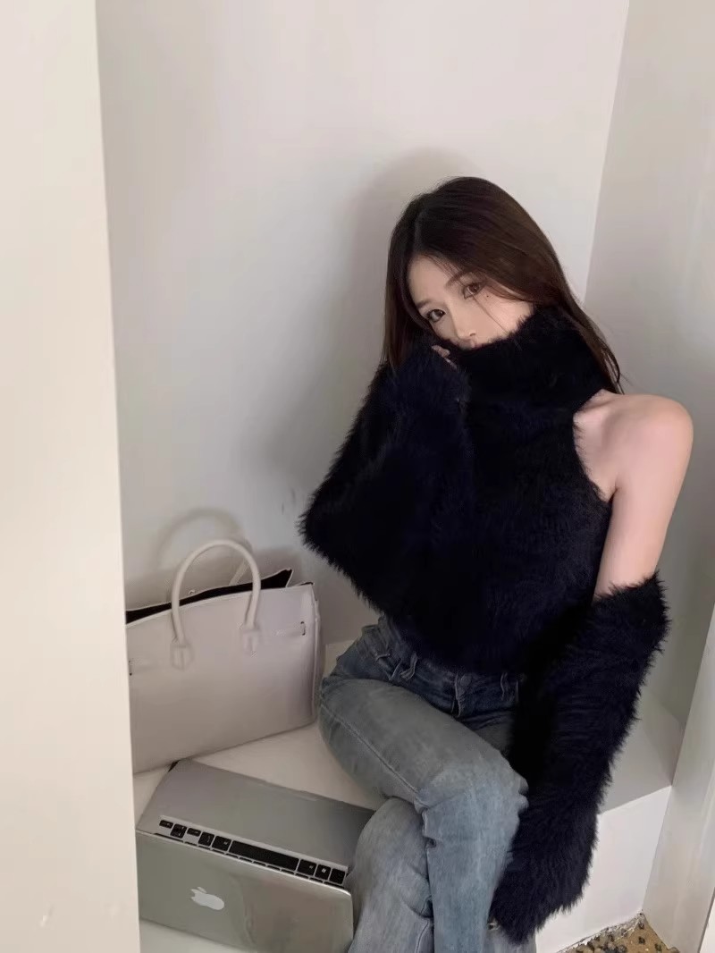 高級感毛衣套裝女秋冬純欲辣妹性感掛脖高領針織打底衫兩件套上衣