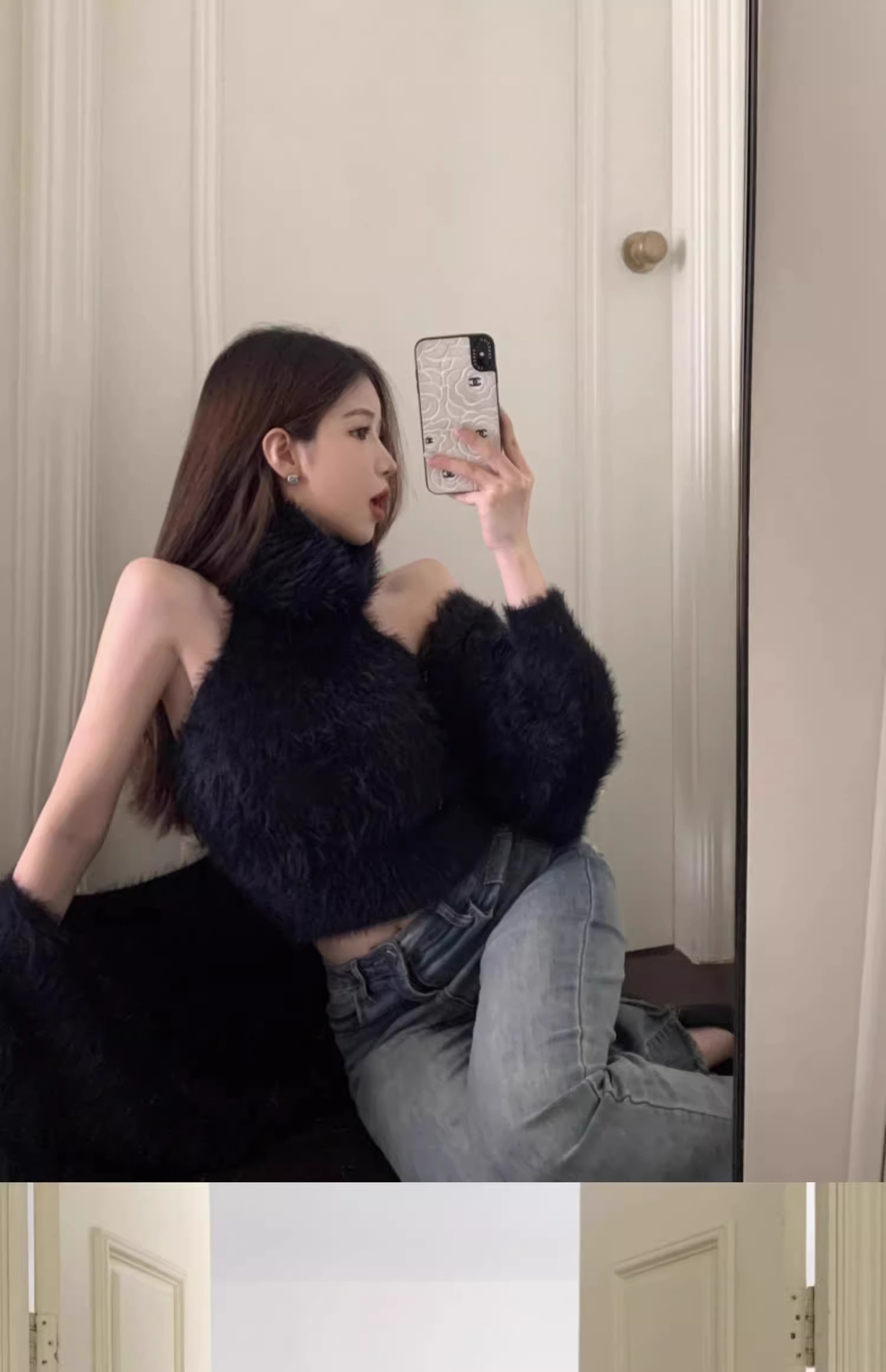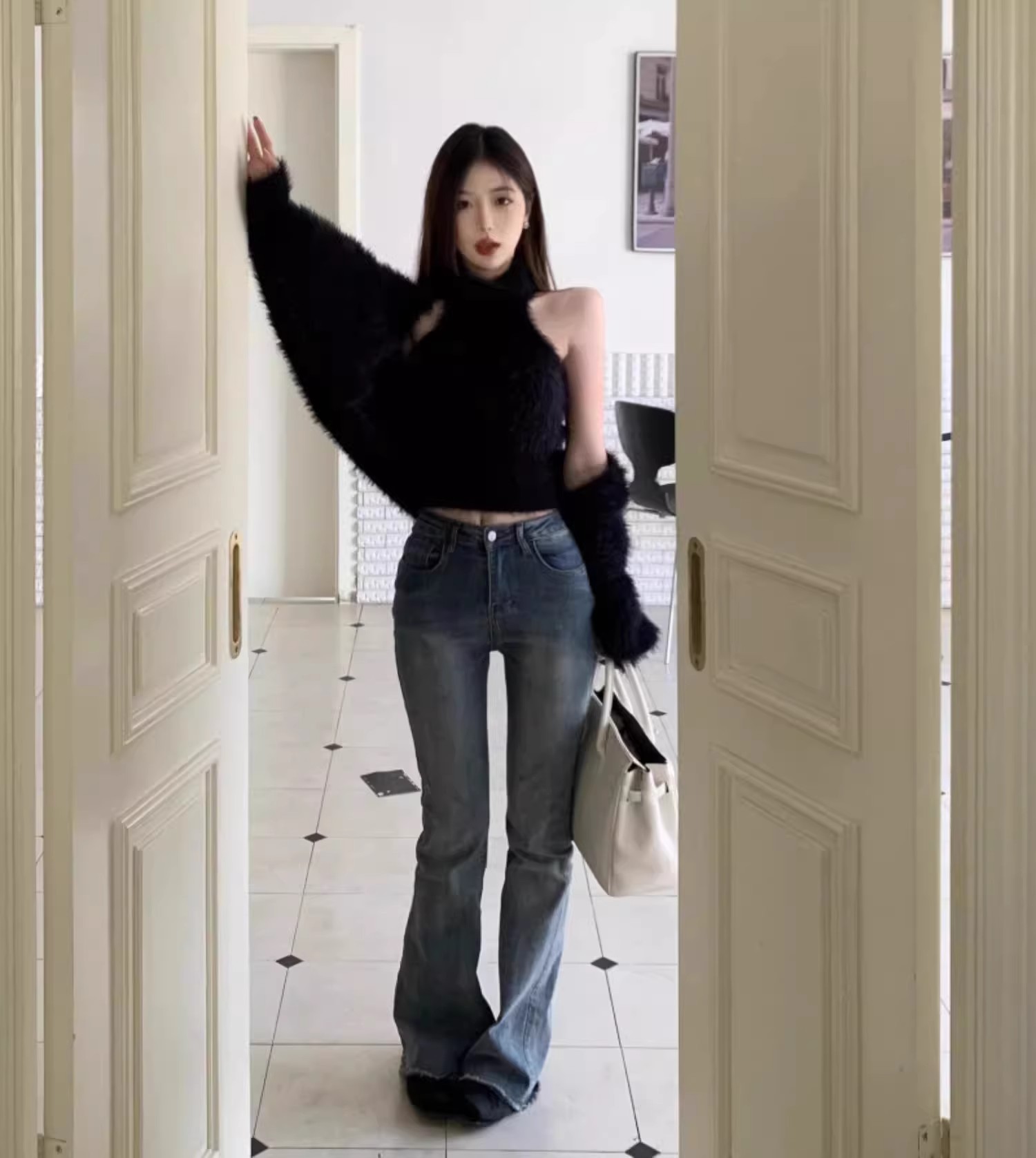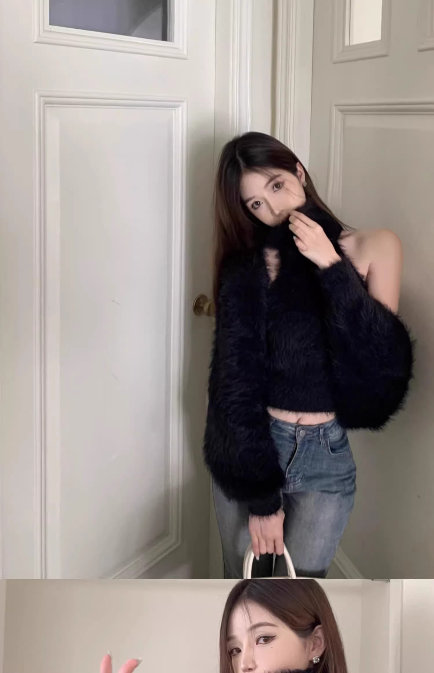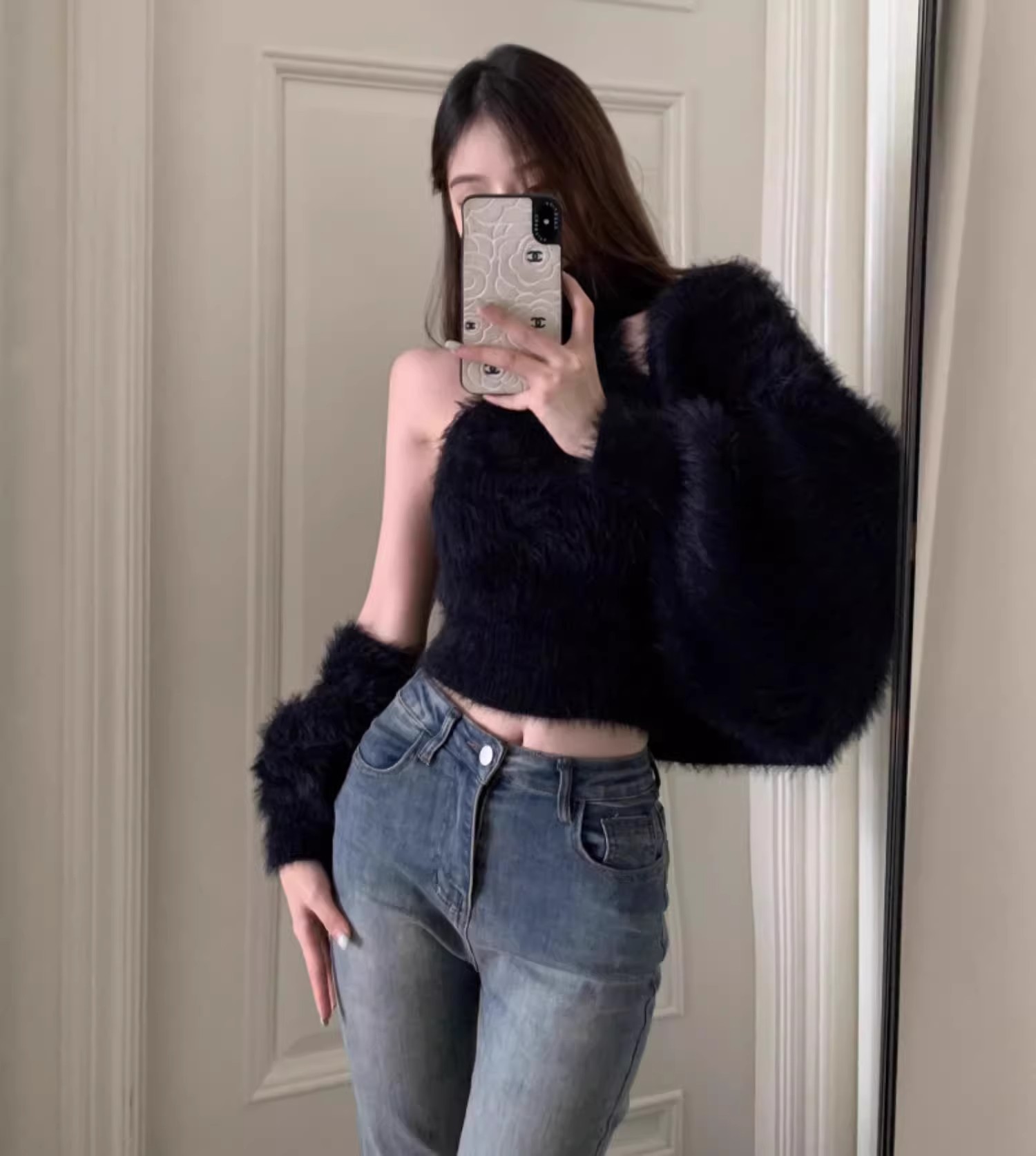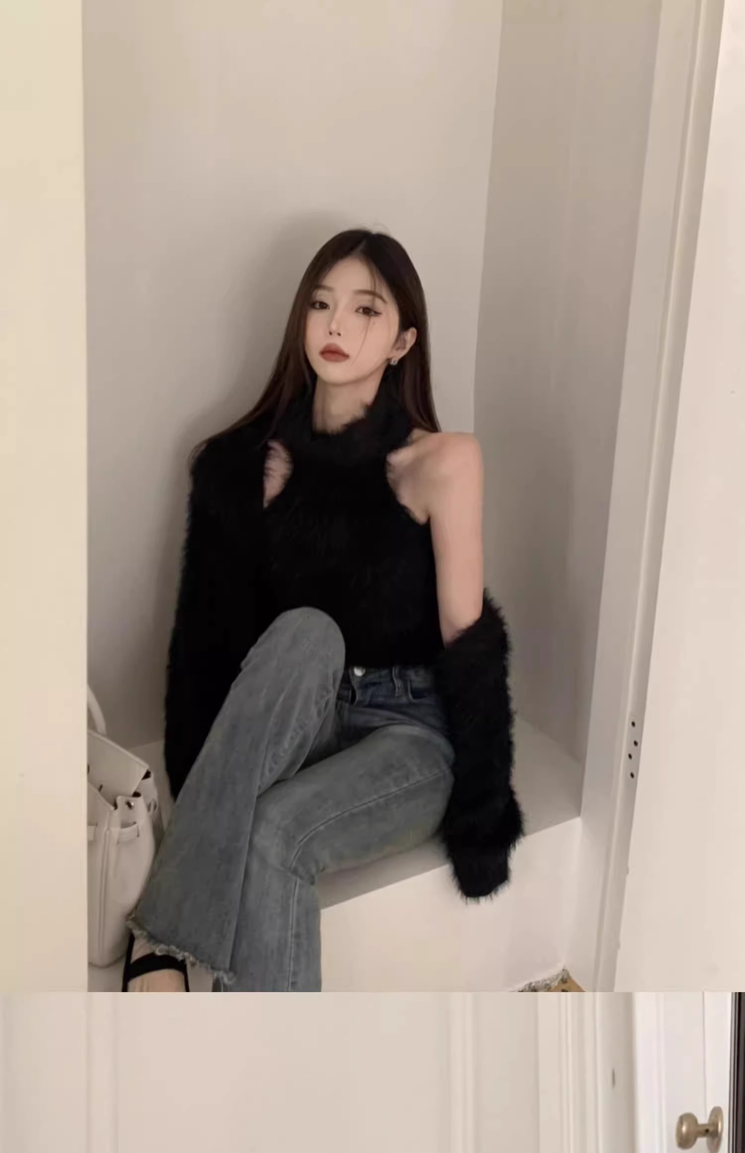 高級感毛衣套裝女秋冬純欲辣妹性感掛脖高領針織打底衫兩件套上衣