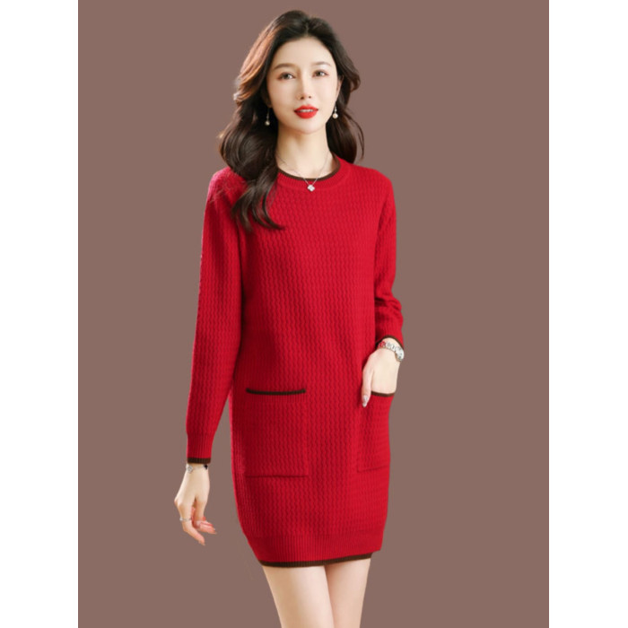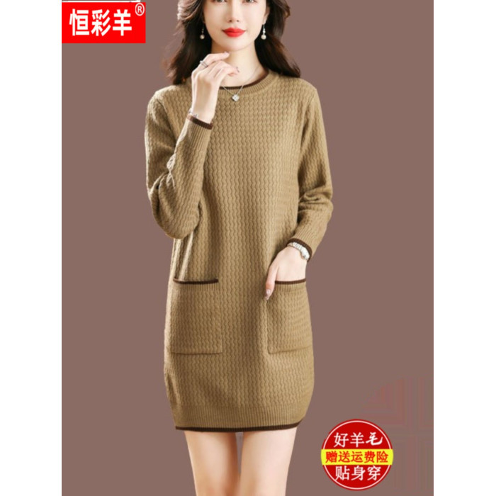 恒彩羊新款2024新款毛衣女秋冬中長款大碼顯瘦洋氣針織羊毛打底衫