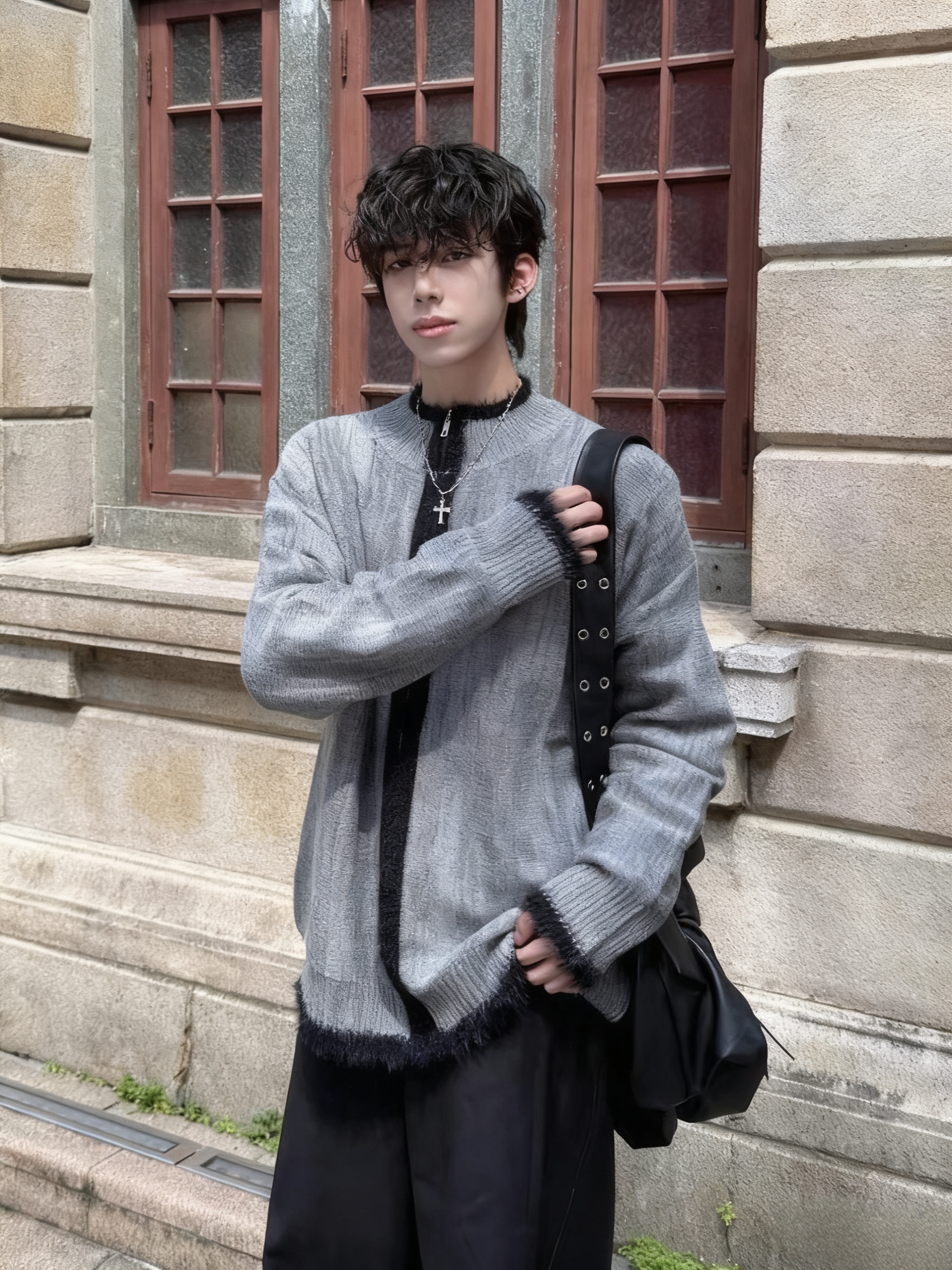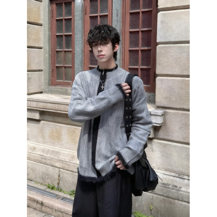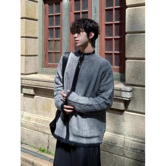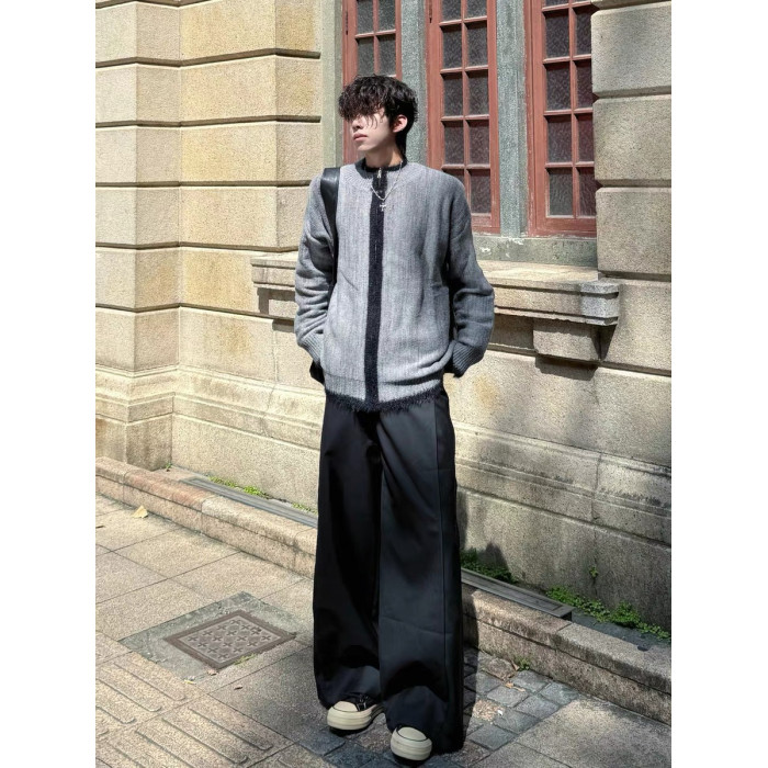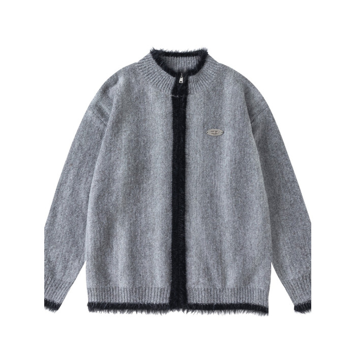 美式復古拼色拉鍊開衫毛衣男女秋冬慵懶風顯瘦寬松針織衫外套上衣
