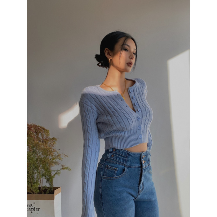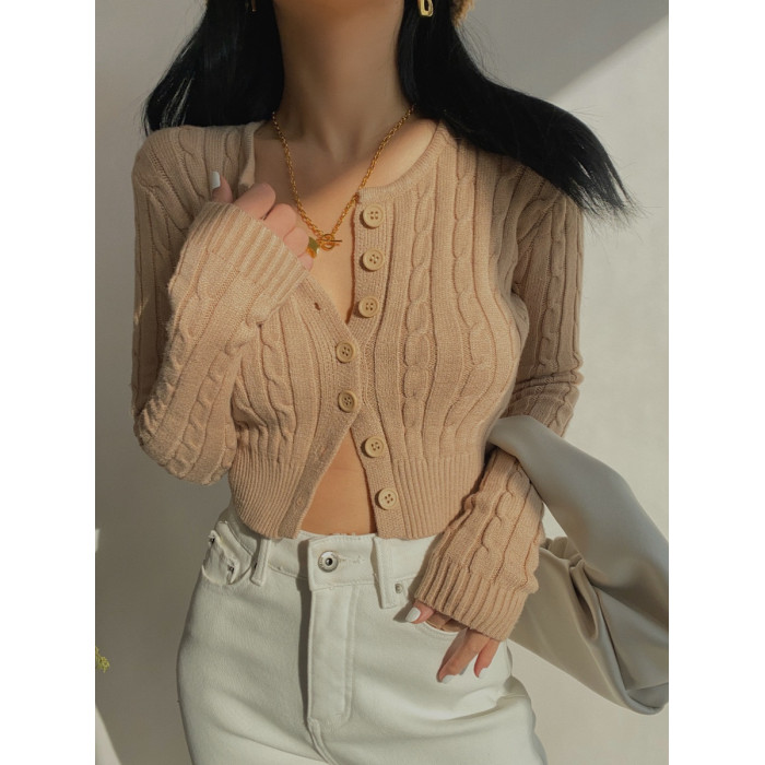 歐美復古高腰短款長袖毛衣小開衫性感露臍針織上衣女顯瘦顯比例