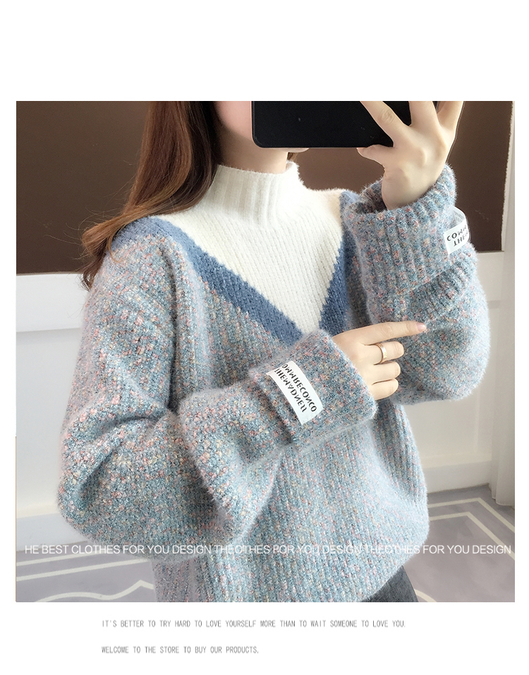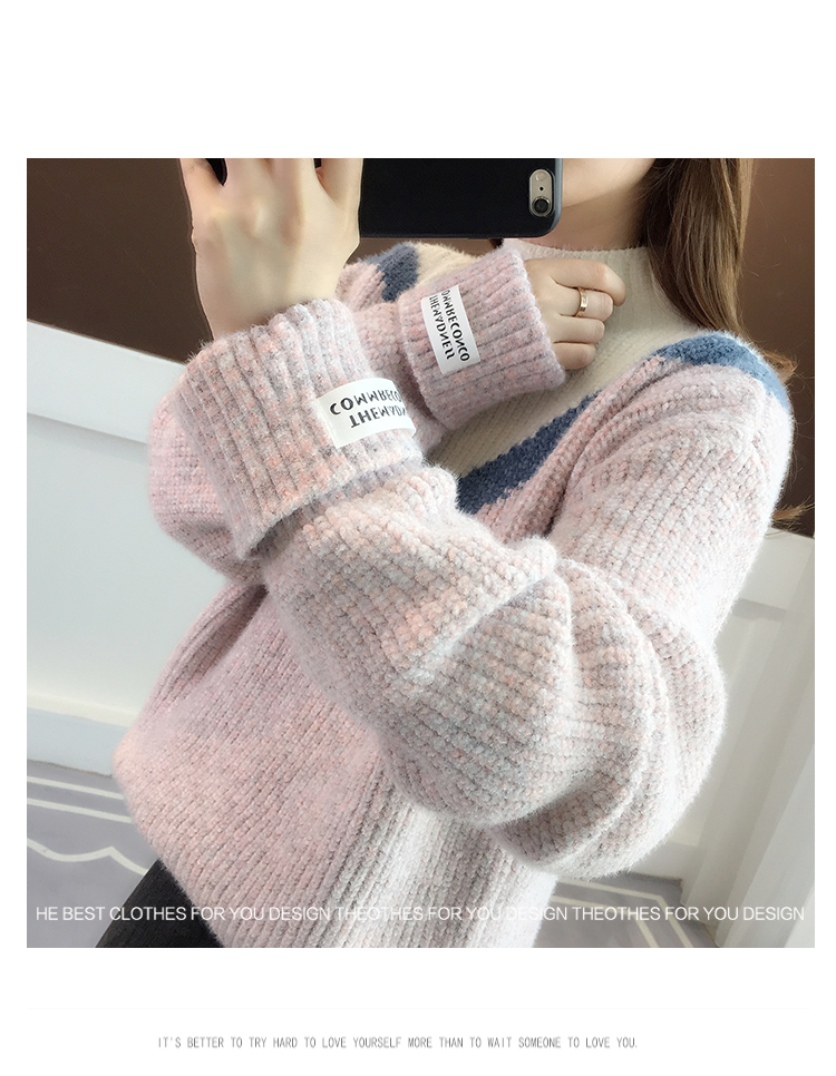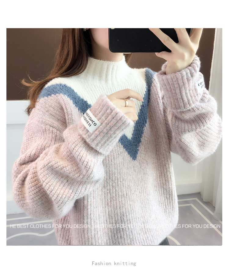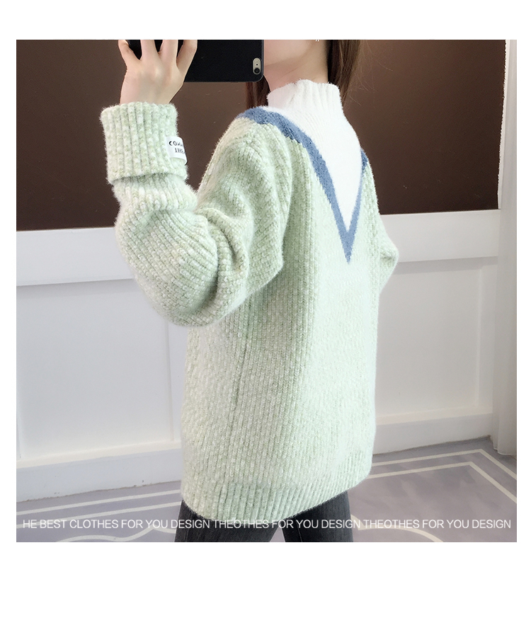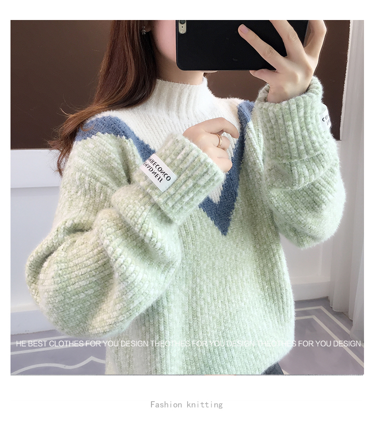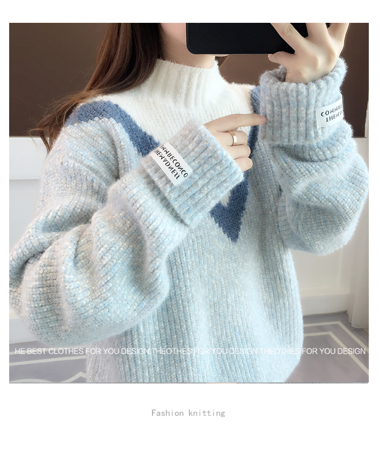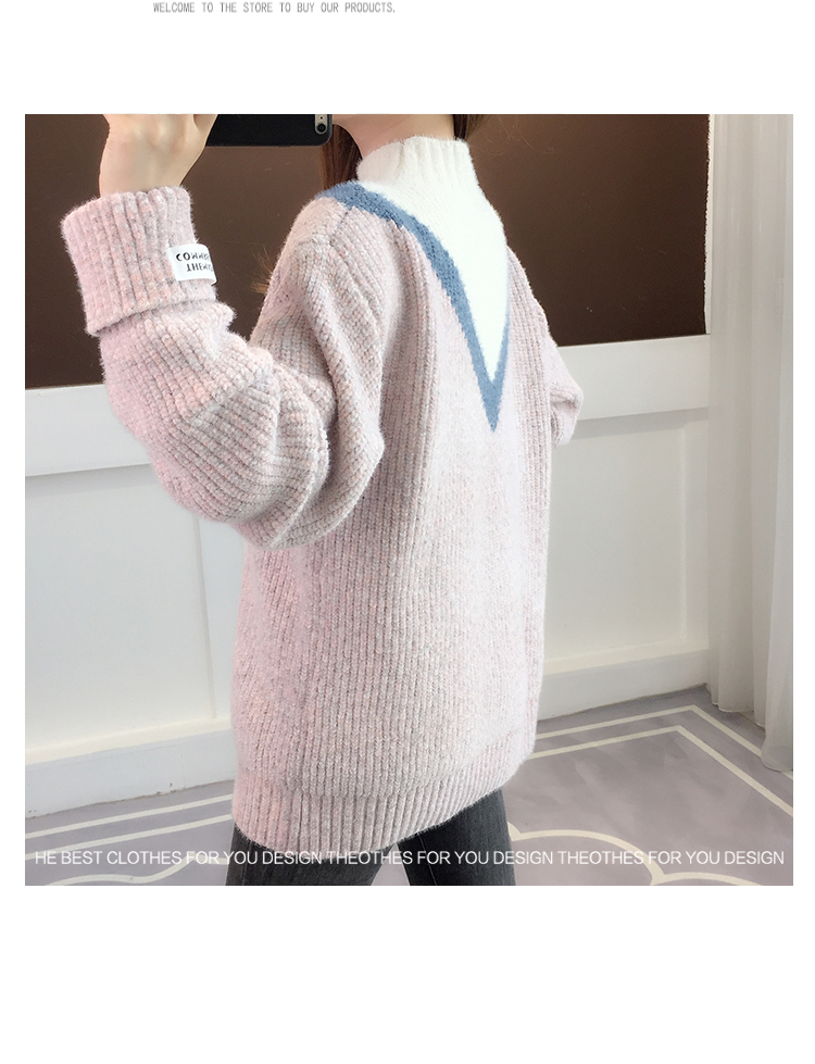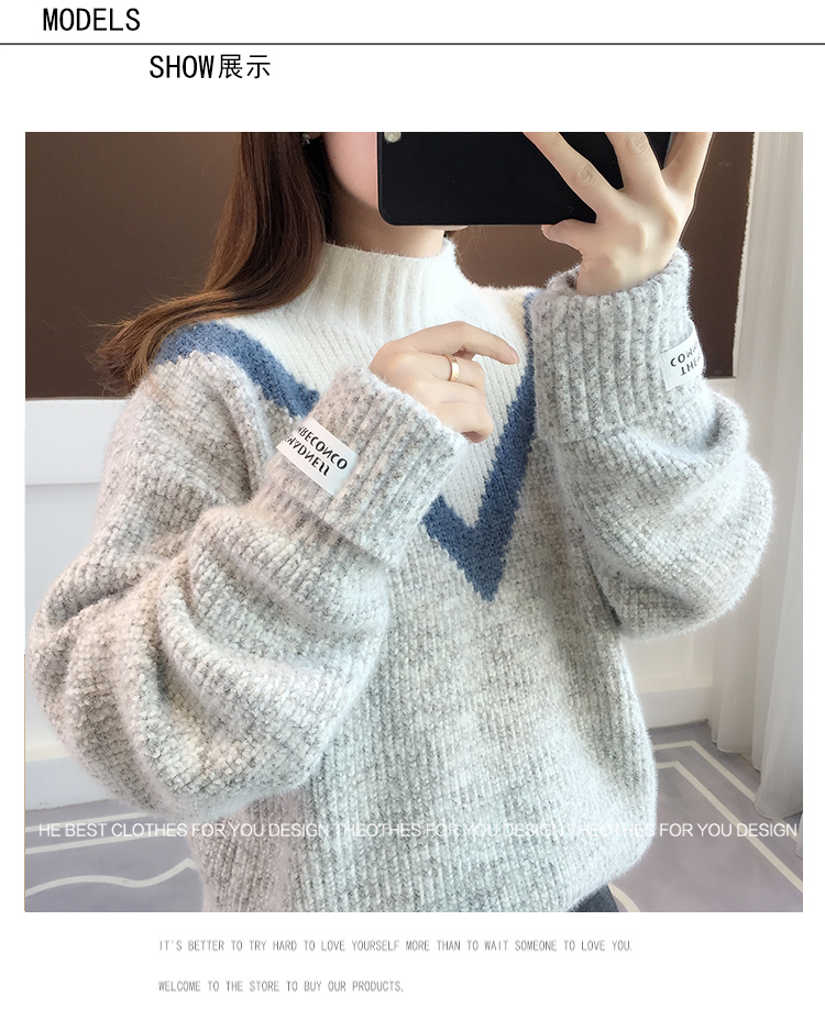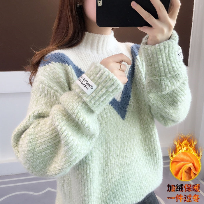 半高領毛衣女秋冬加絨2025新款套頭寬松韓版慵懶風加厚針織衫上衣