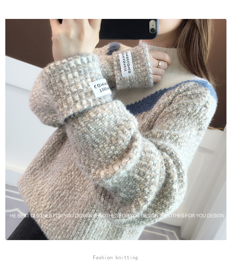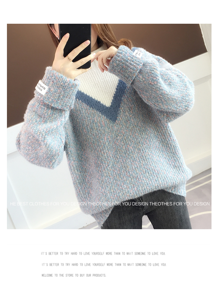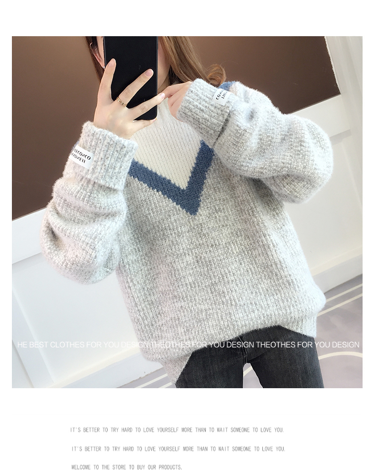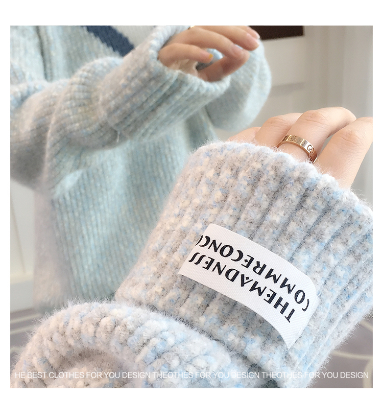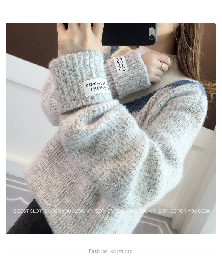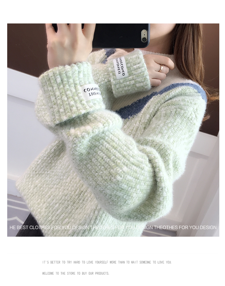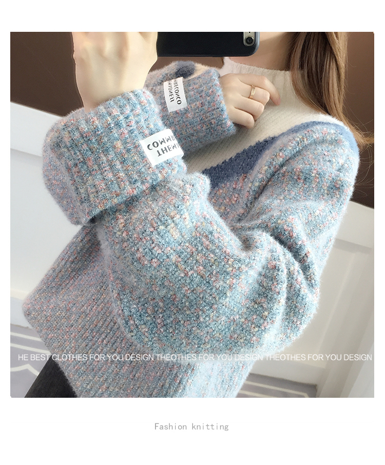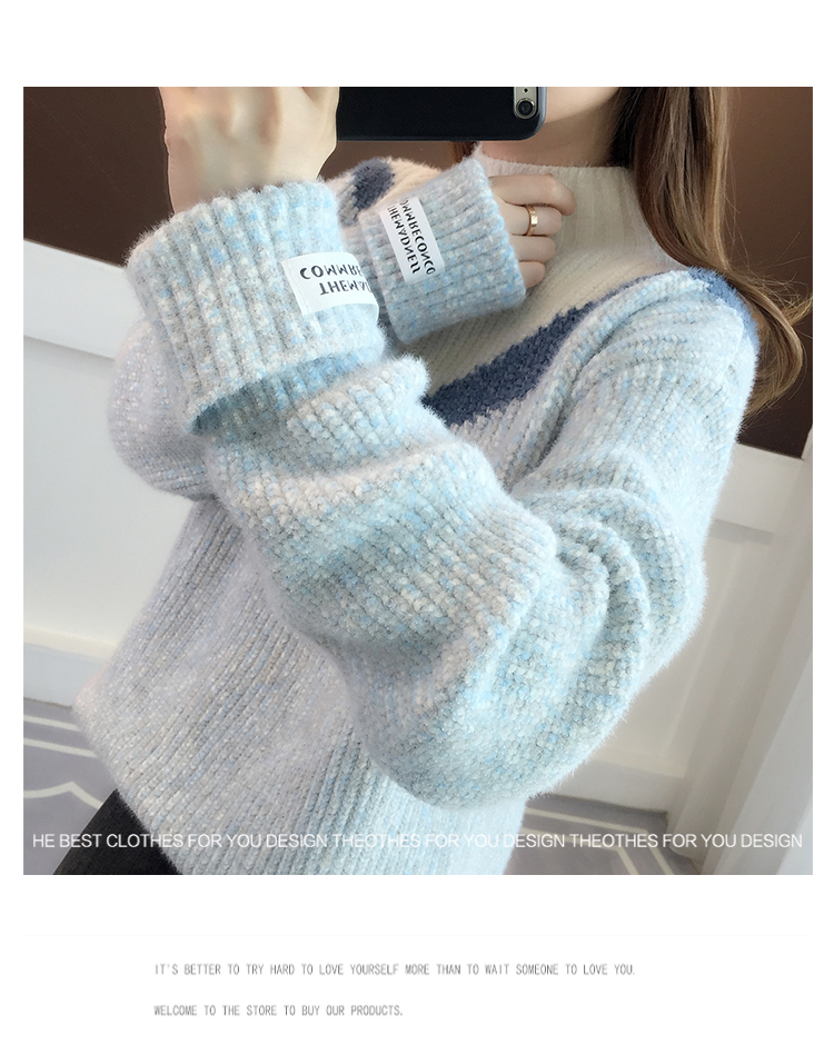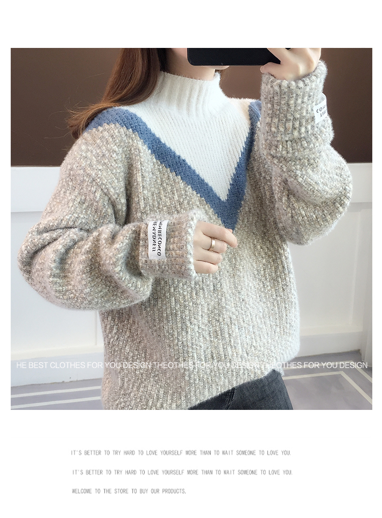 半高領毛衣女秋冬加絨2025新款套頭寬松韓版慵懶風加厚針織衫上衣