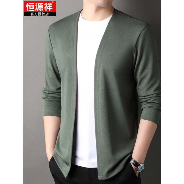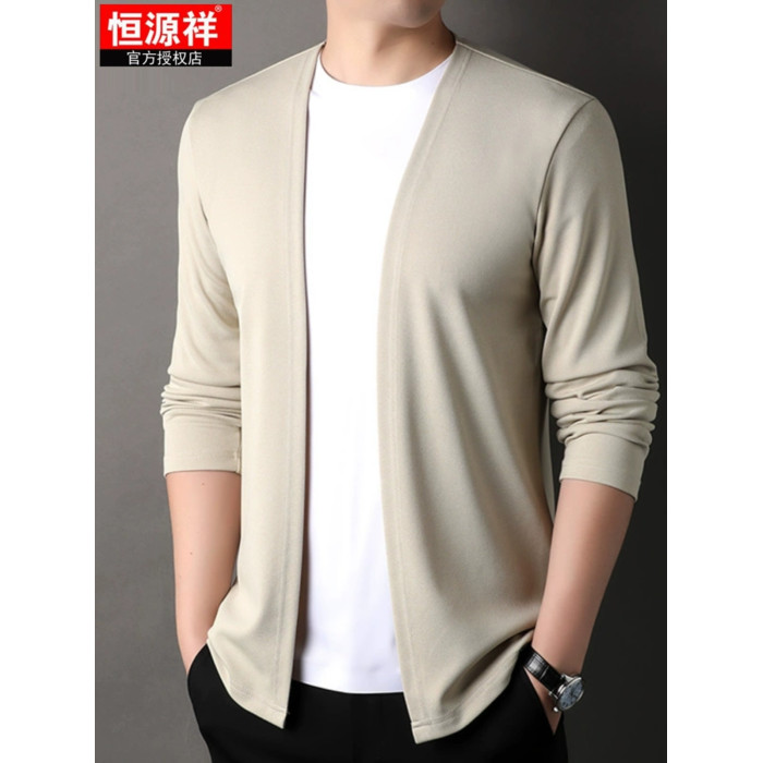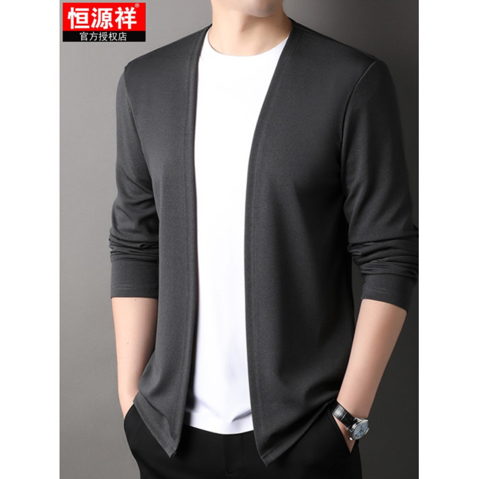 恒源祥秋裝新款開衫男薄款外穿針織衫男士冰絲中青年休閒外套潮流