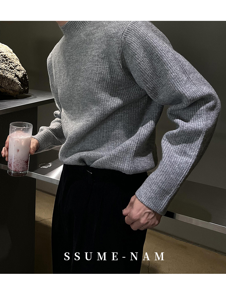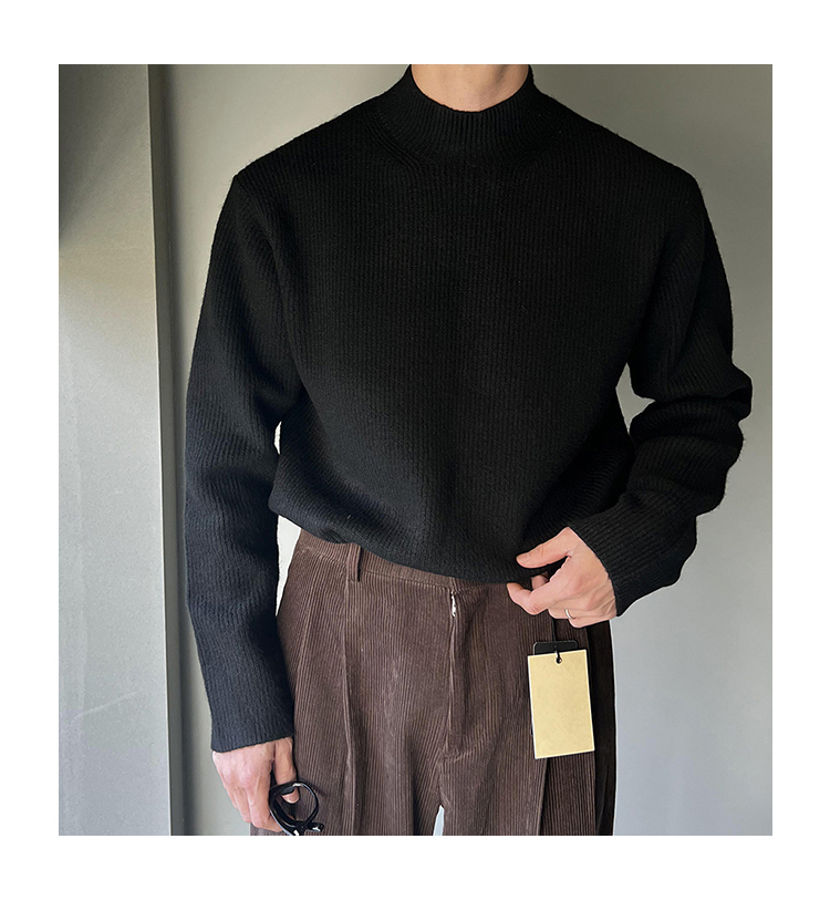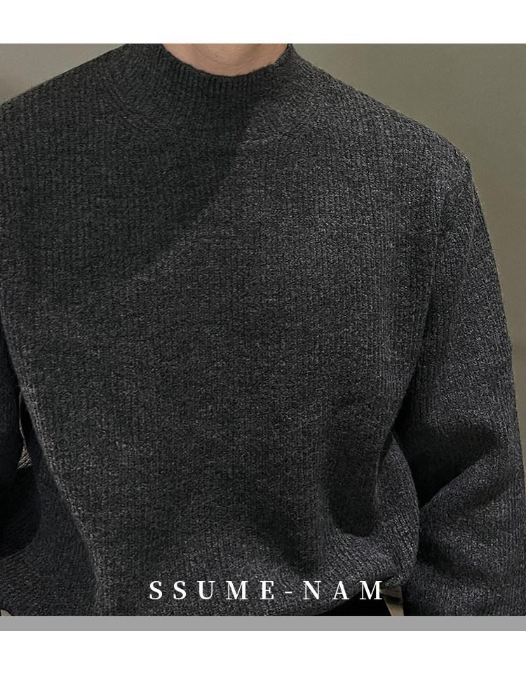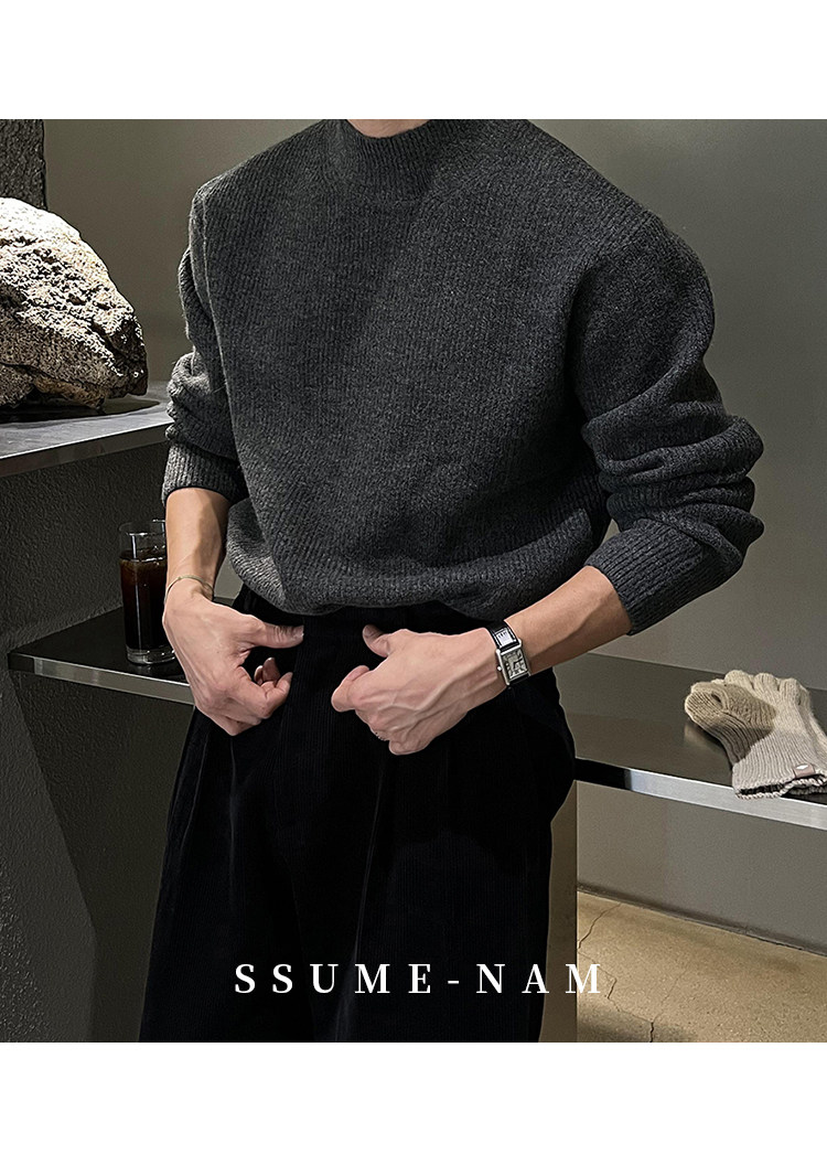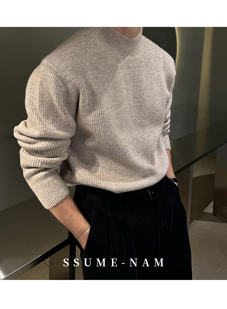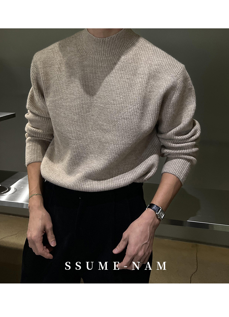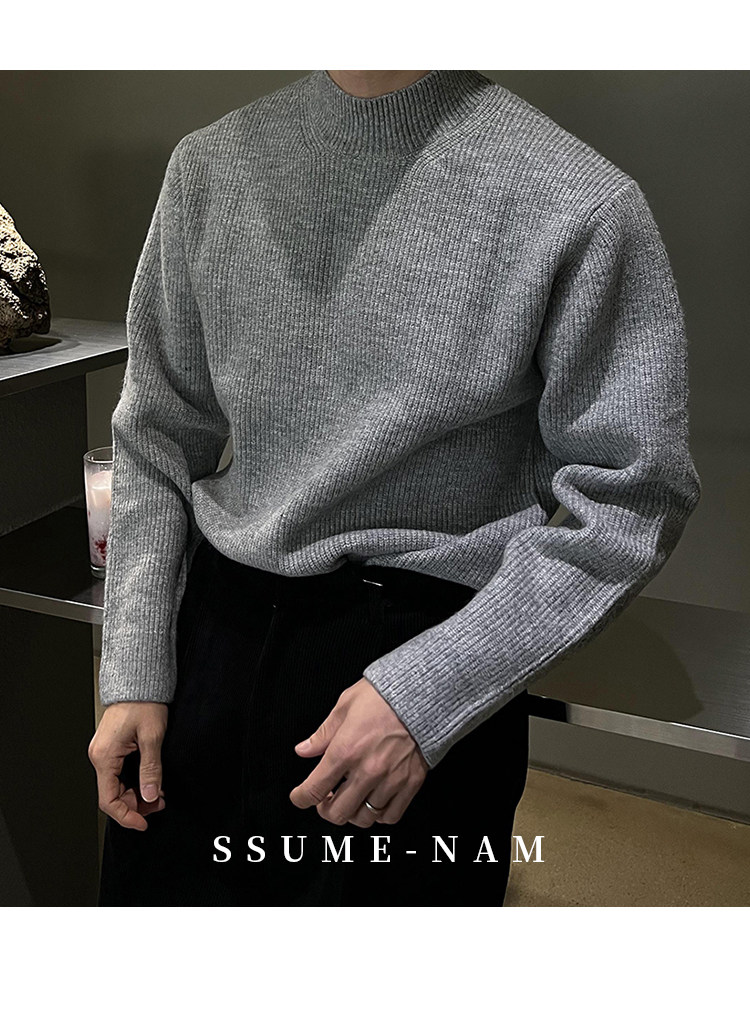 SSUMENAM「韓系簡約 半高領」秋冬季針織毛衣男寬松休閒打底衫