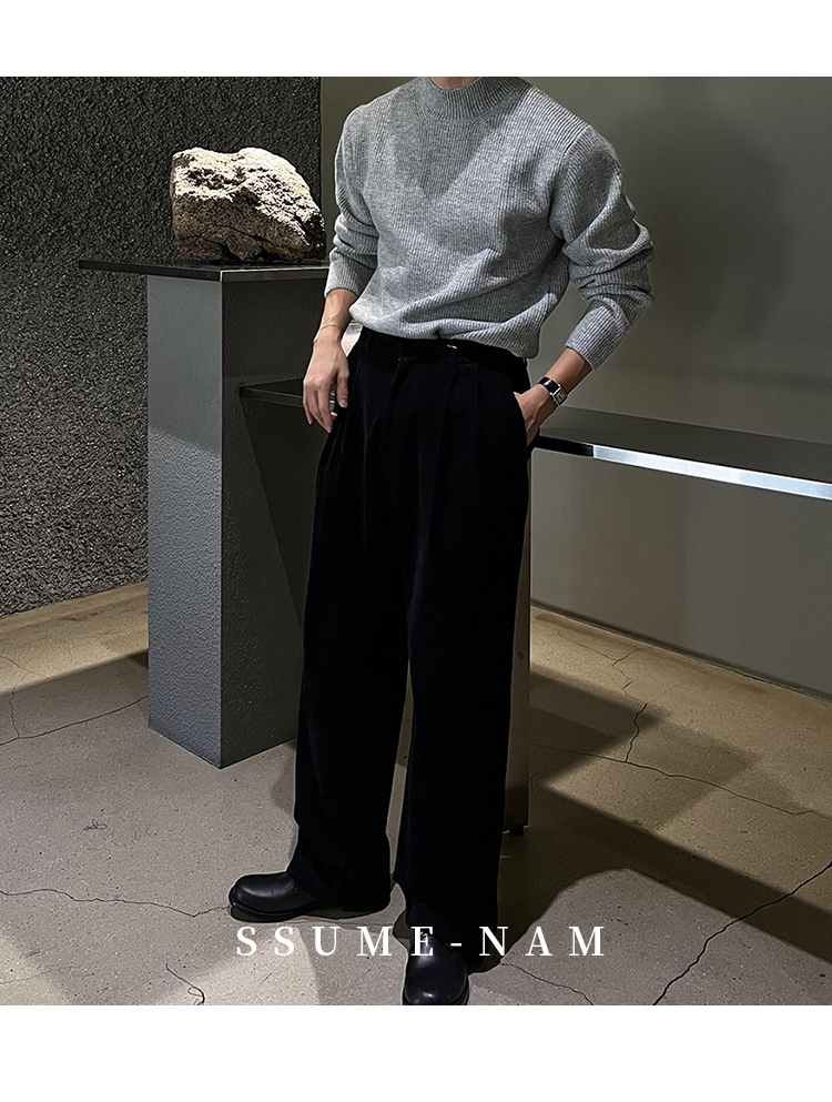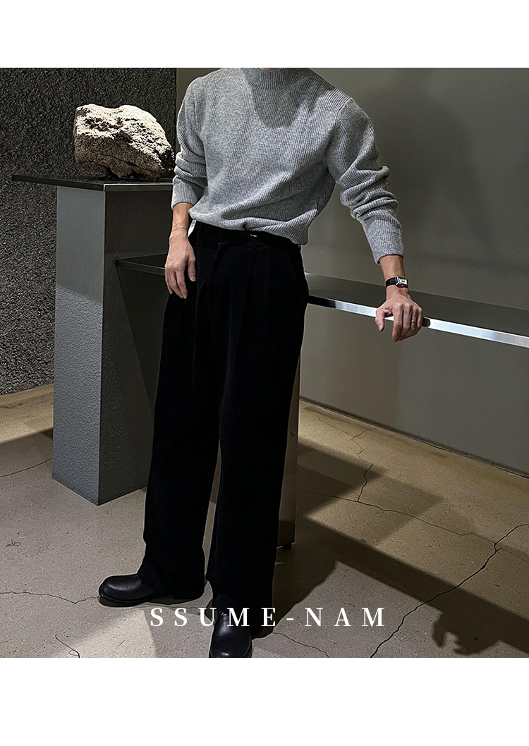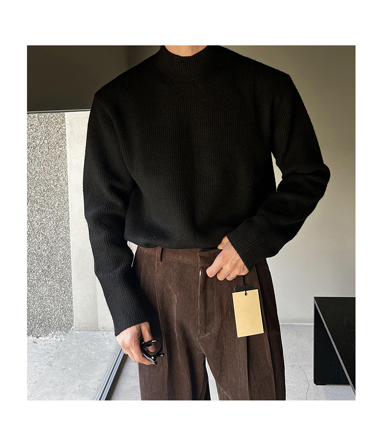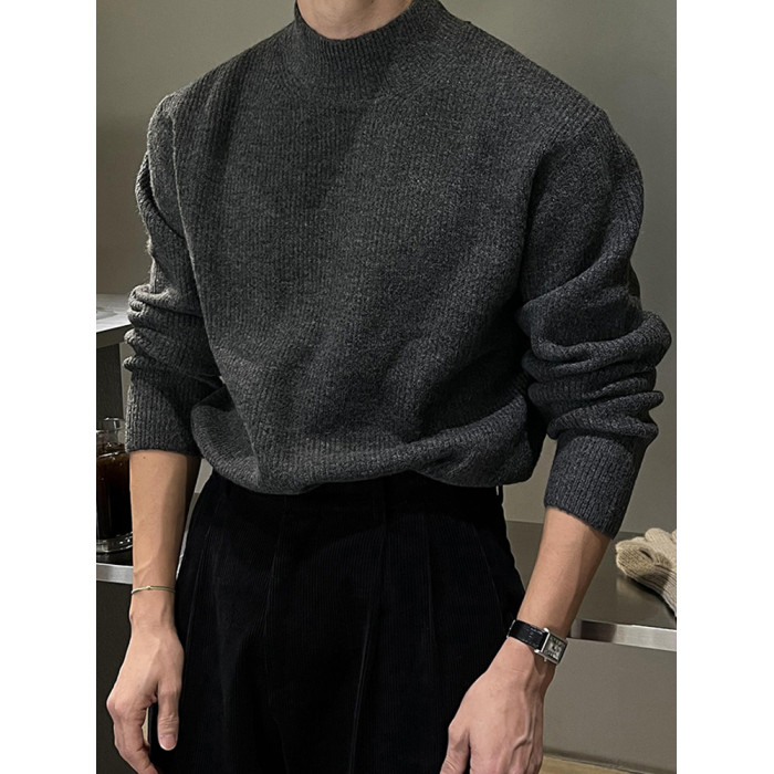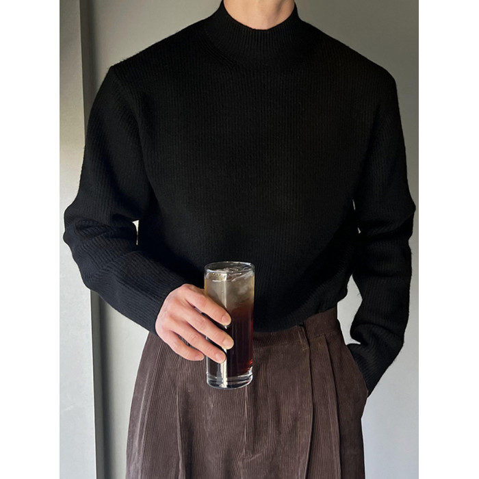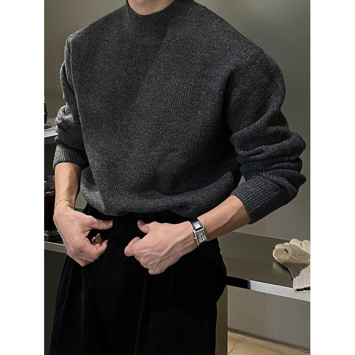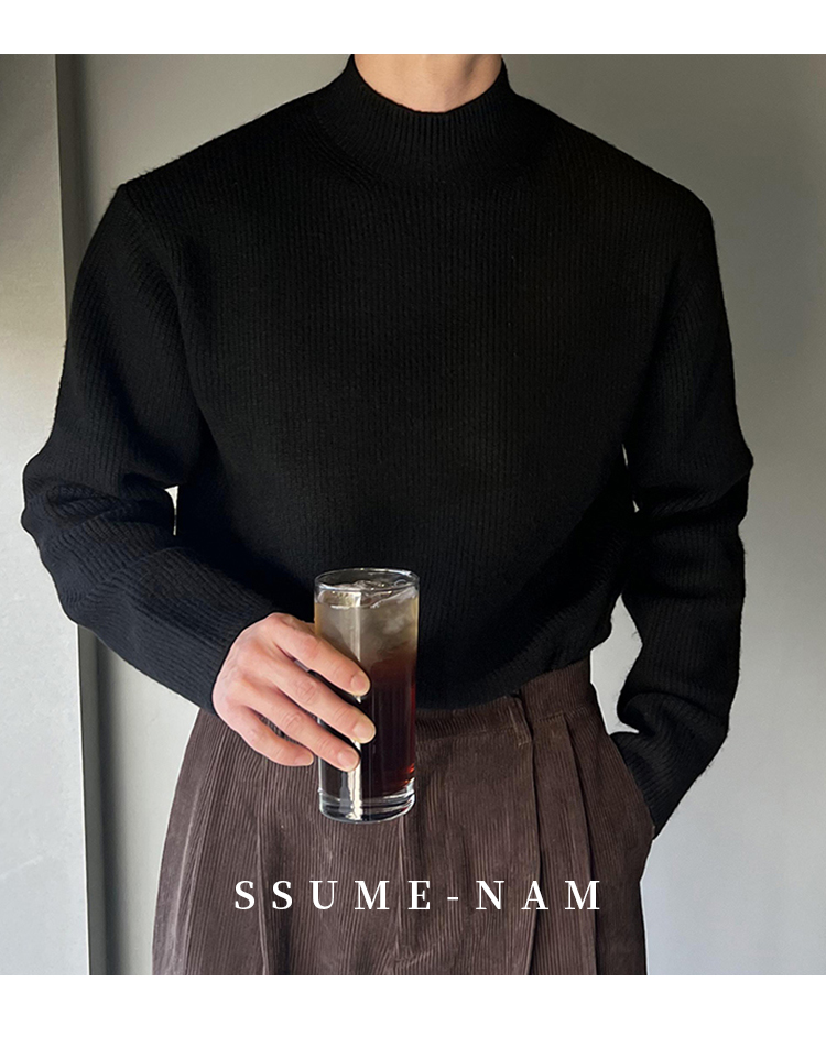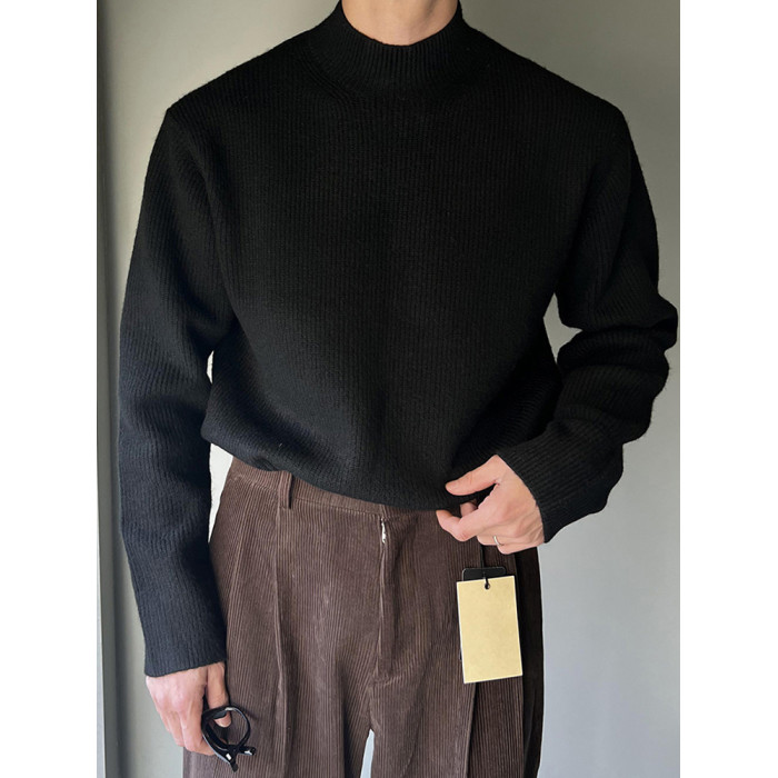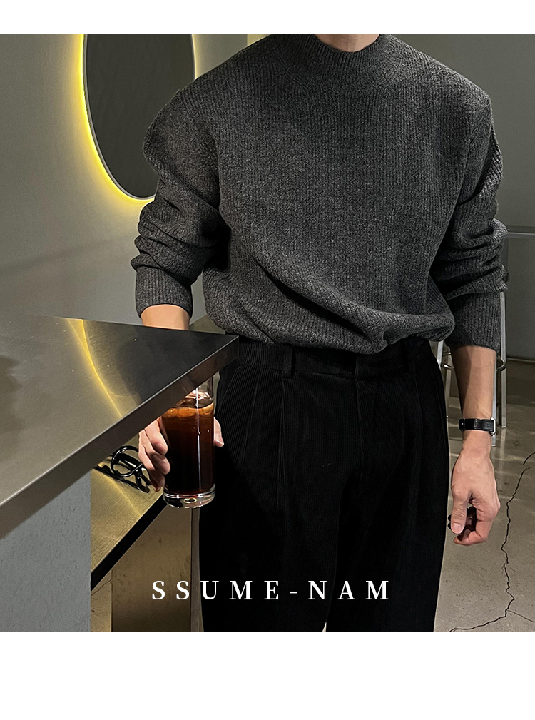 SSUMENAM「韓系簡約 半高領」秋冬季針織毛衣男寬松休閒打底衫