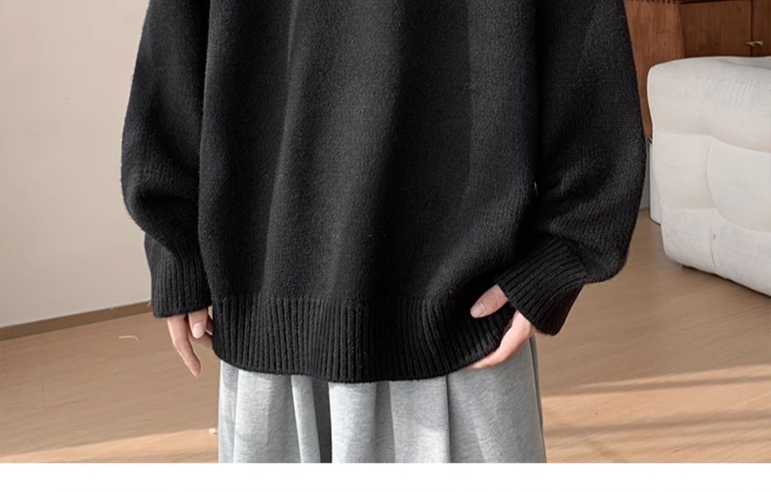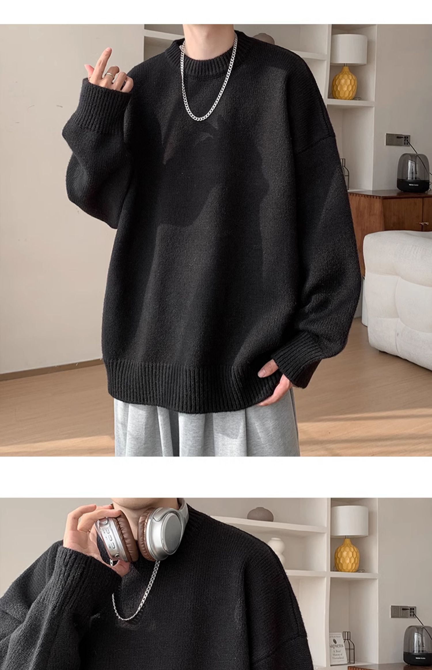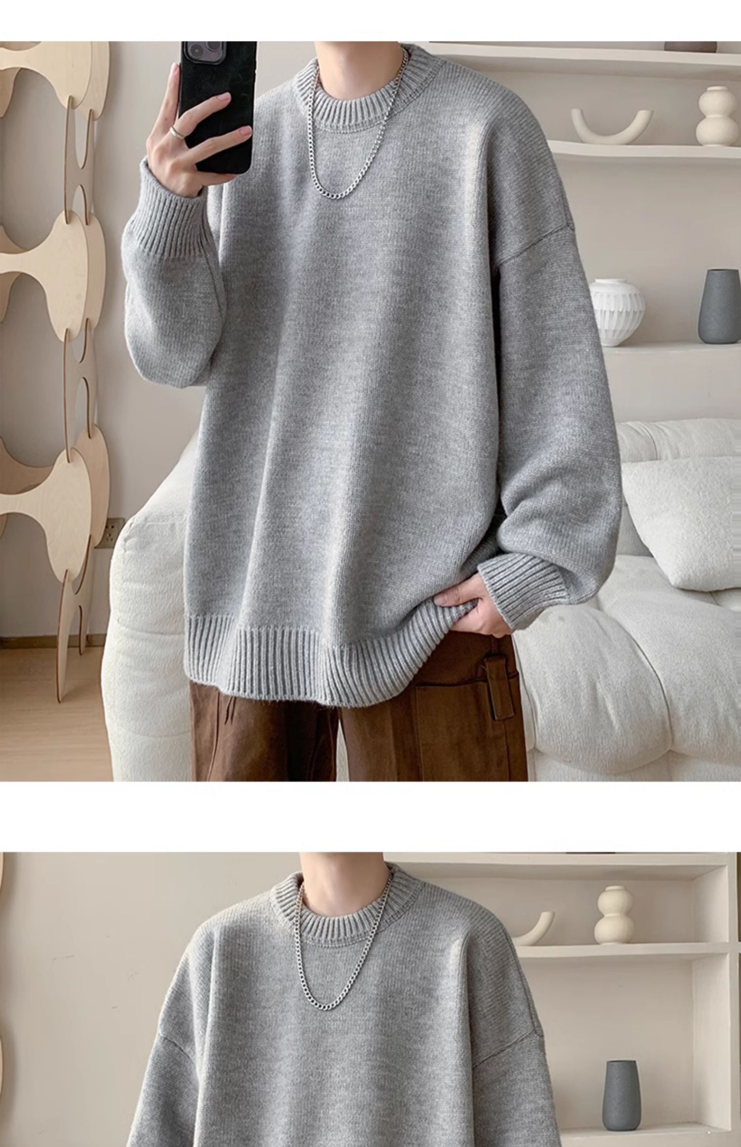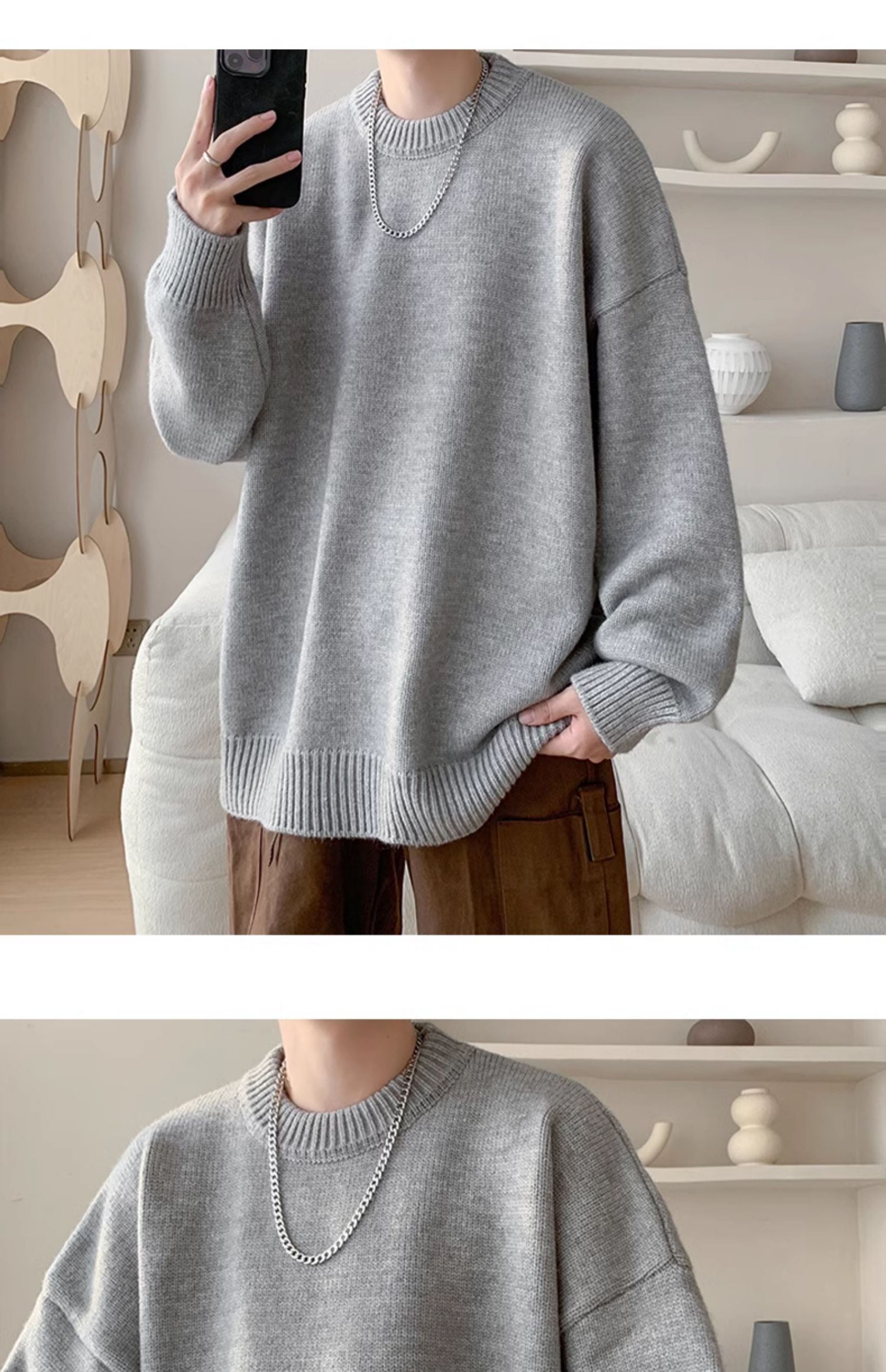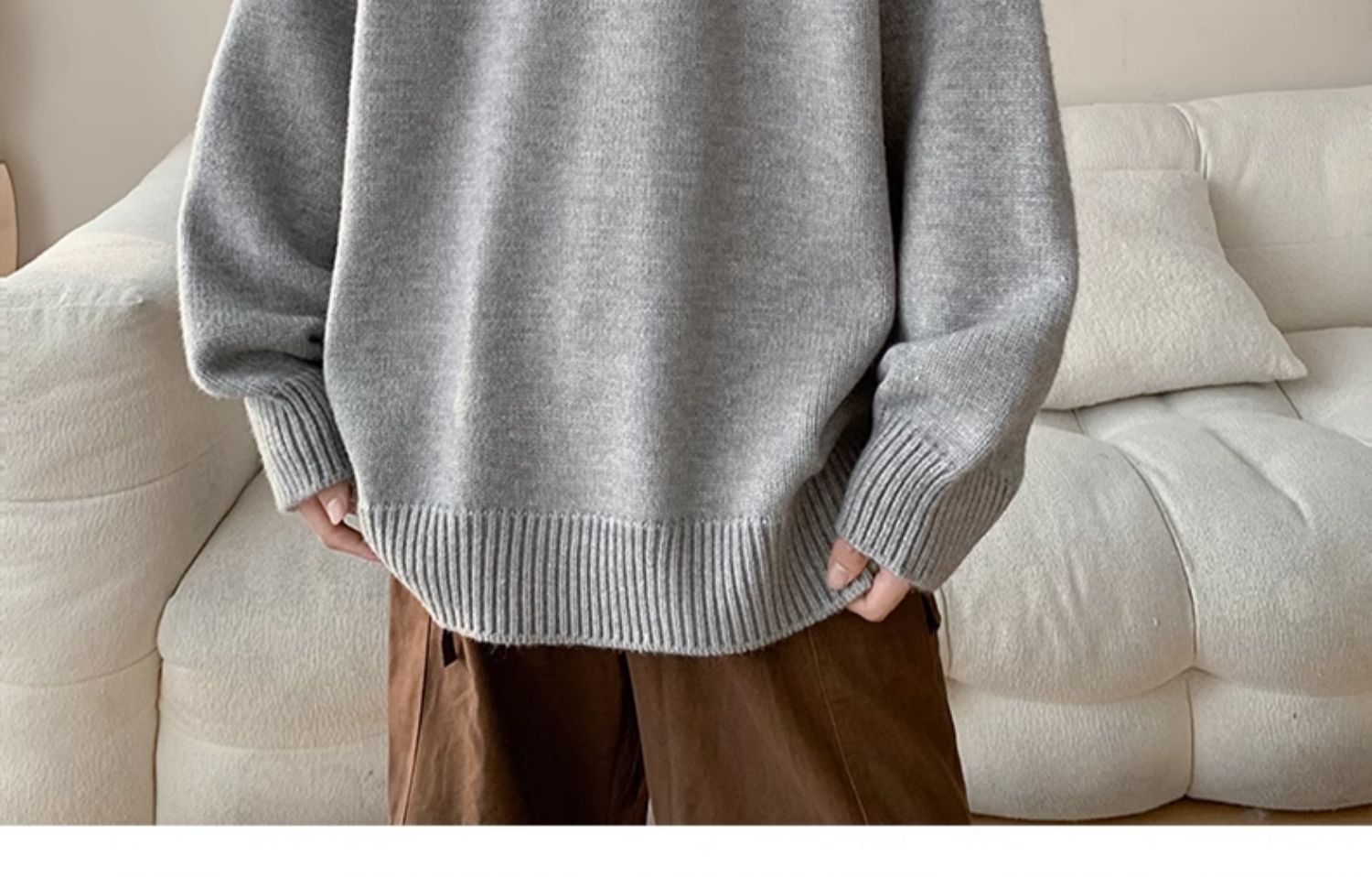美式慵懶風圓領毛衣男冬季潮牌vintage情侶針織衫復古純色套頭衫