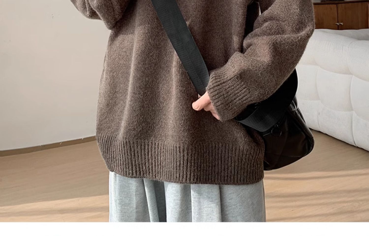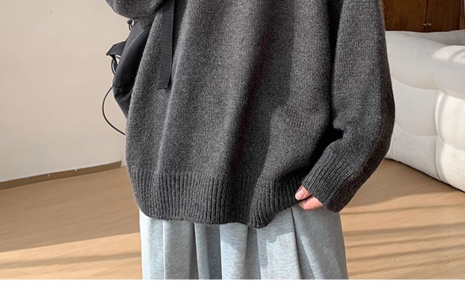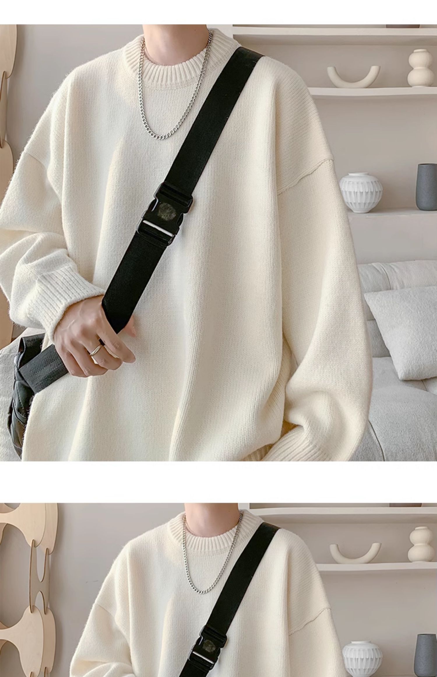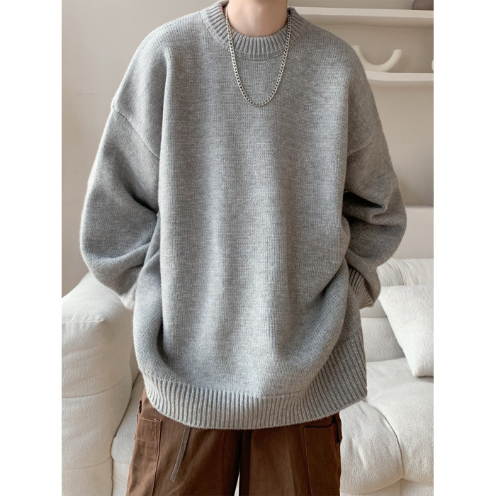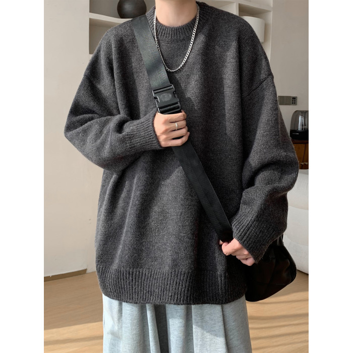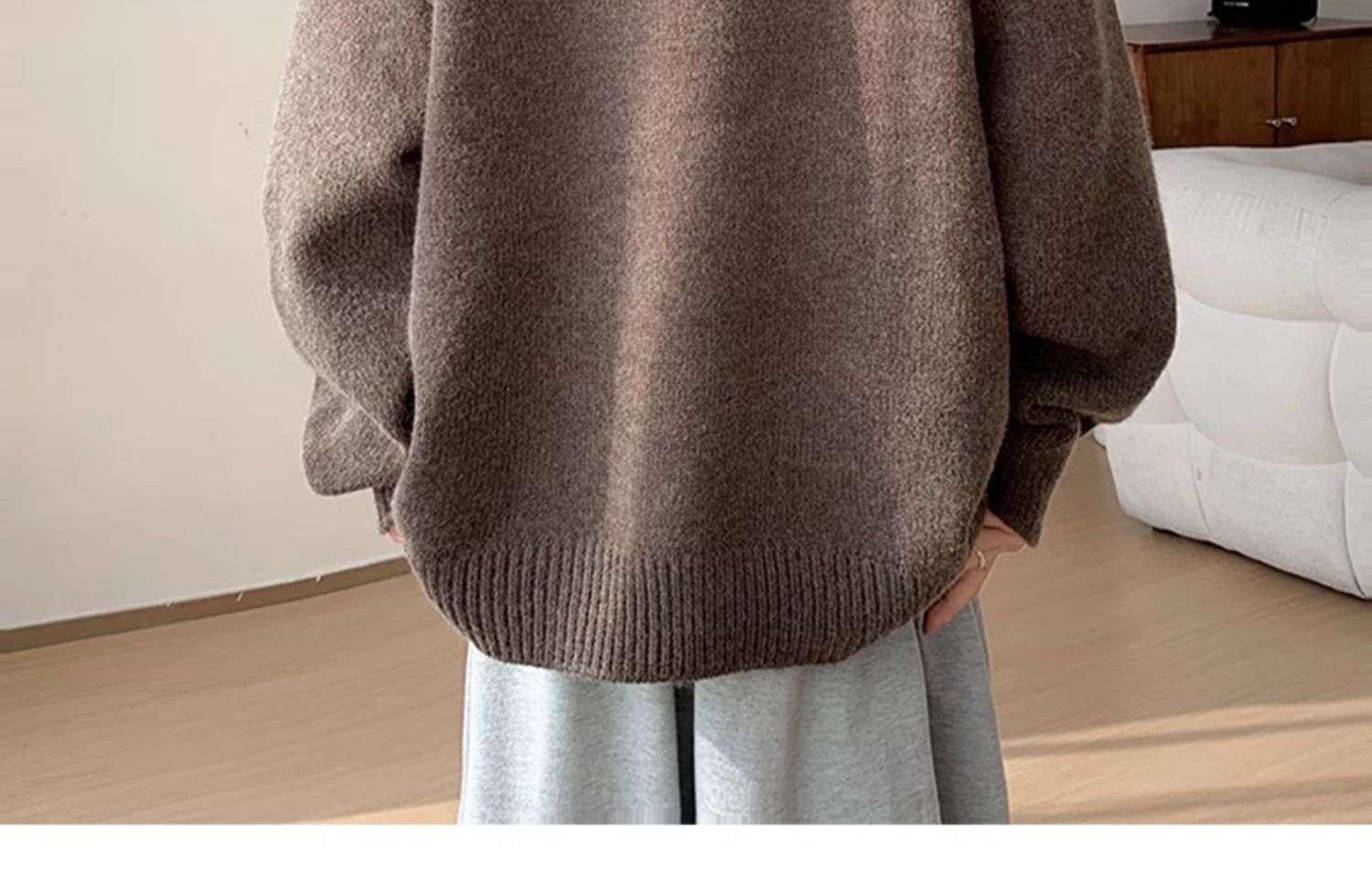 美式慵懶風圓領毛衣男冬季潮牌vintage情侶針織衫復古純色套頭衫