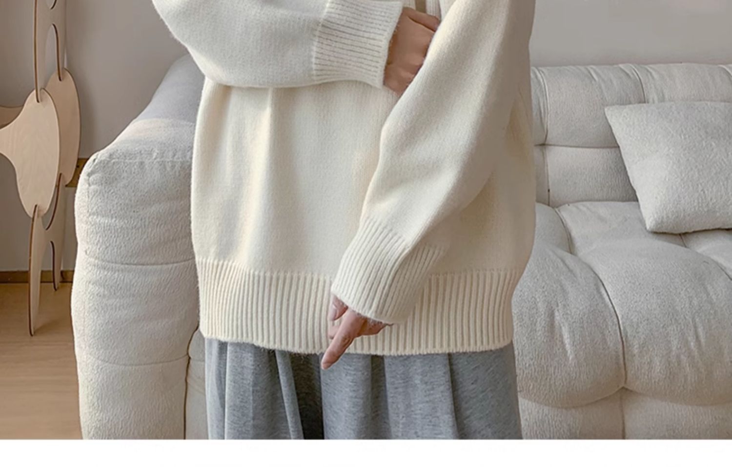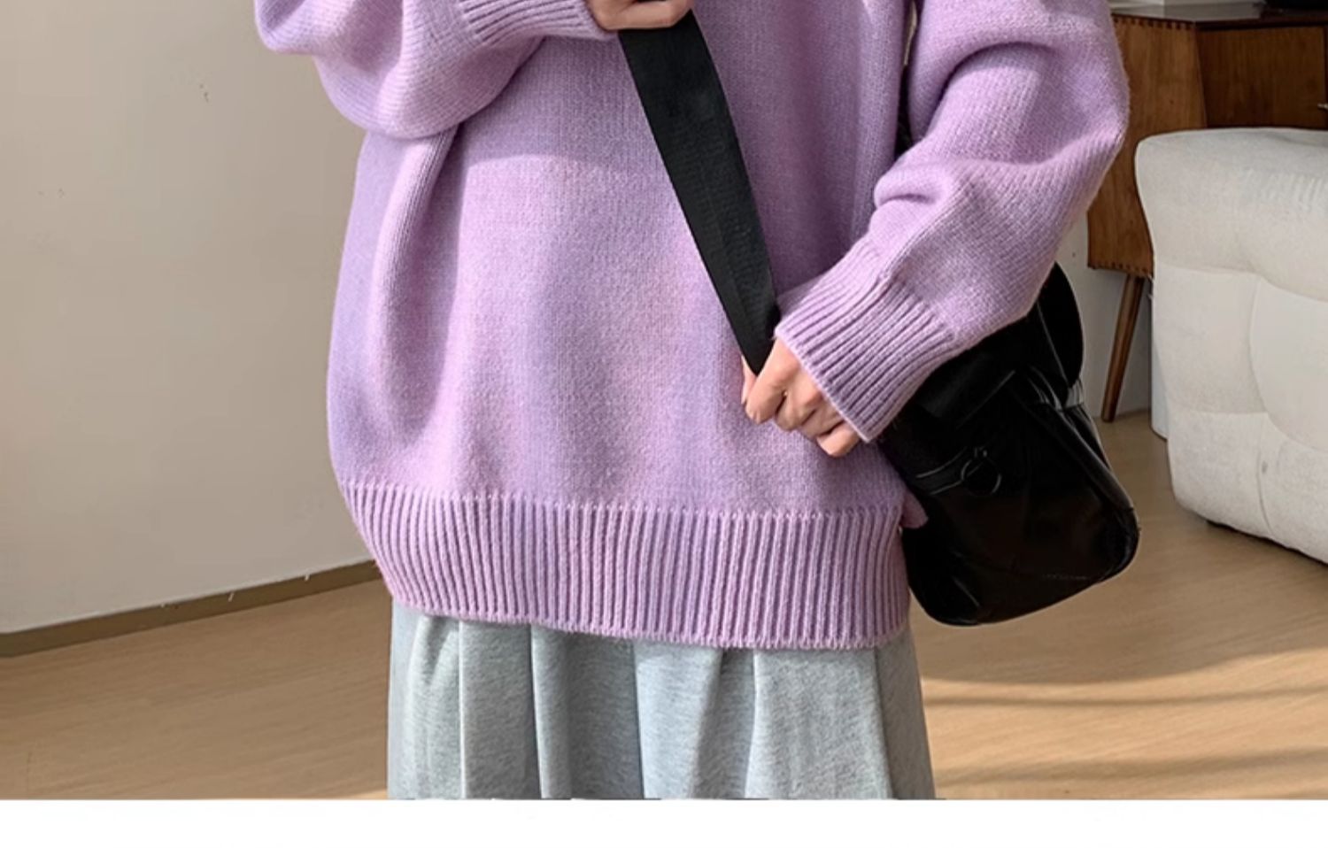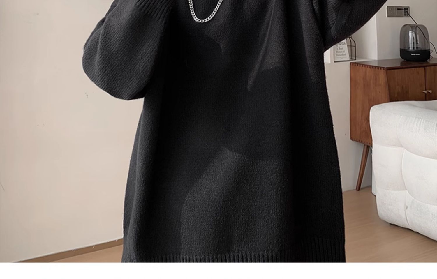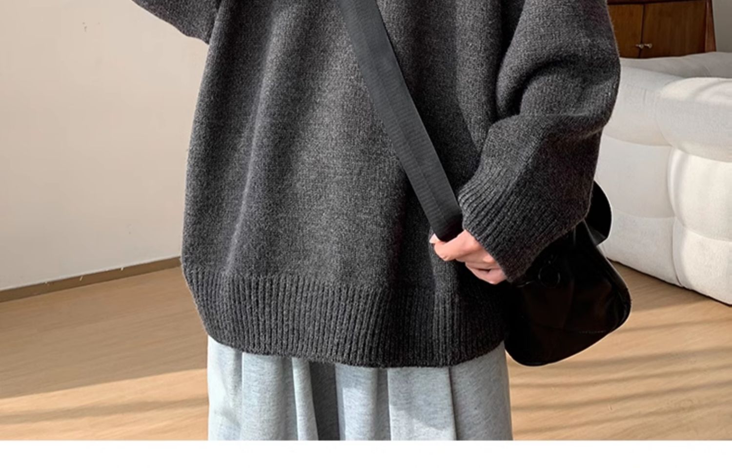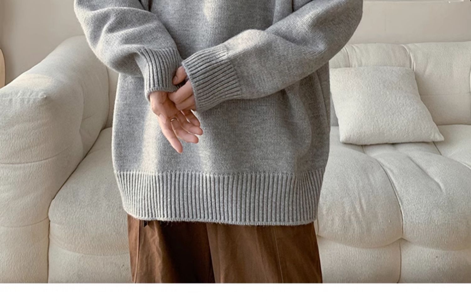 美式慵懶風圓領毛衣男冬季潮牌vintage情侶針織衫復古純色套頭衫
