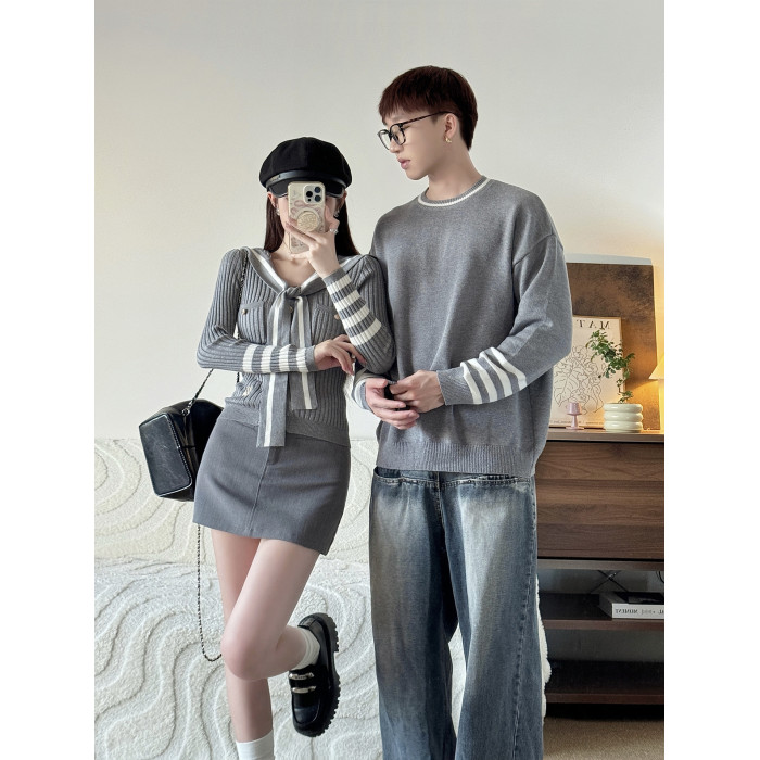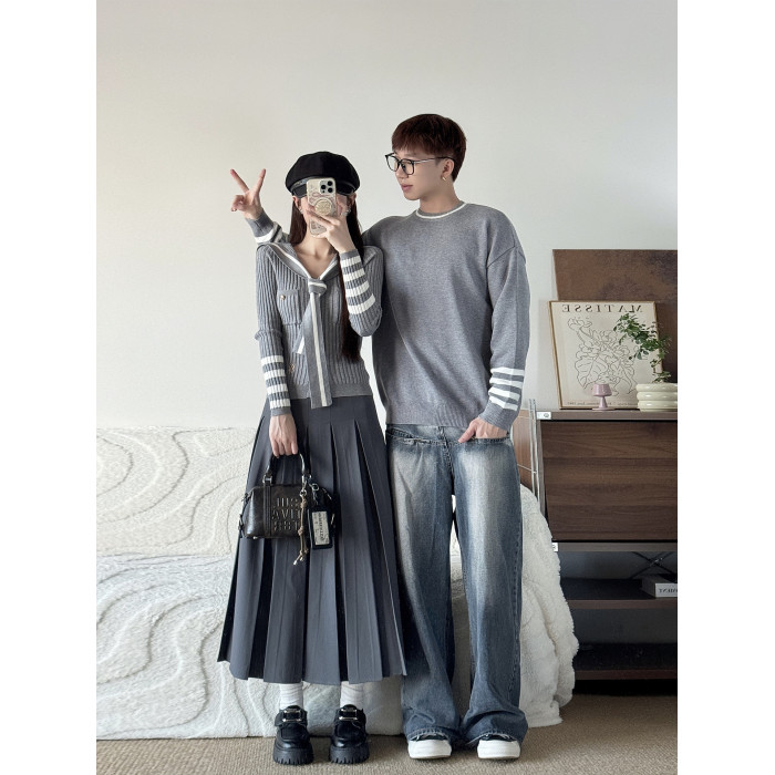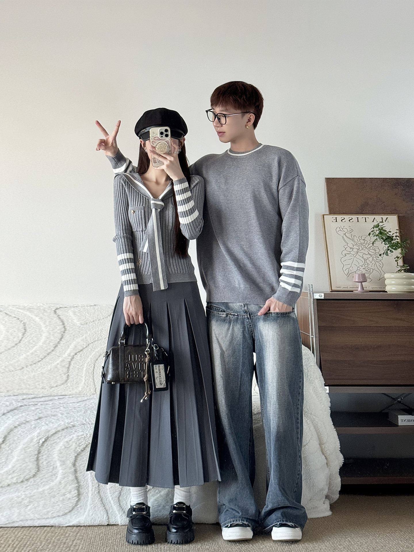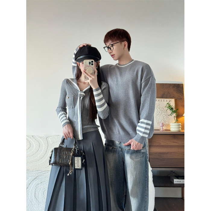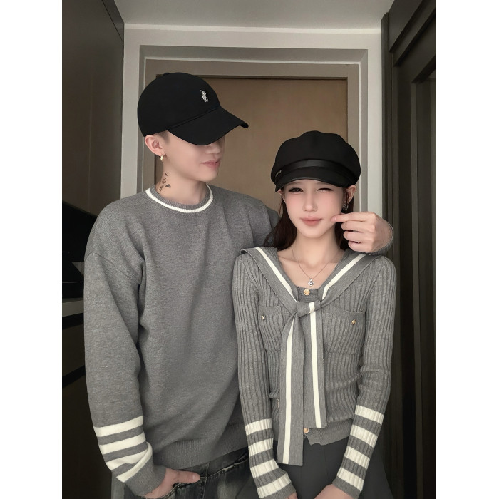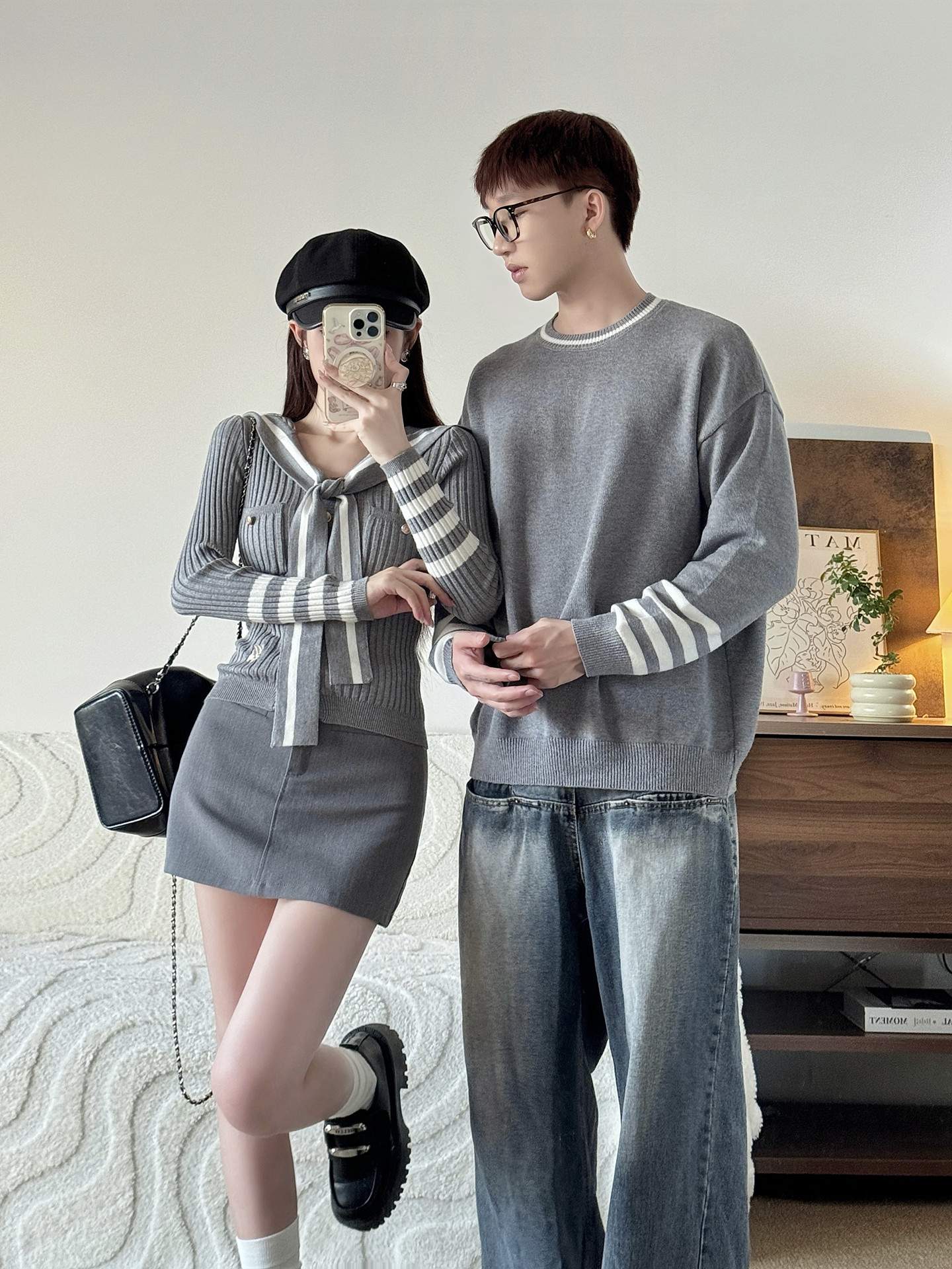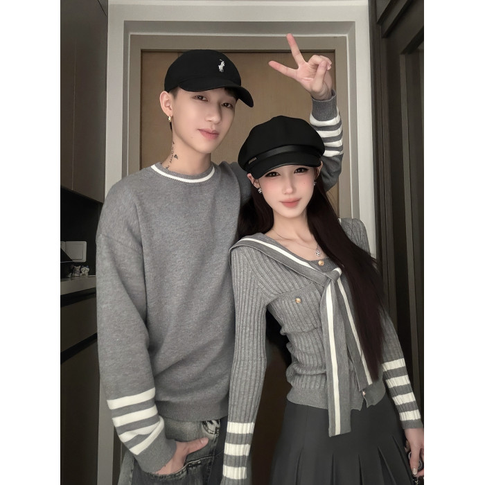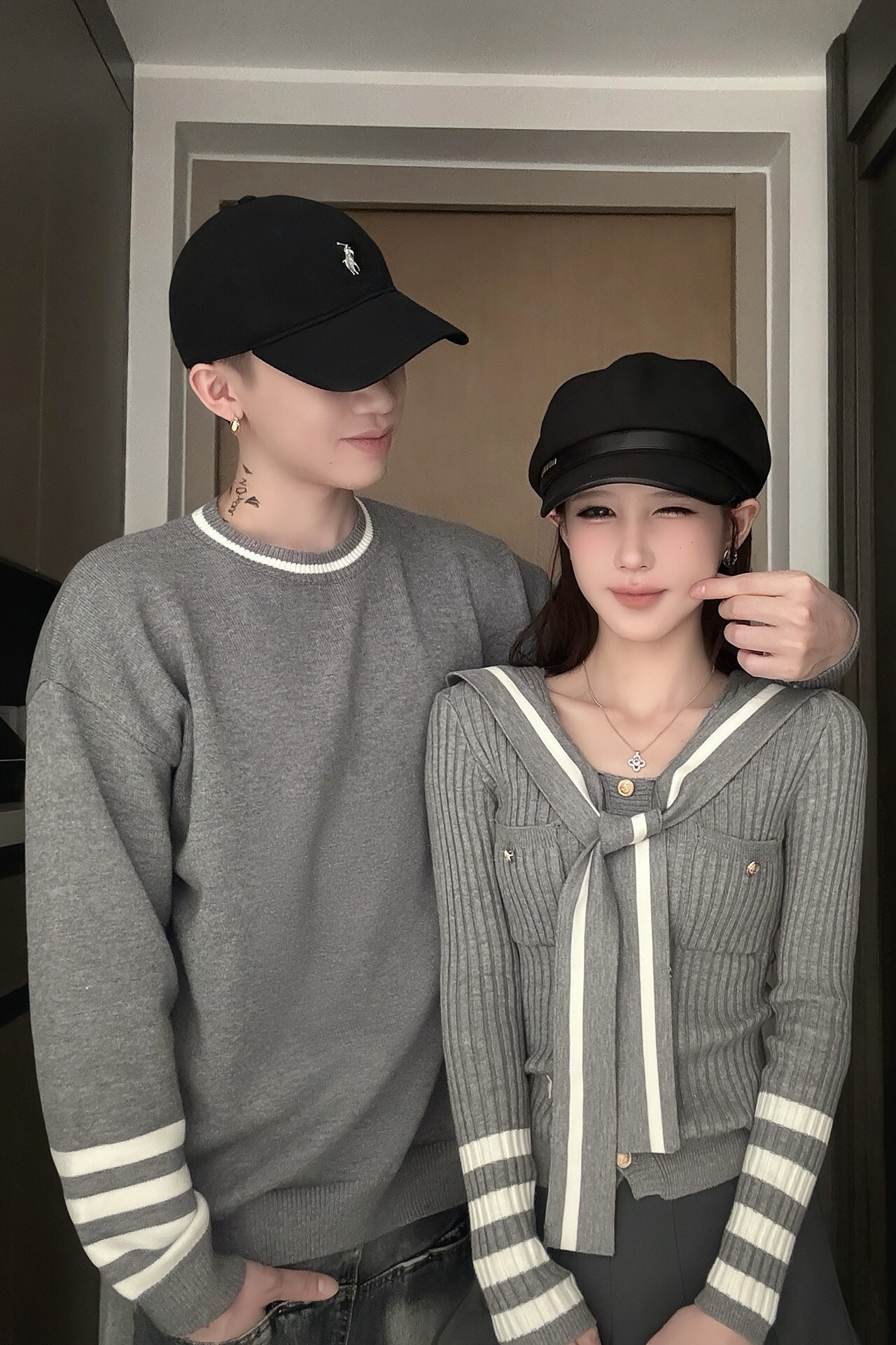 情侶裝秋冬2025新款ins法式復古學院風毛衣韓版顯瘦海軍領針織衫