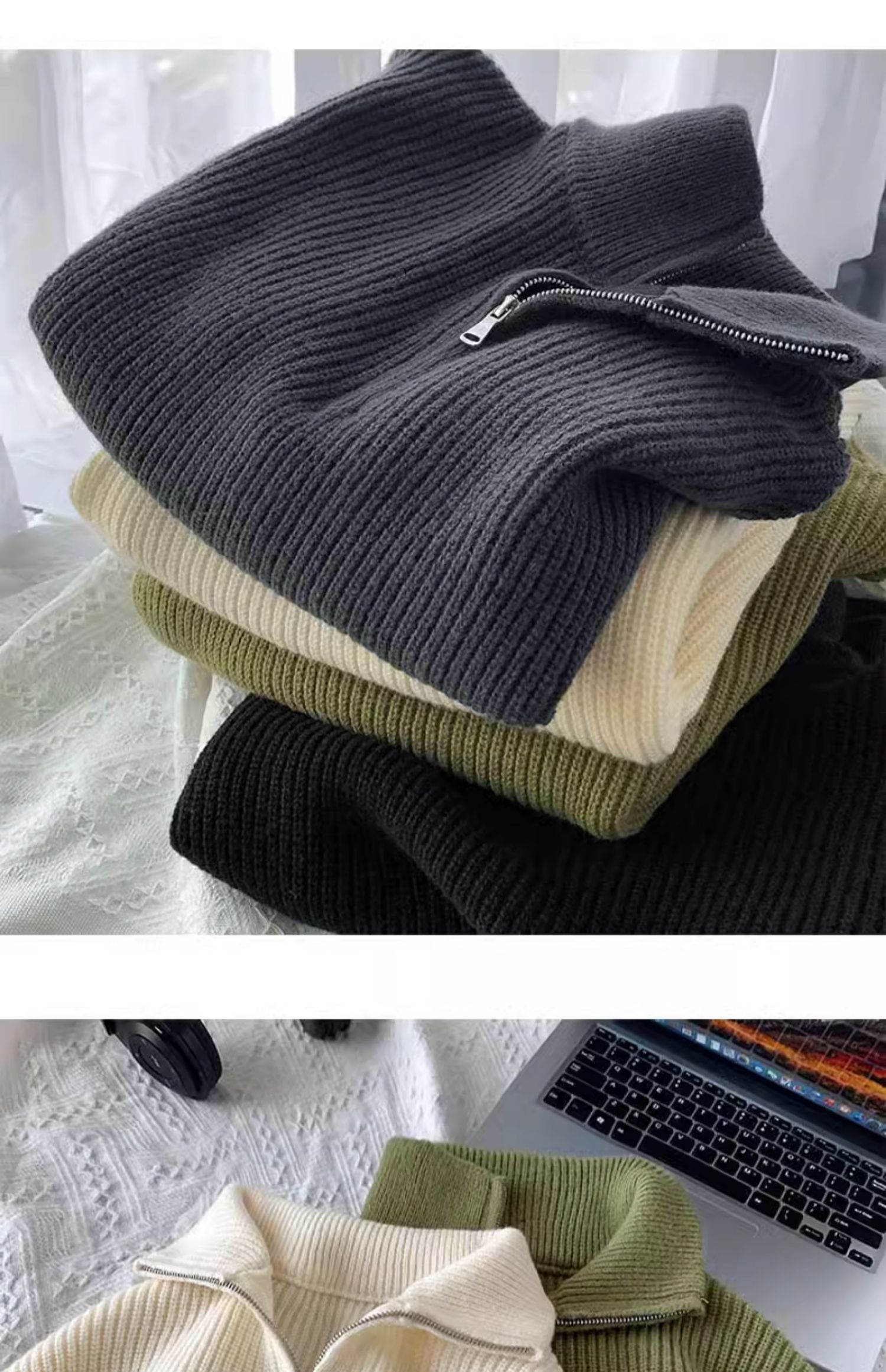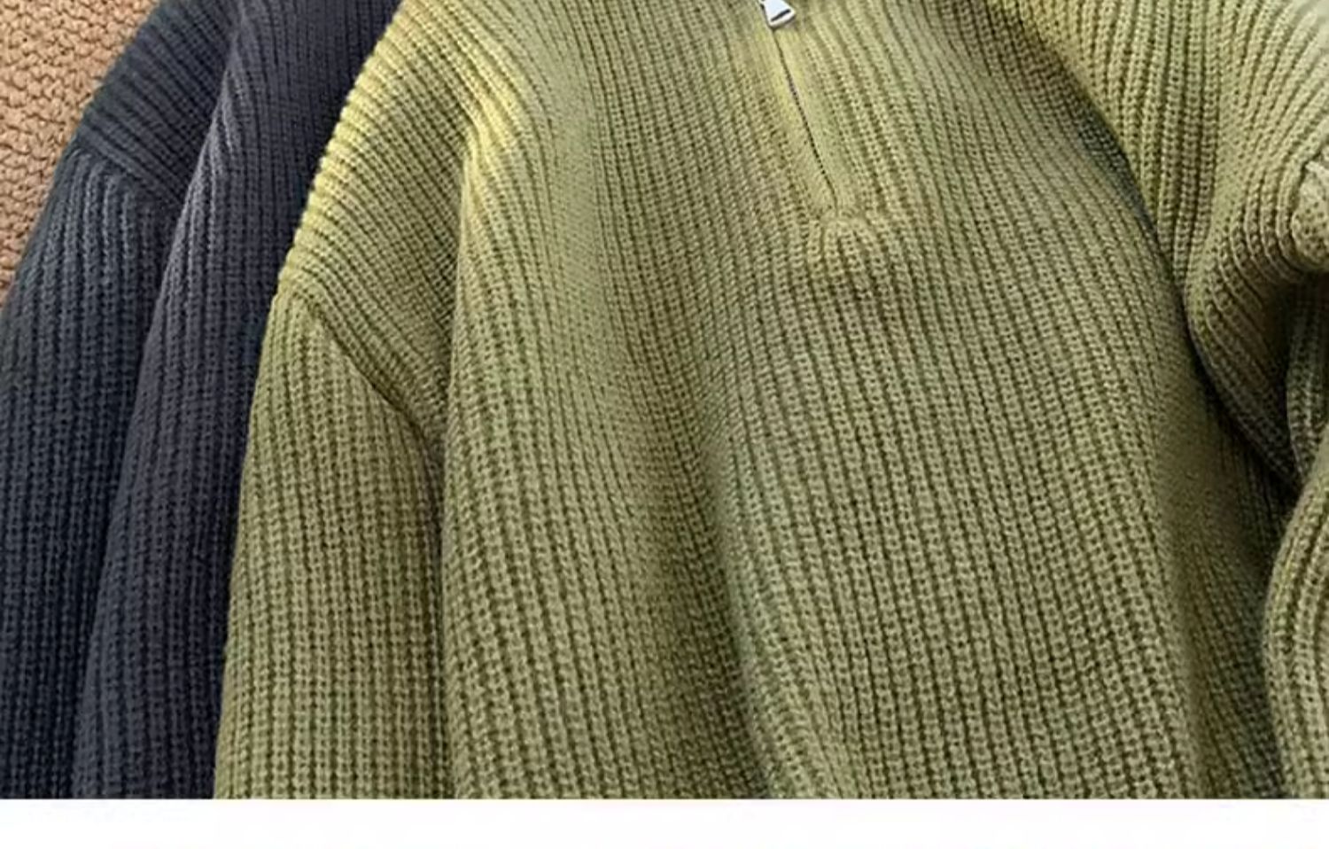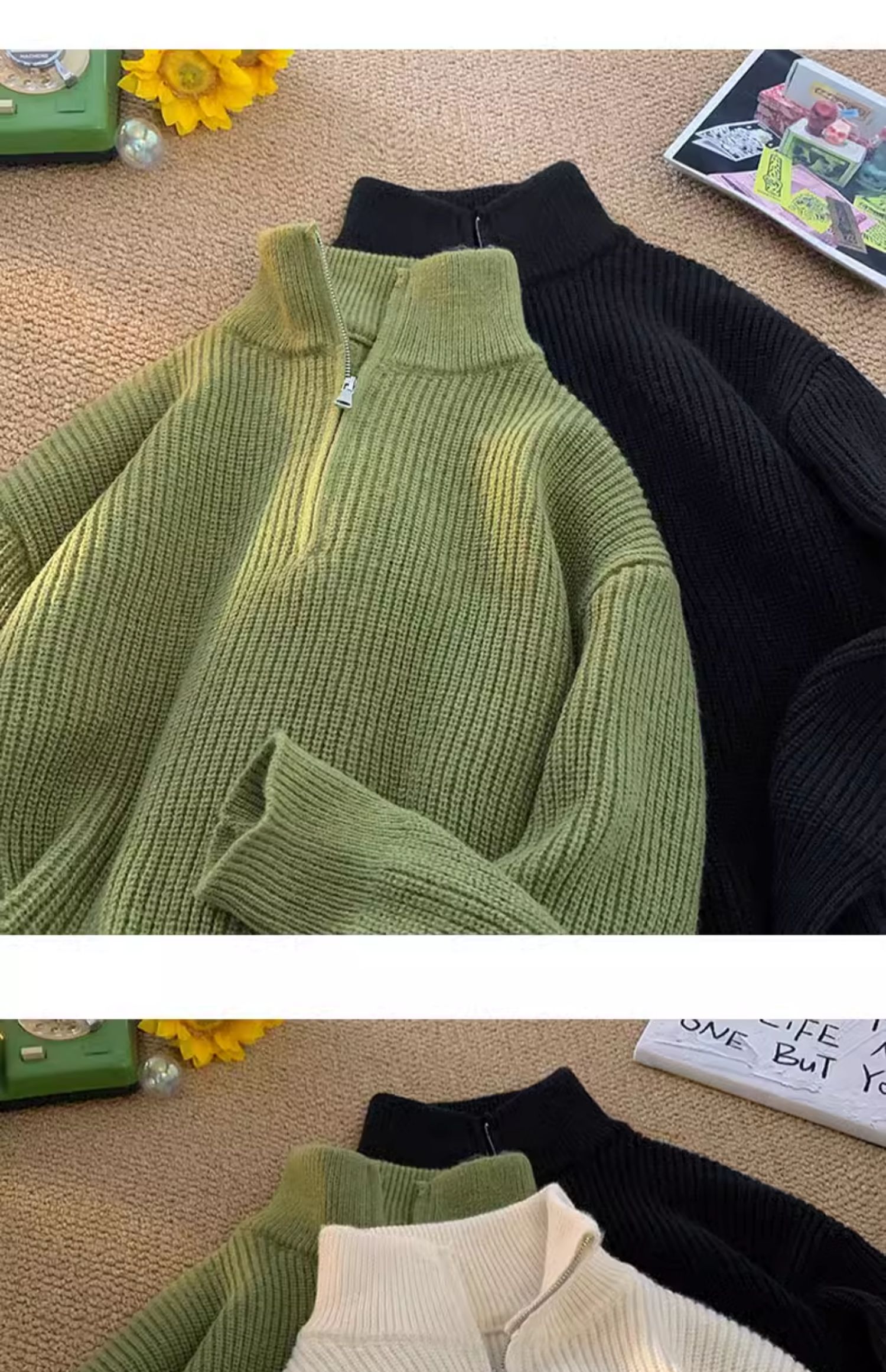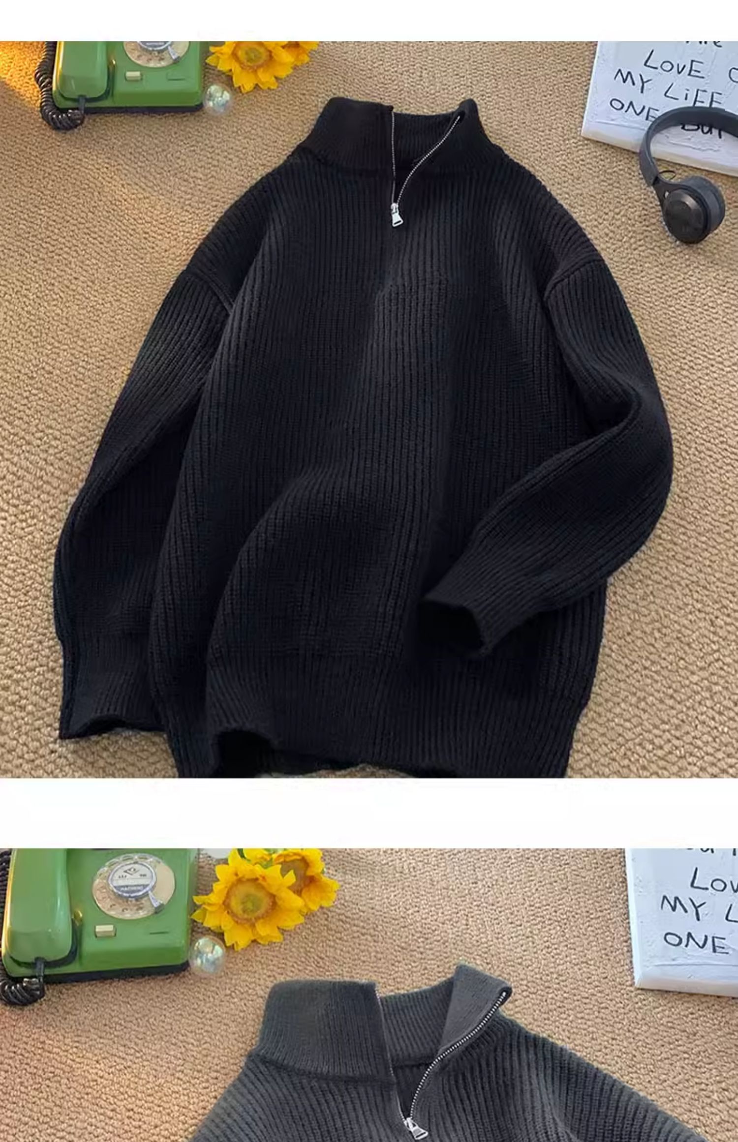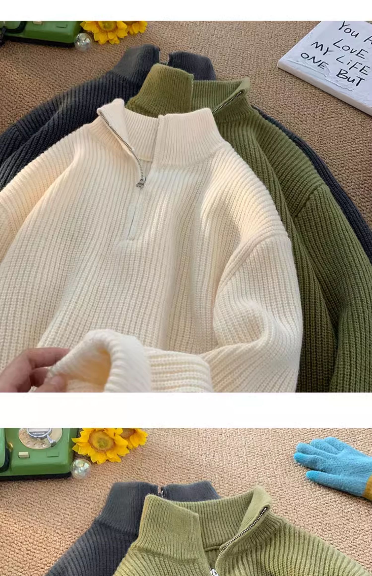 半拉鍊高領套頭毛衣男冬季cityboy日系慵懶風上衣百搭情侶針織衫