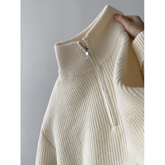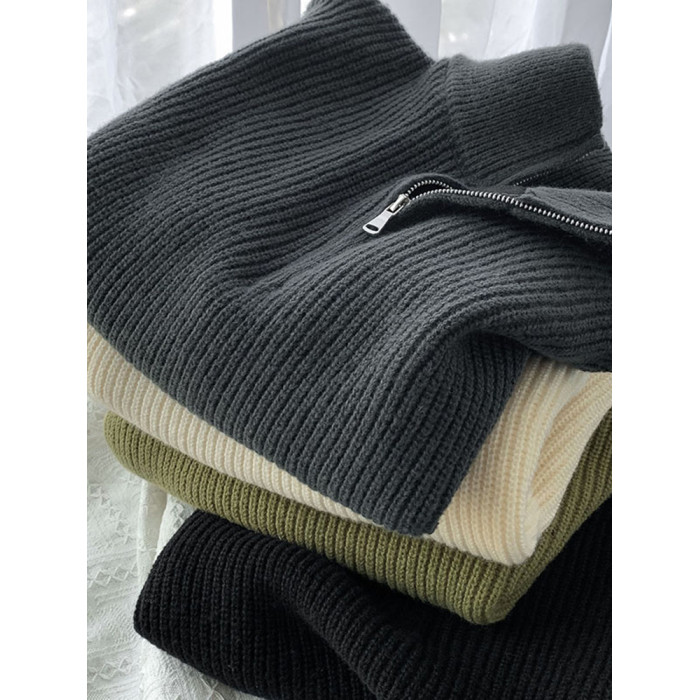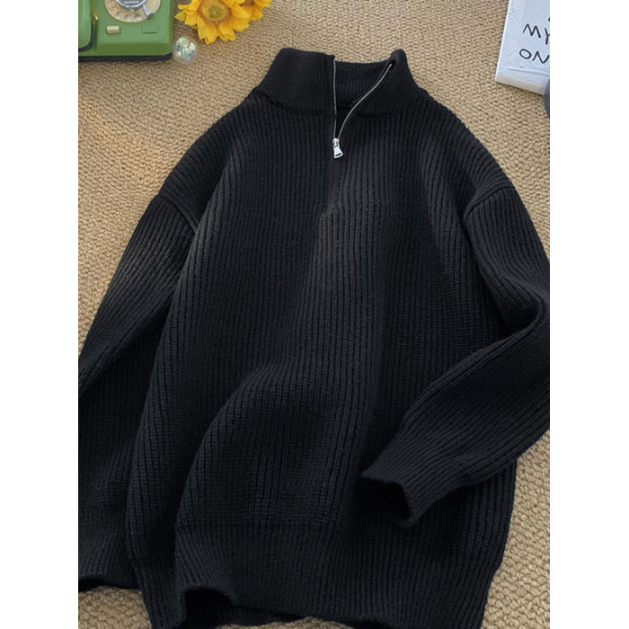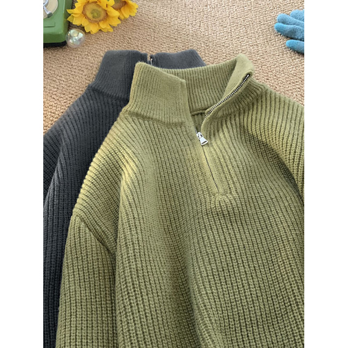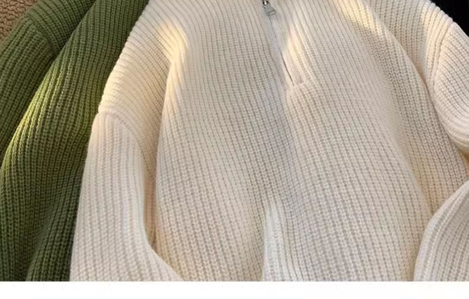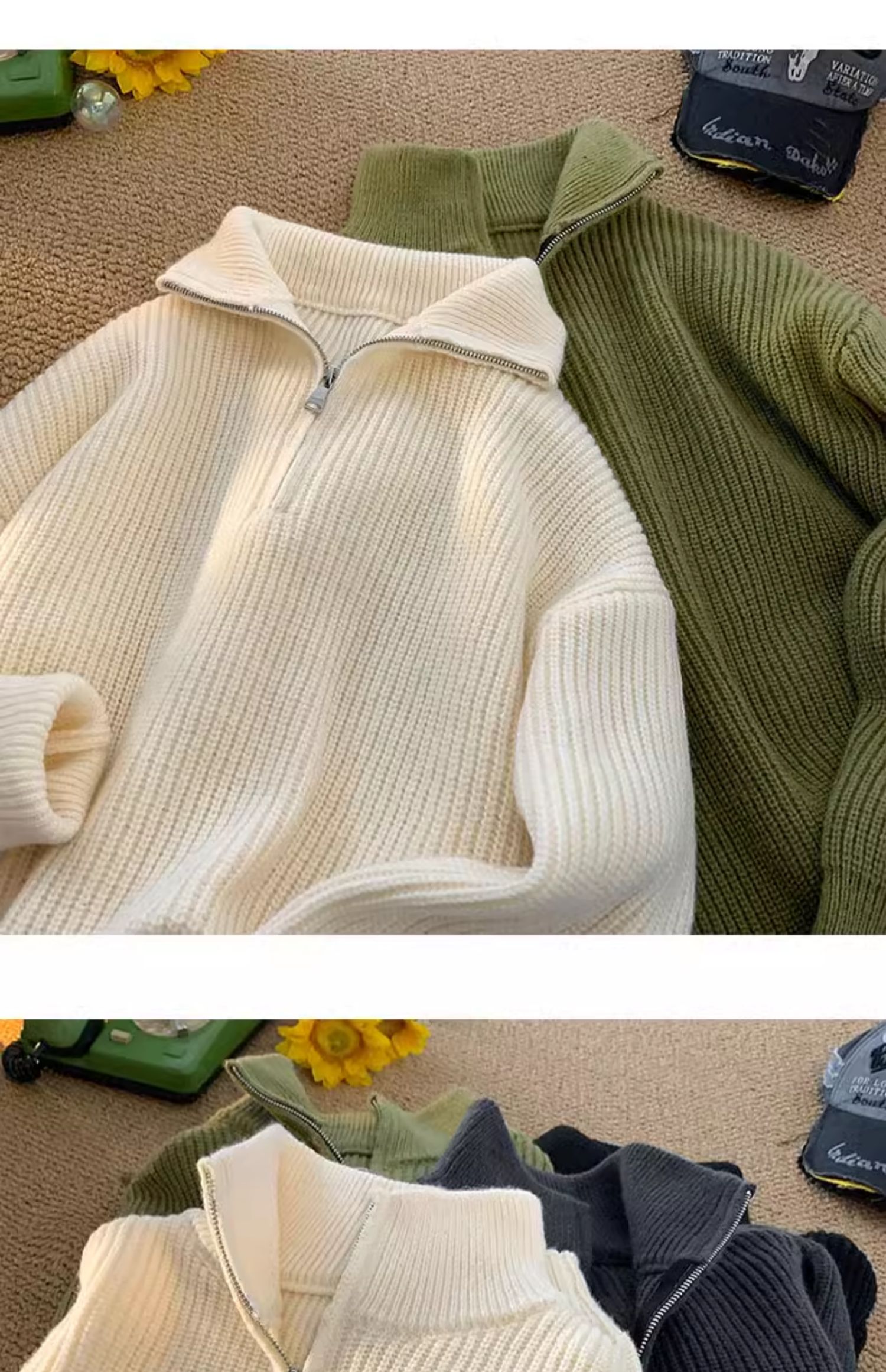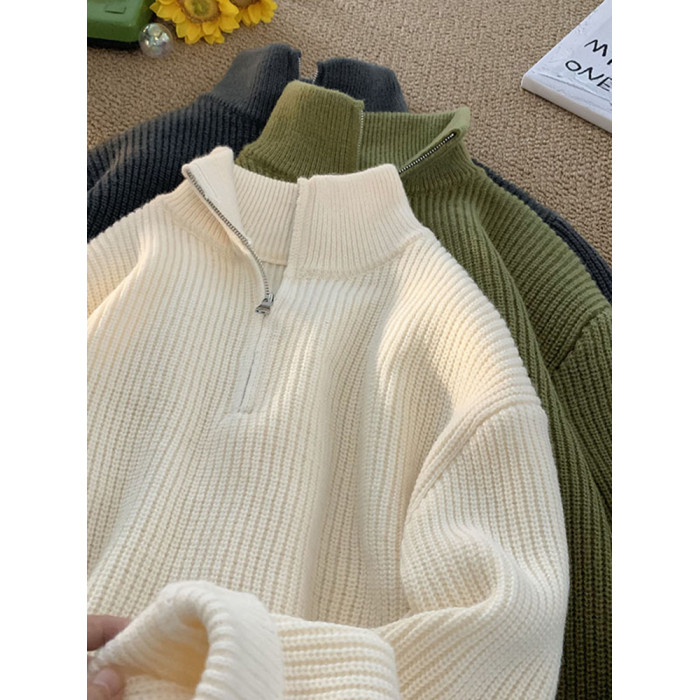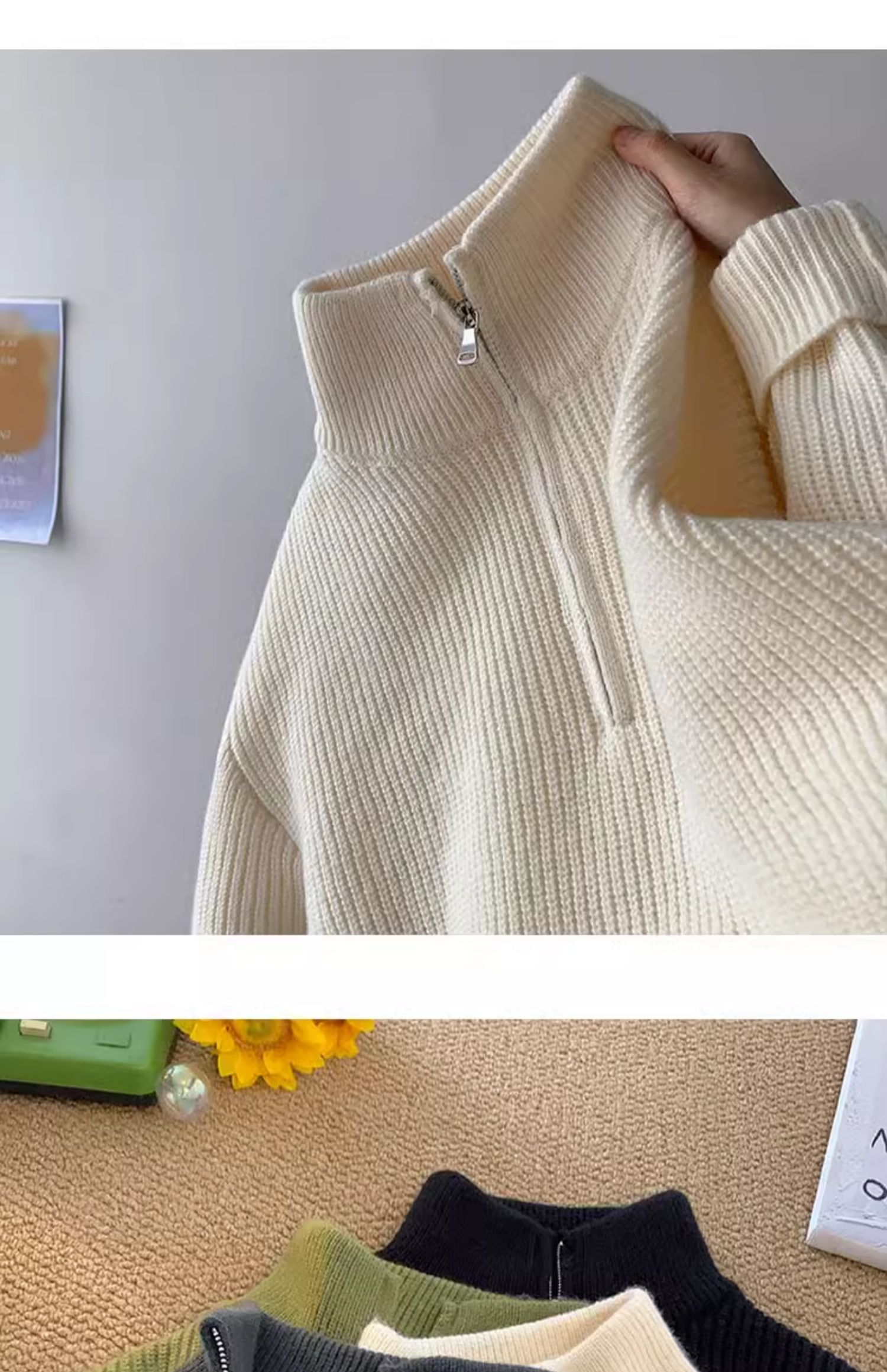 半拉鍊高領套頭毛衣男冬季cityboy日系慵懶風上衣百搭情侶針織衫