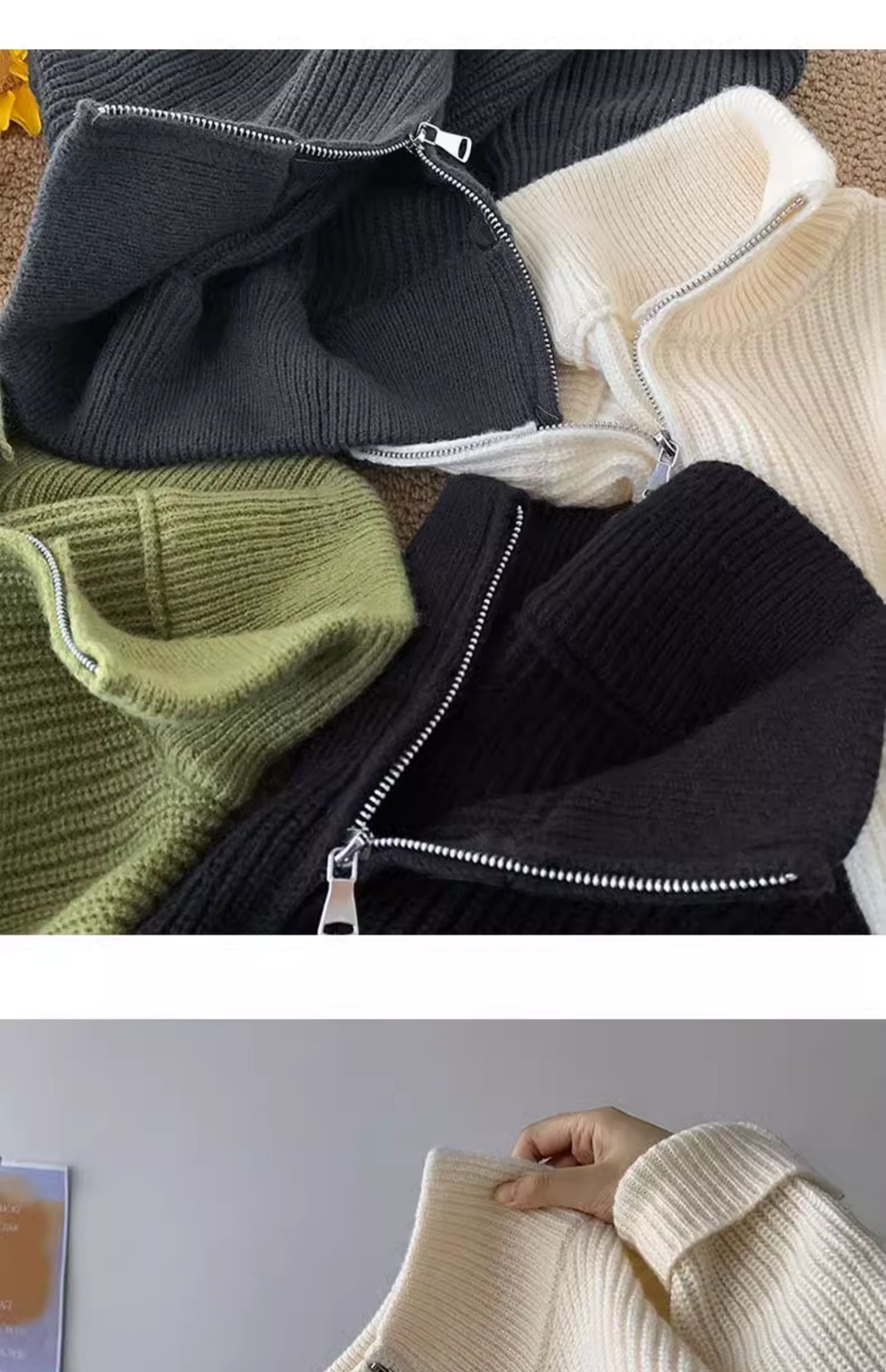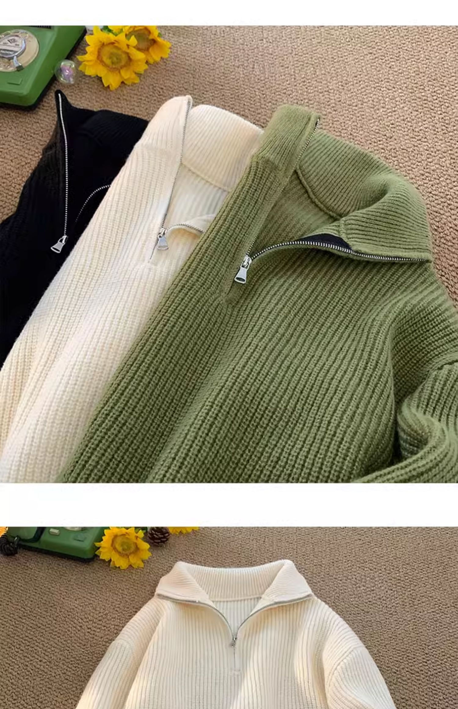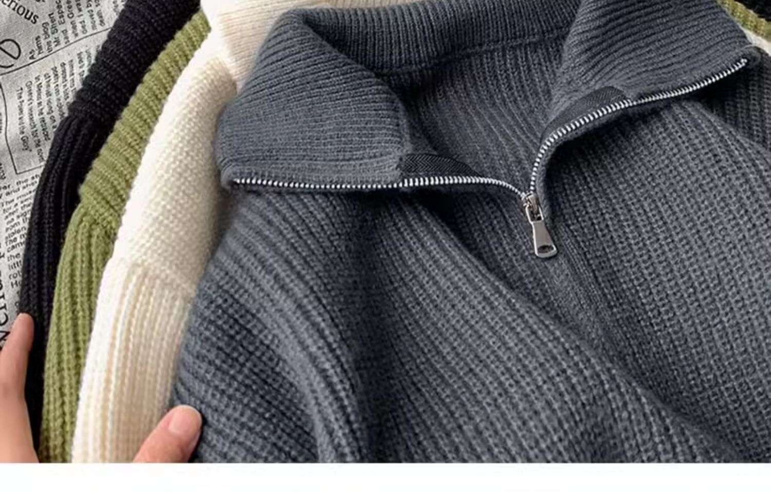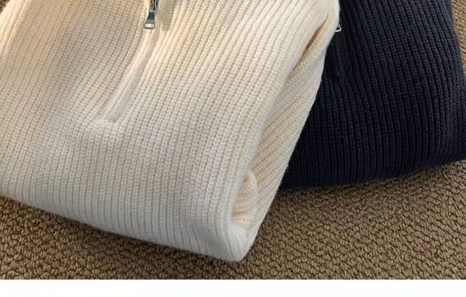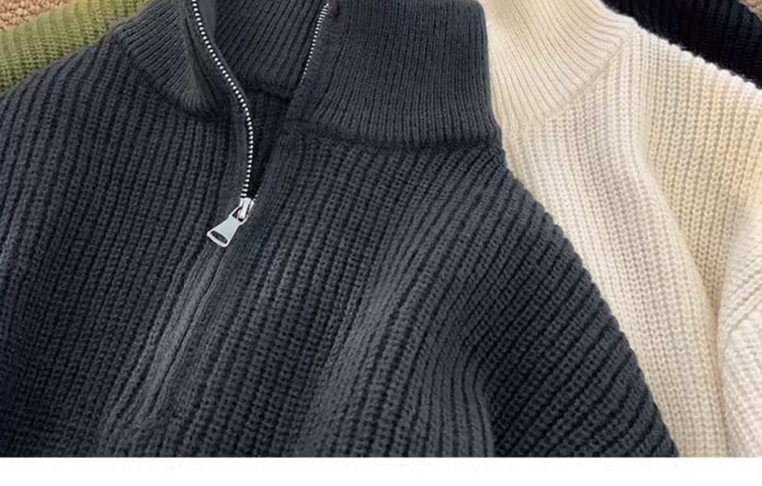 半拉鍊高領套頭毛衣男冬季cityboy日系慵懶風上衣百搭情侶針織衫