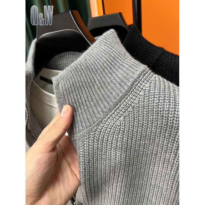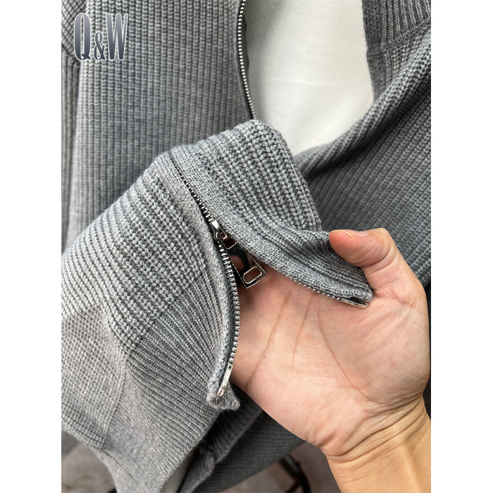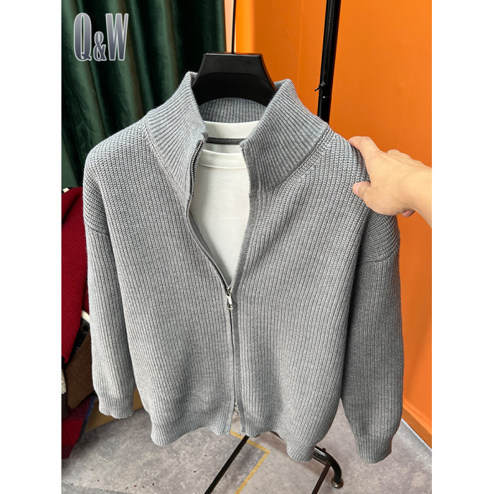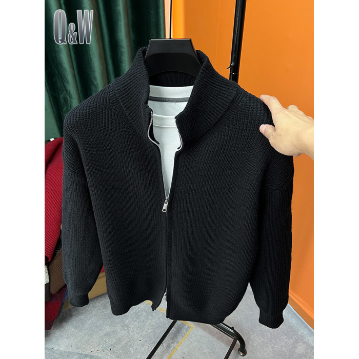 百搭純色拉鍊開衫男針織衫秋冬季爆款修身毛衣外套男立領半高外搭