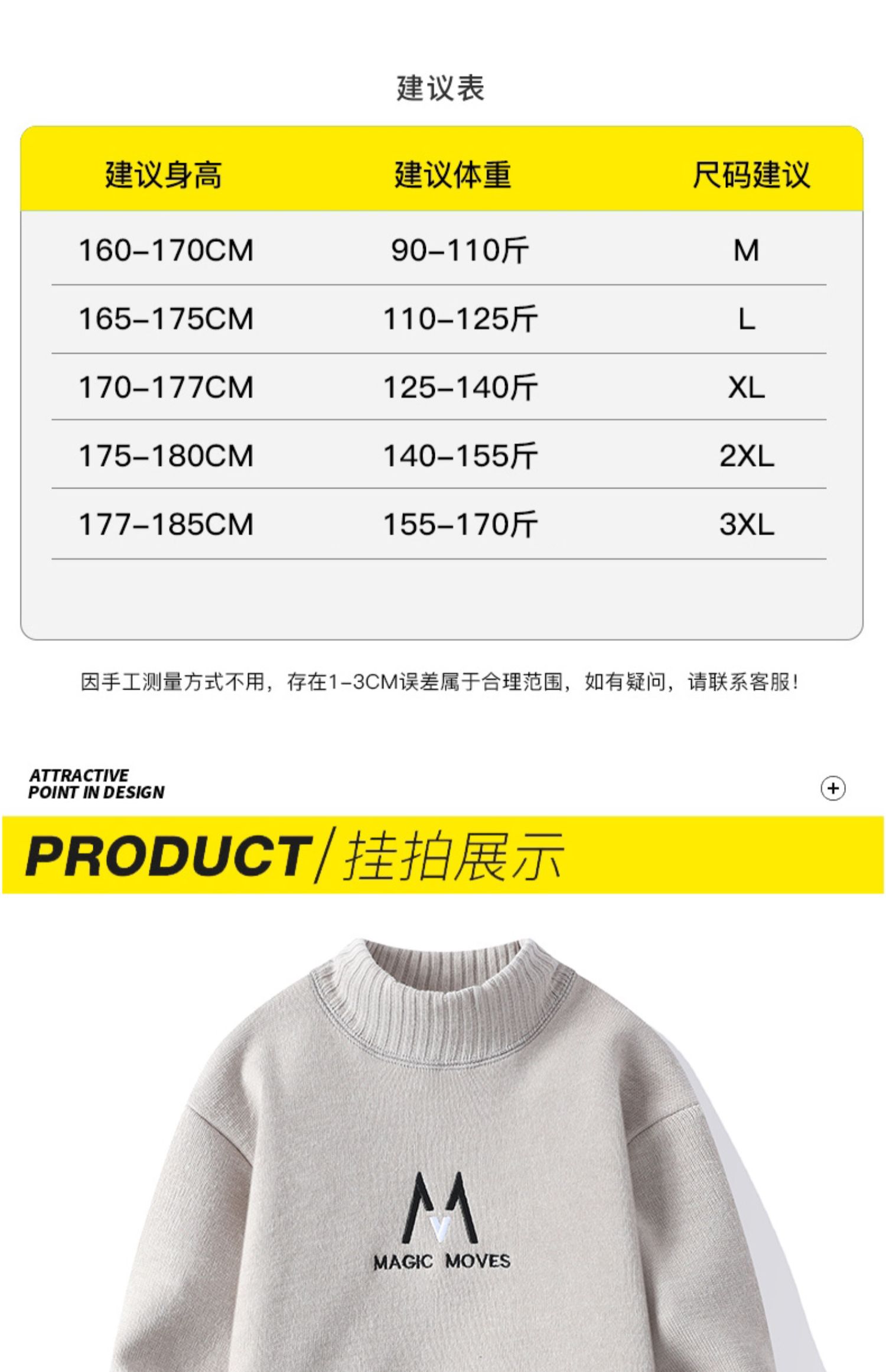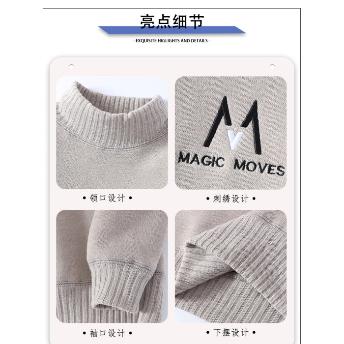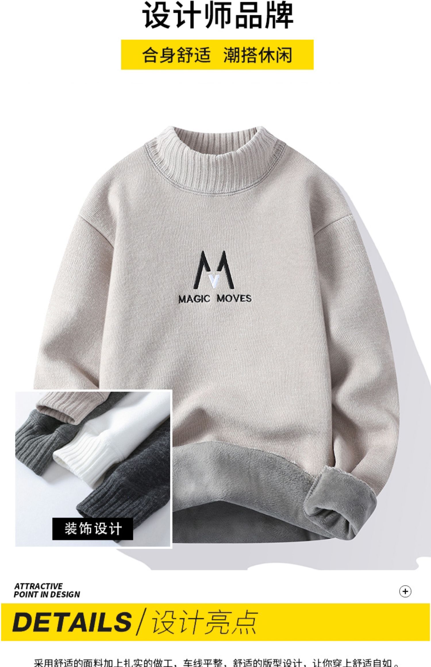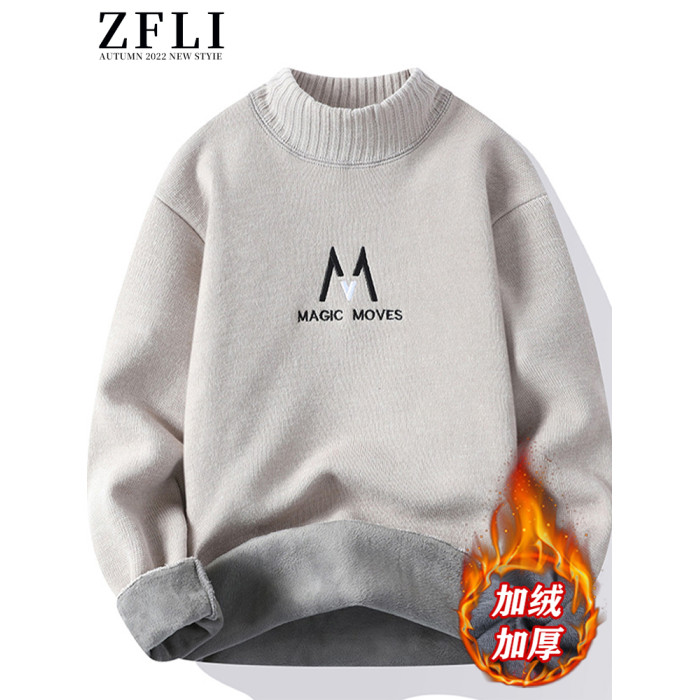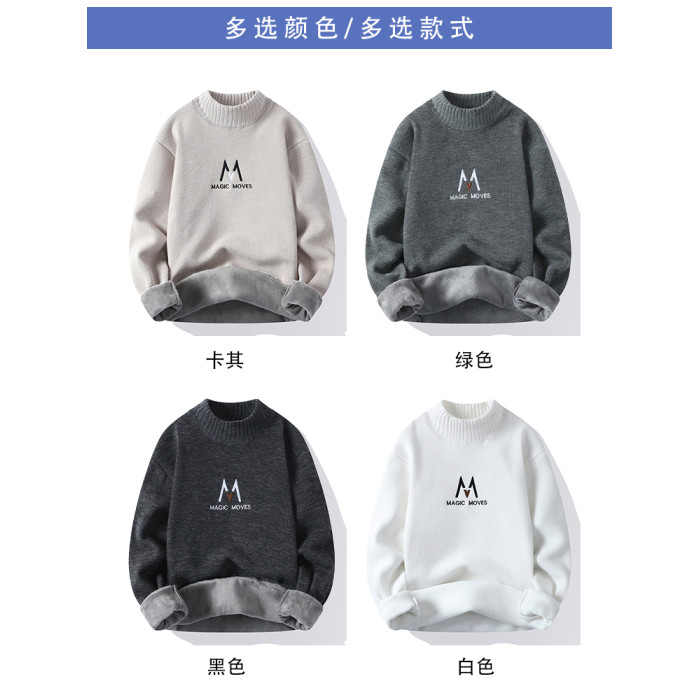毛衣男士冬季加絨加厚新款針織衫男字母潮流青少年保暖內搭毛線衣