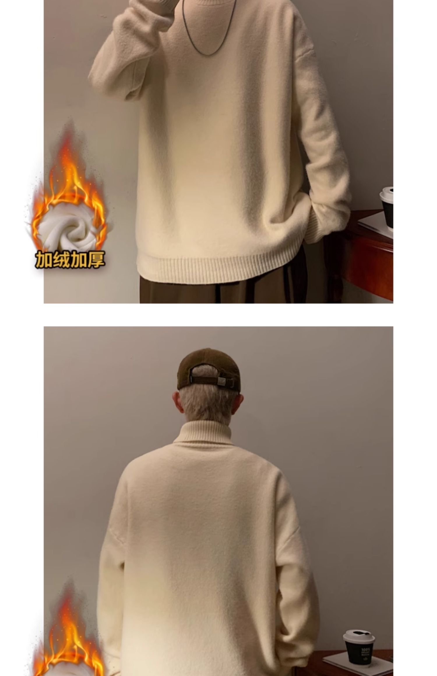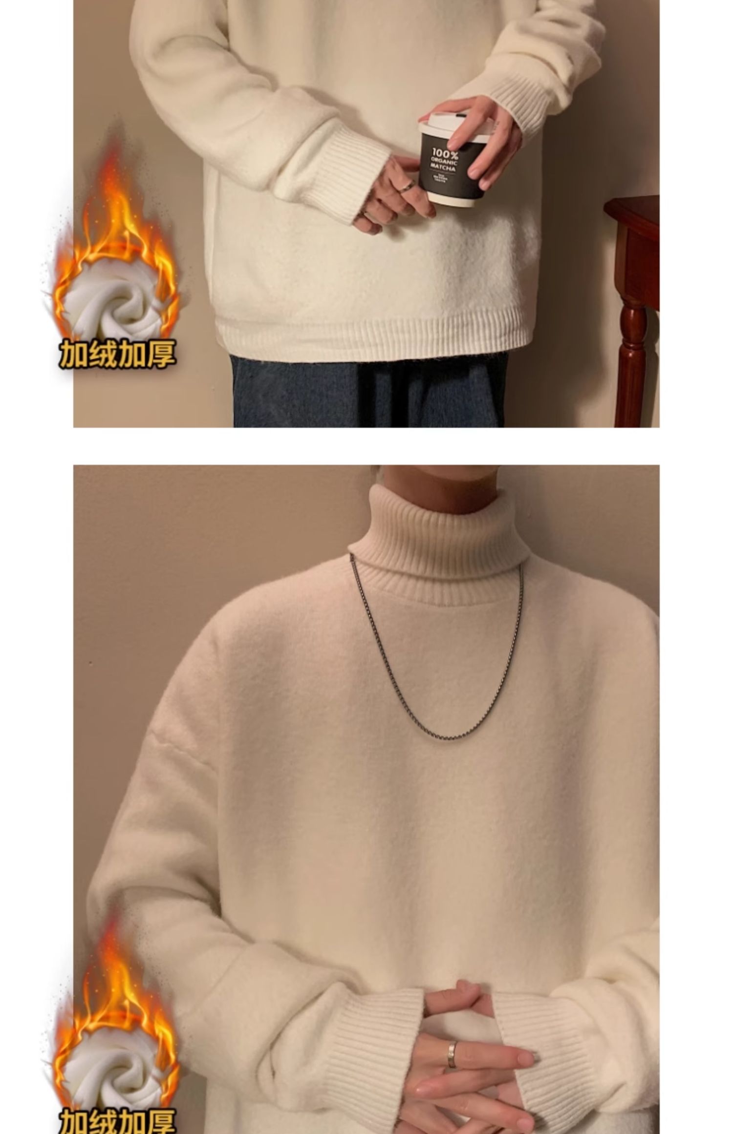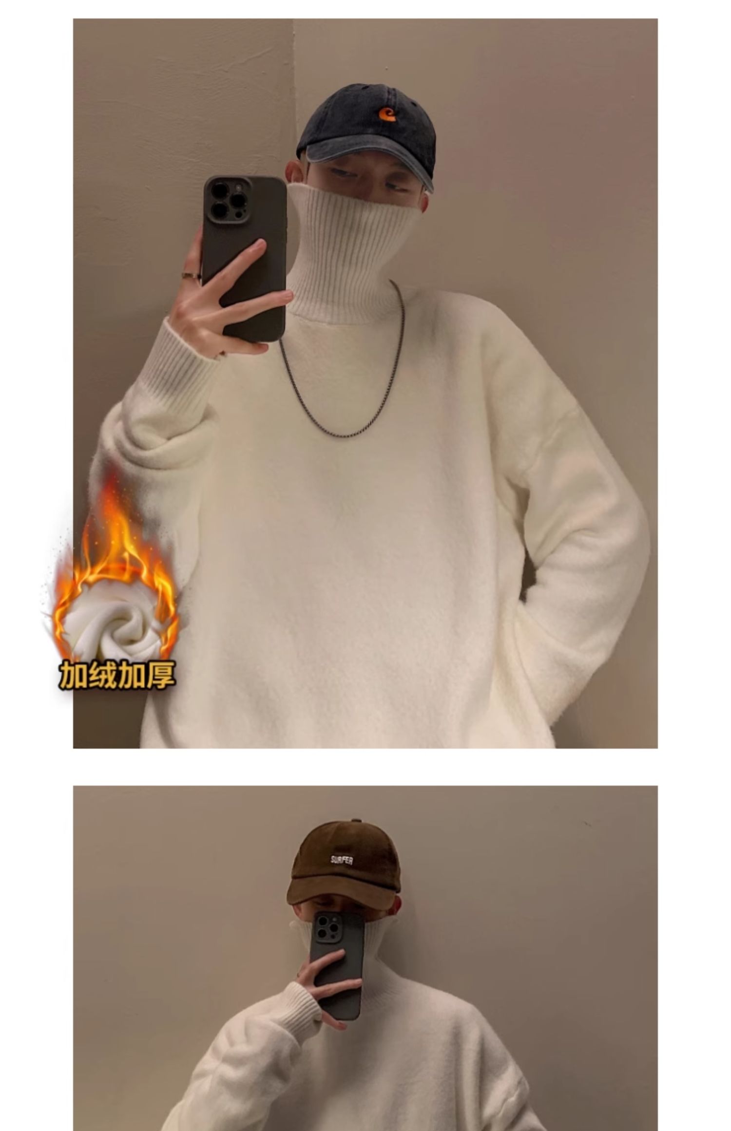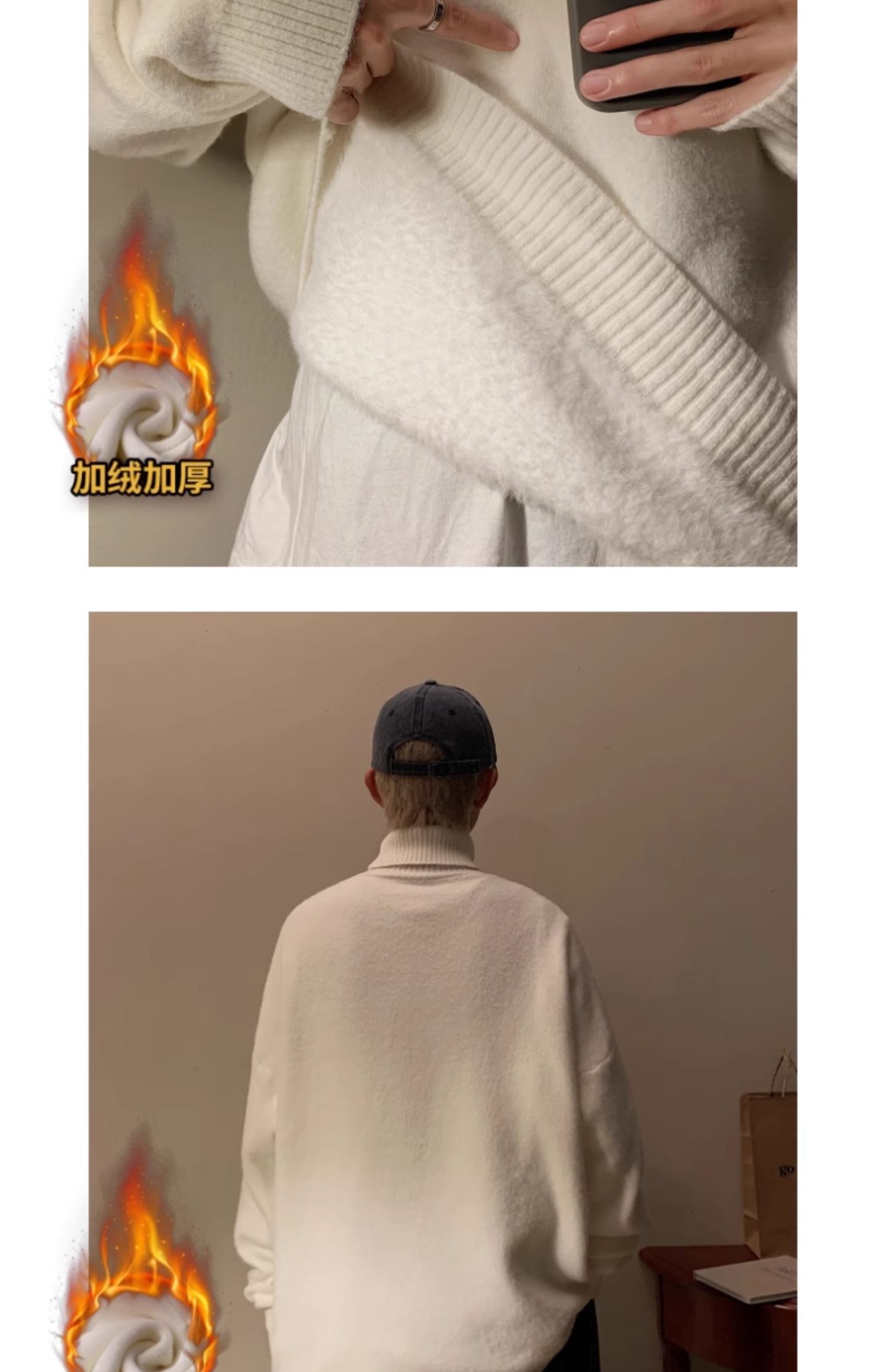 東北零下40度毛衣加絨加厚保暖白色高領針織衫男冬季抗寒情侶外套